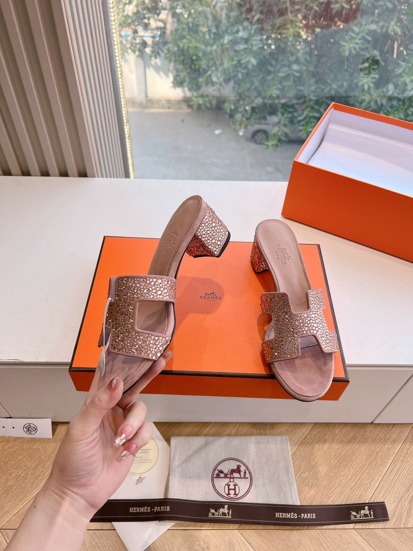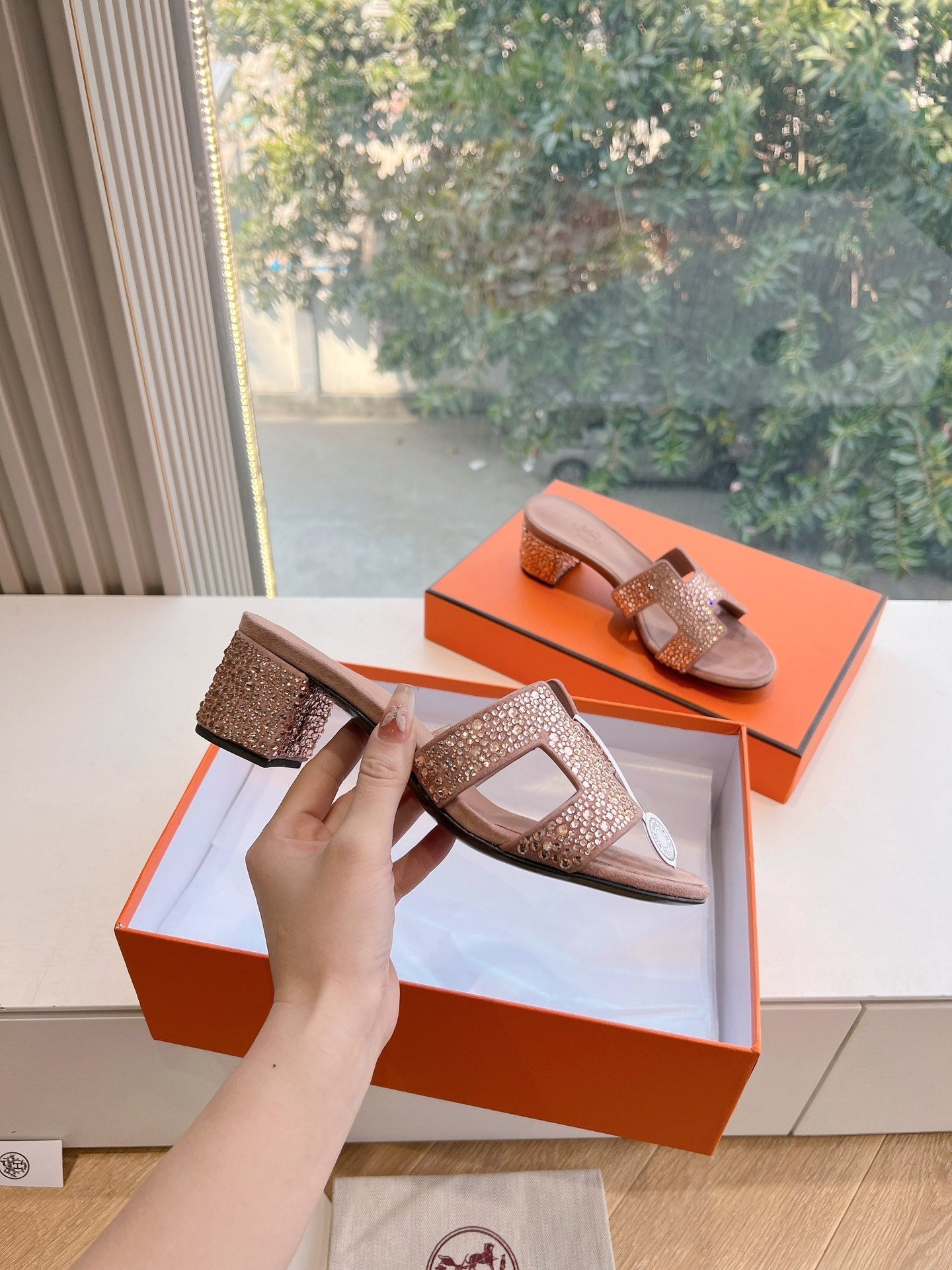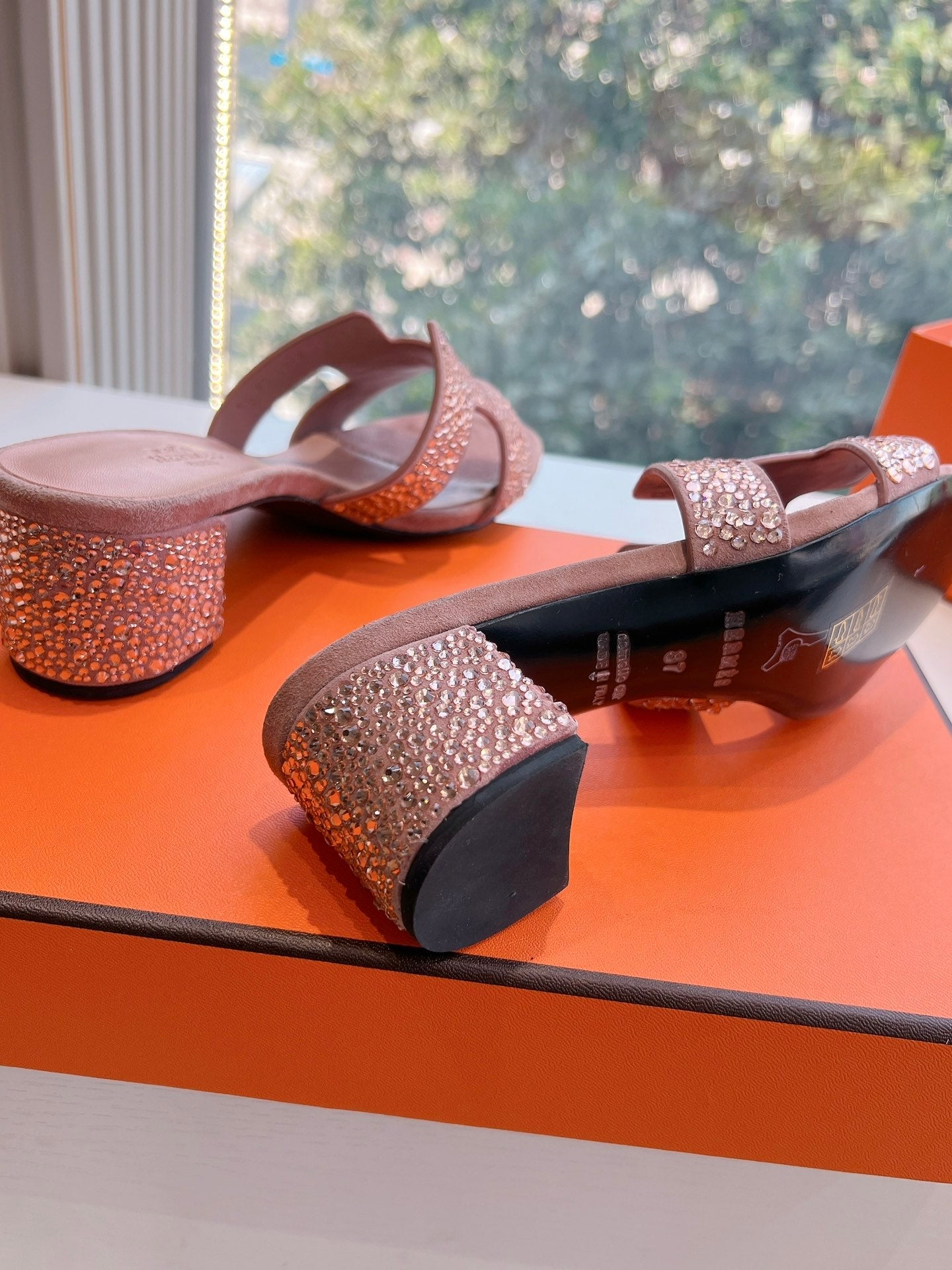 0ASIS SANDAL IN BLUSH PINK SUEDE WITH CRYSTALS