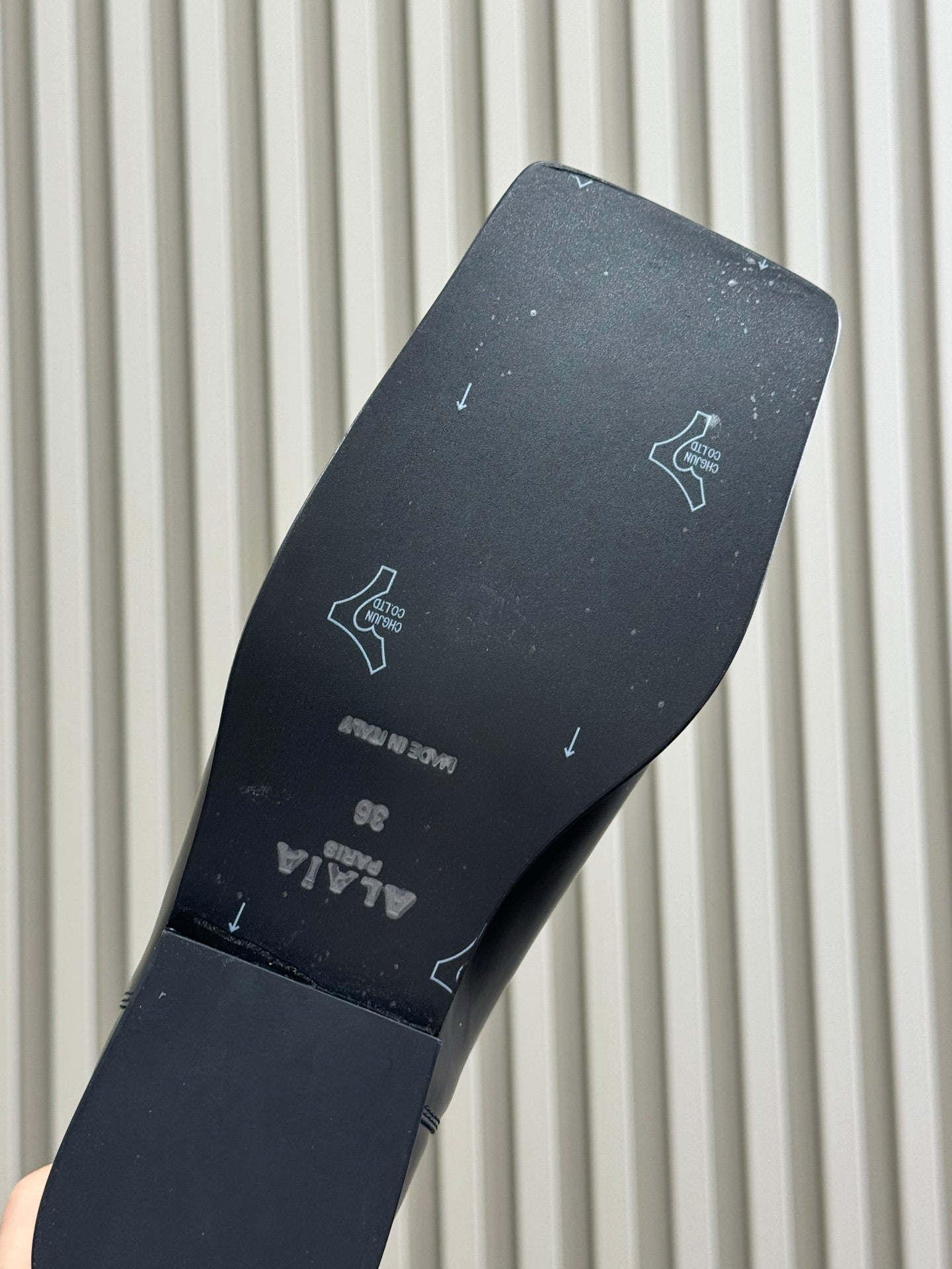 ALAIA 25S SQUARE TOE CHELSEA ANKLE BOOTS SHOES IN BLACK GLOSSY CALFSKIN