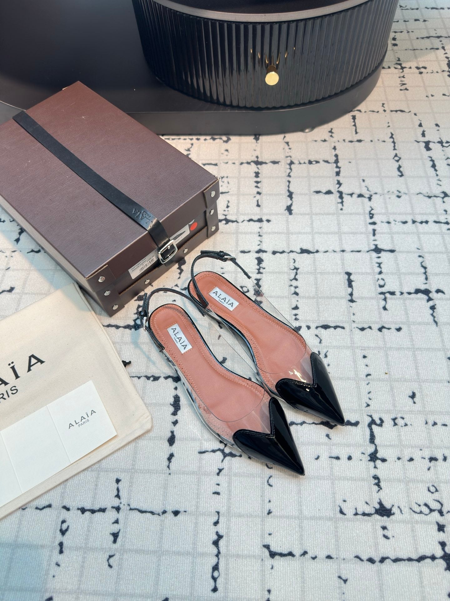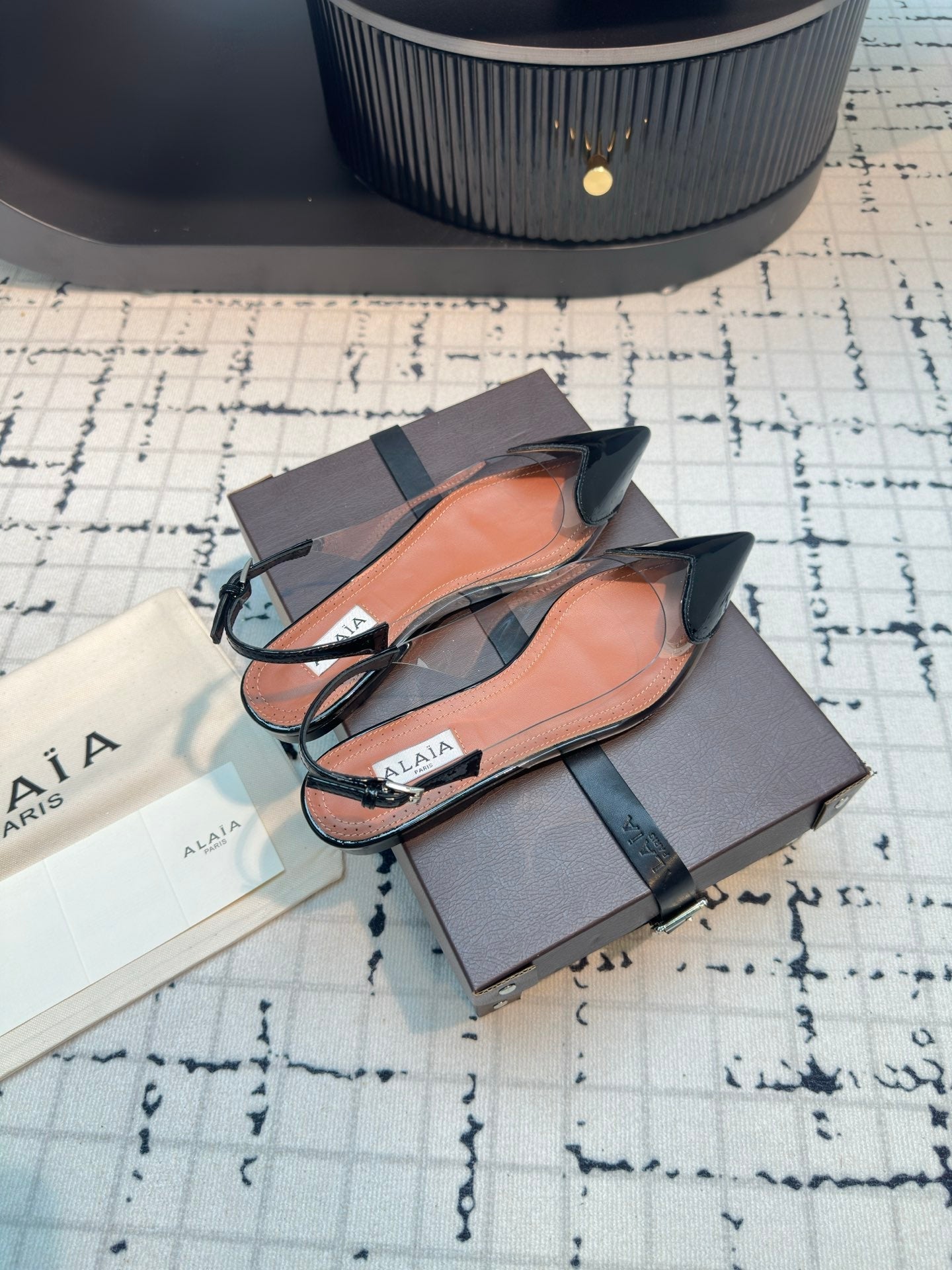 ALAIA FLAT SLINGBACK IN BLACK PATENT CALFSKIN AND FILM
