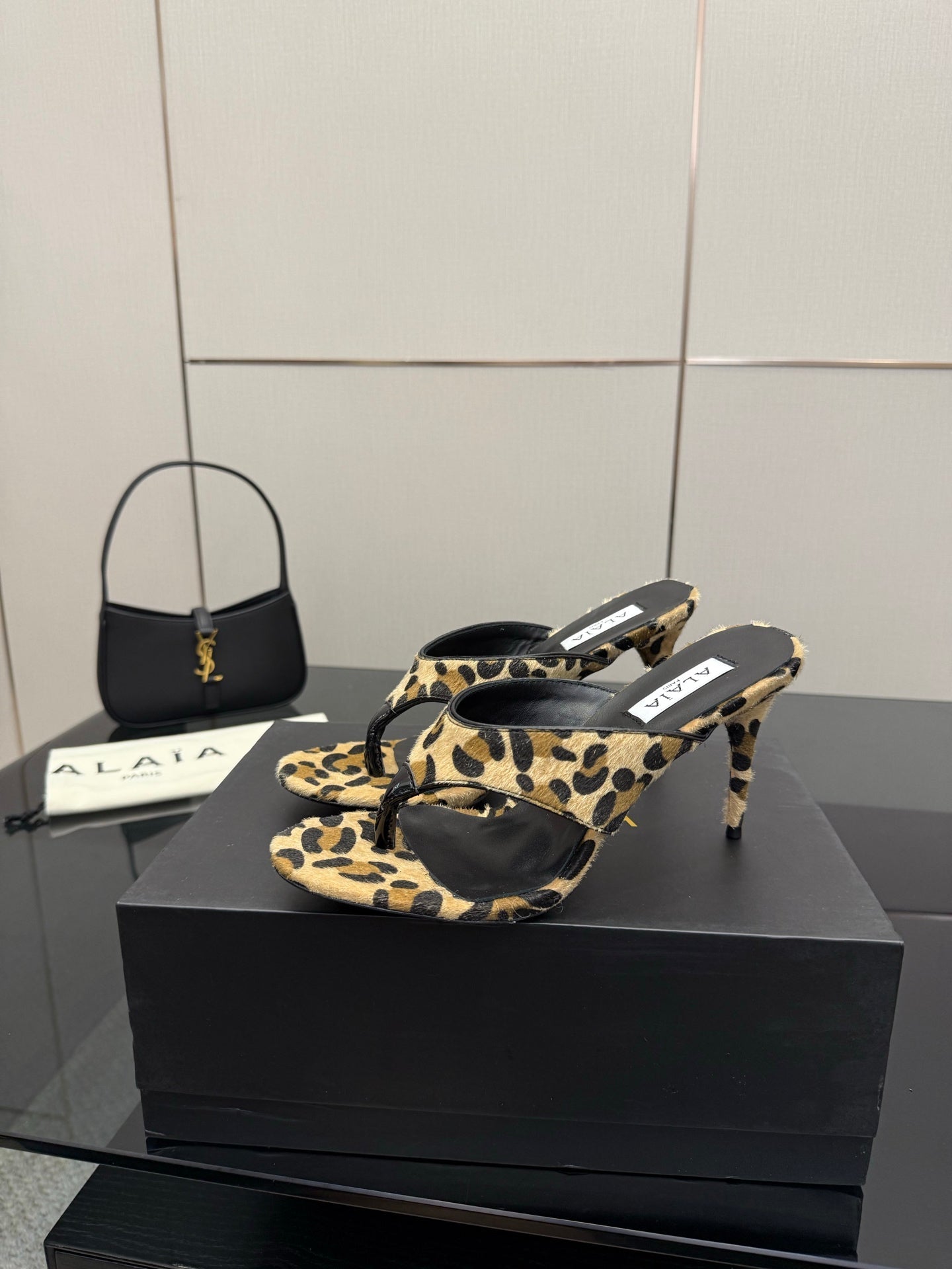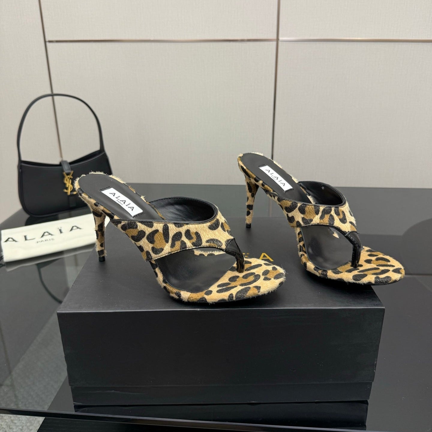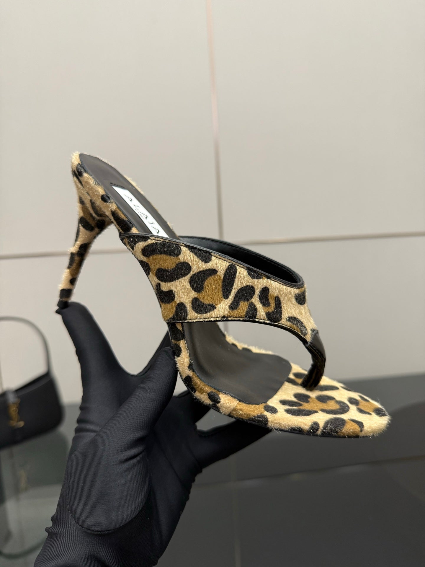 ALAIA HEELED THONG 25S IN LEOPARD PONY HAIR LEATHER