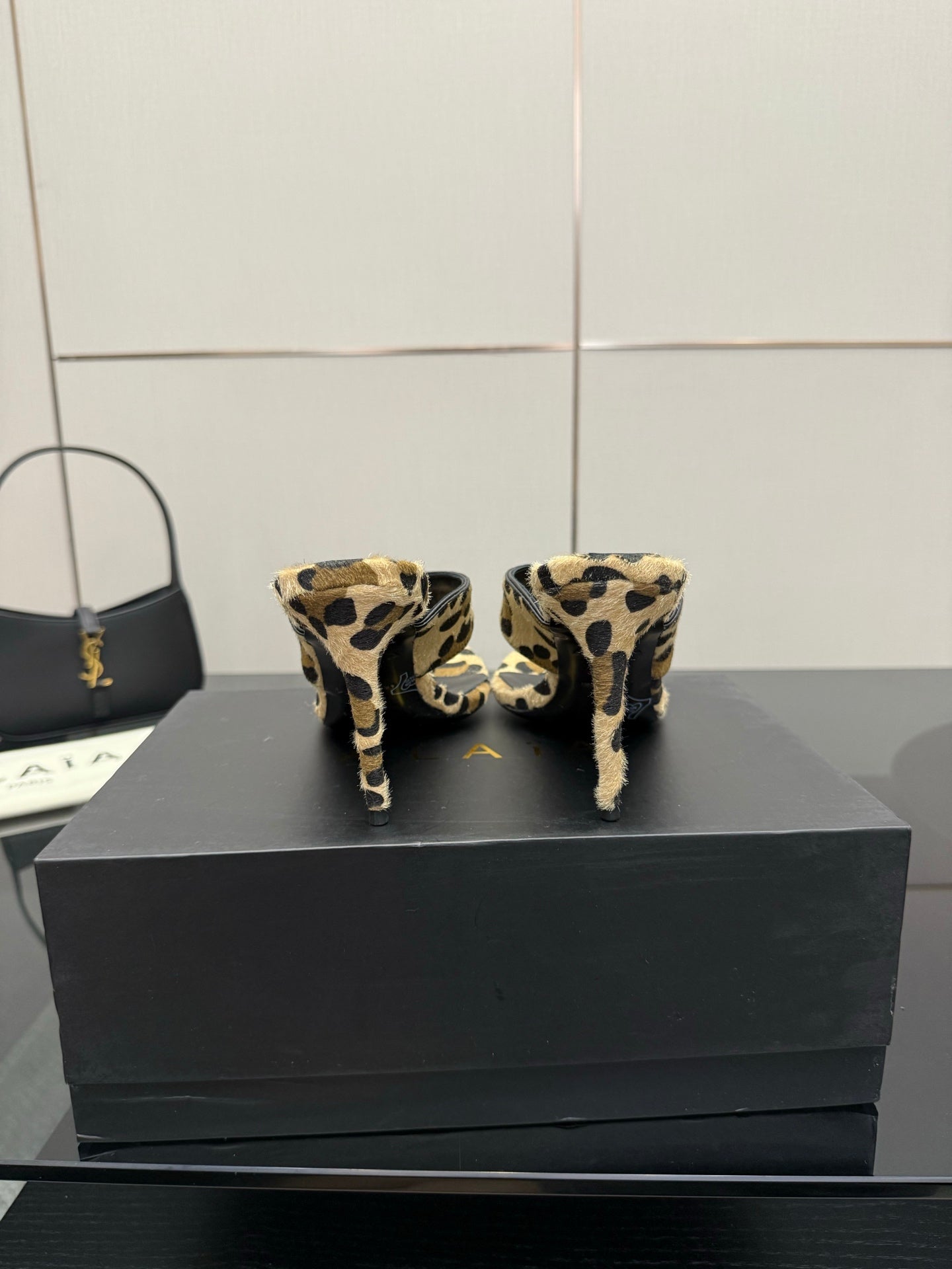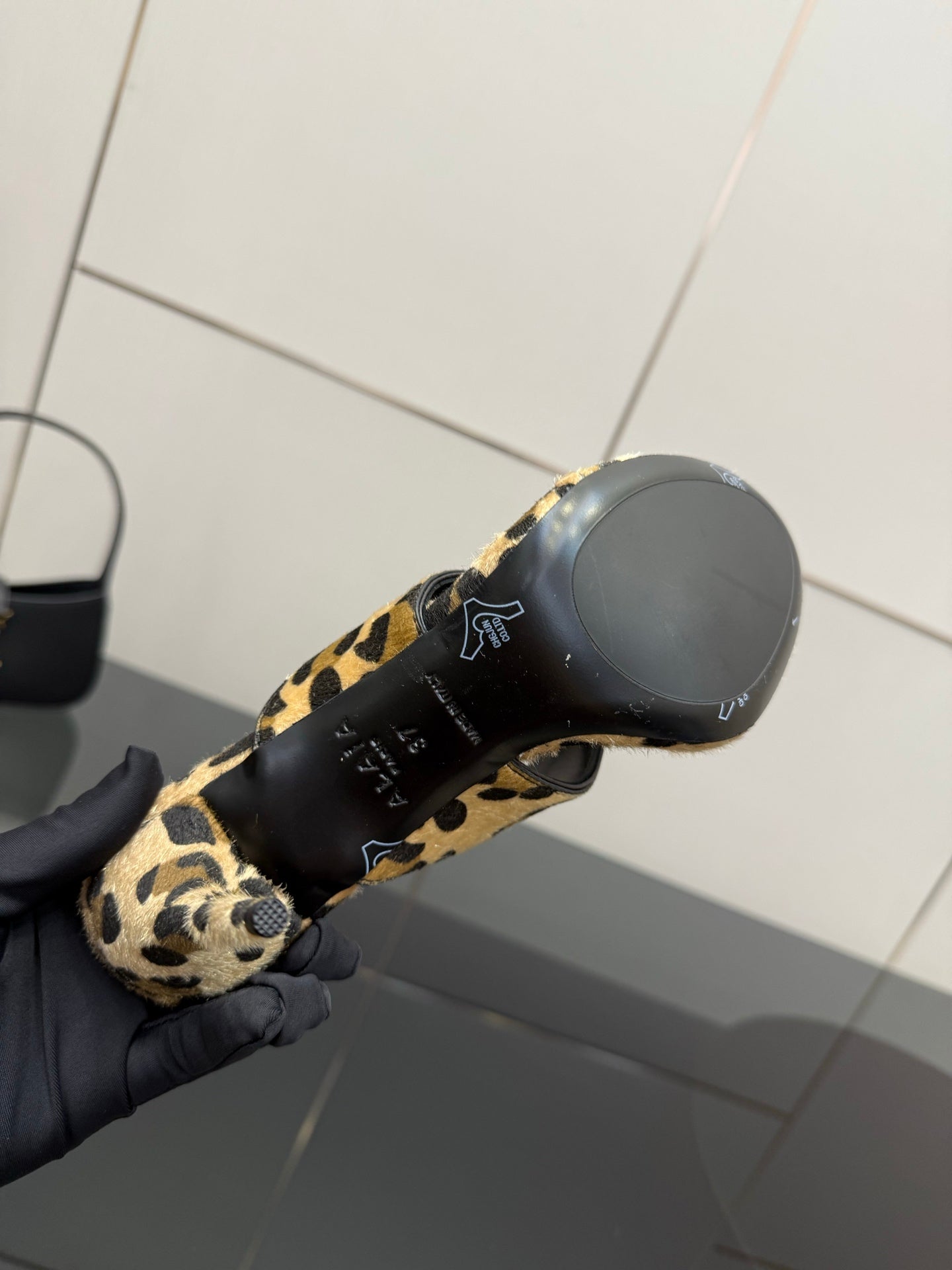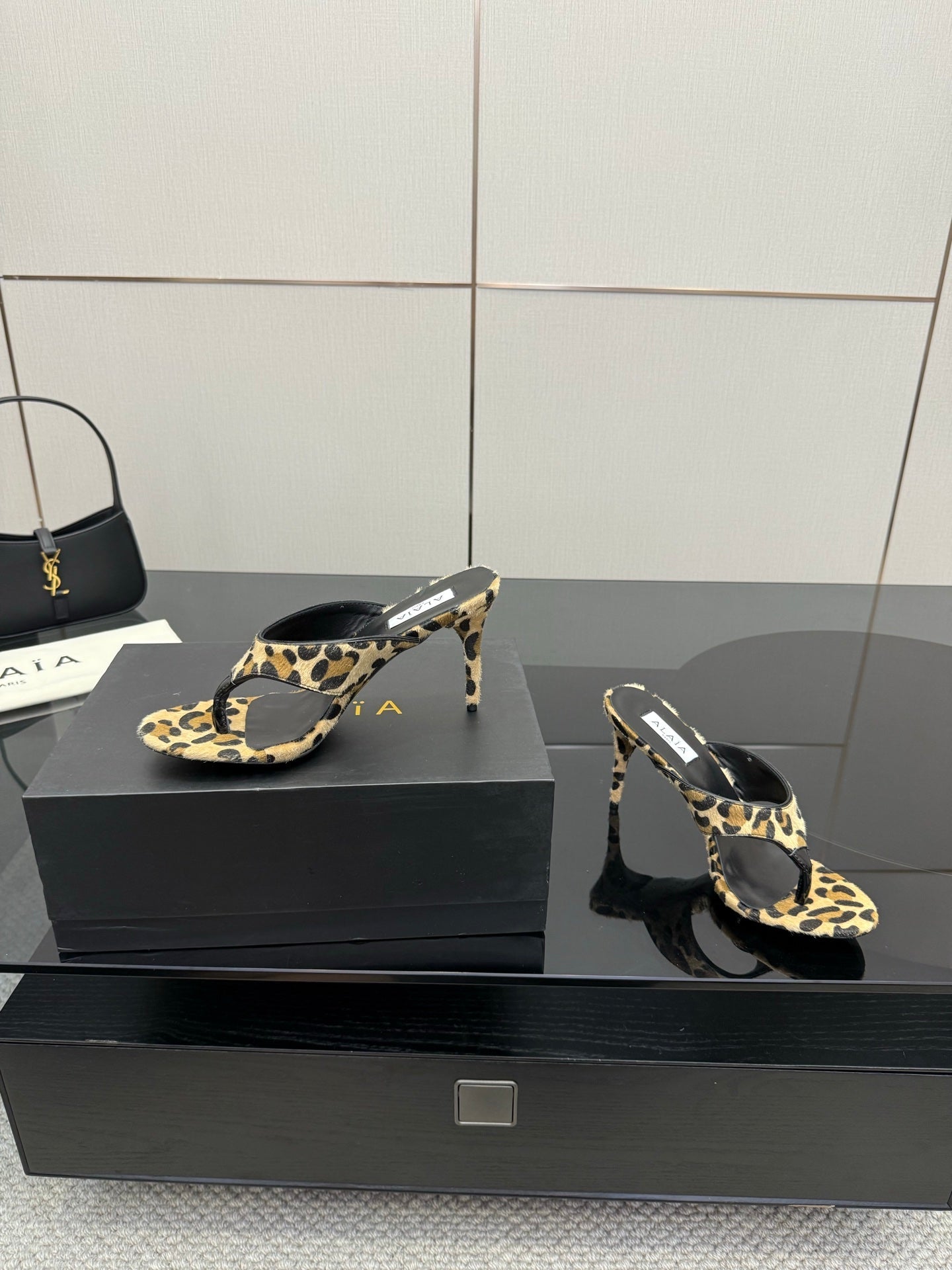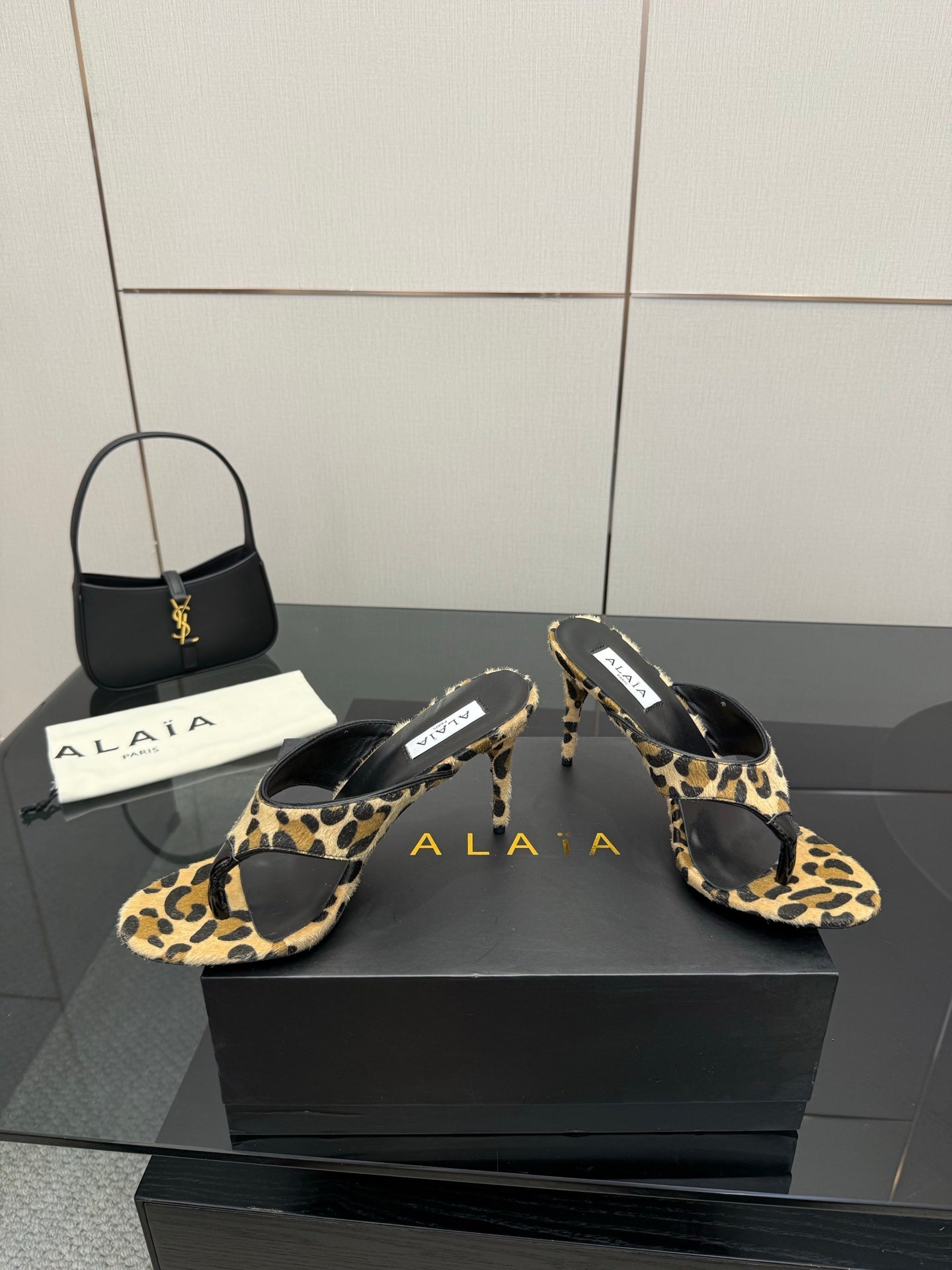 ALAIA HEELED THONG 25S IN LEOPARD PONY HAIR LEATHER