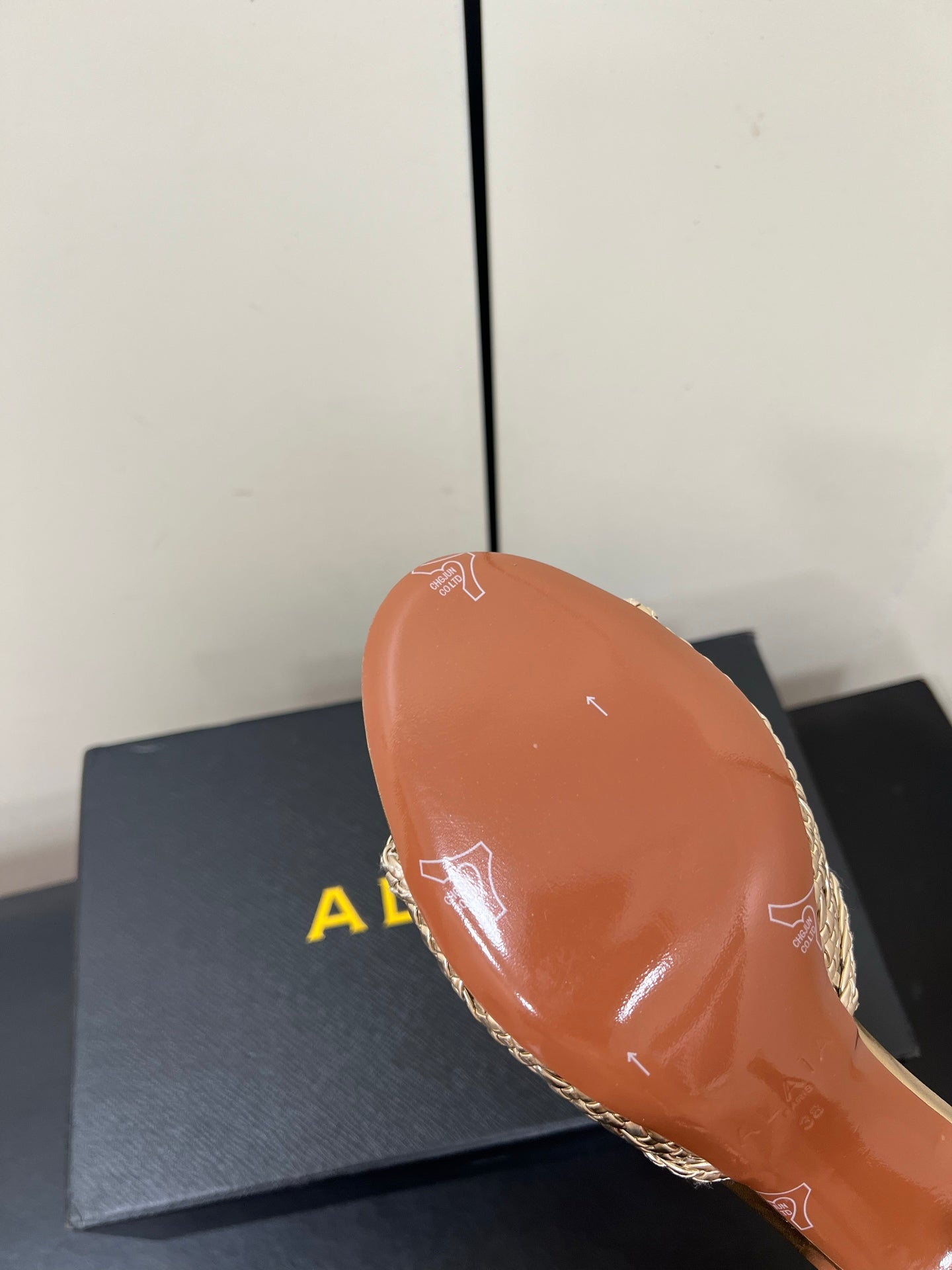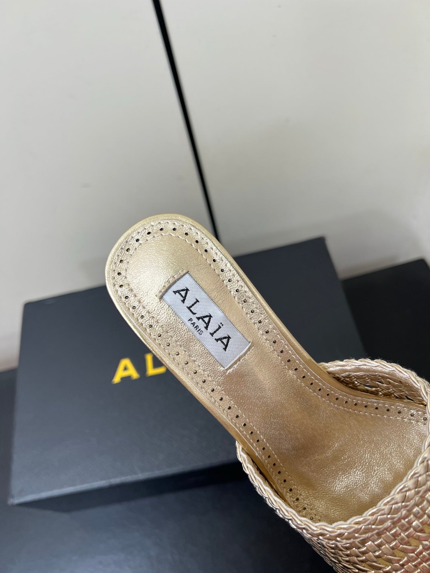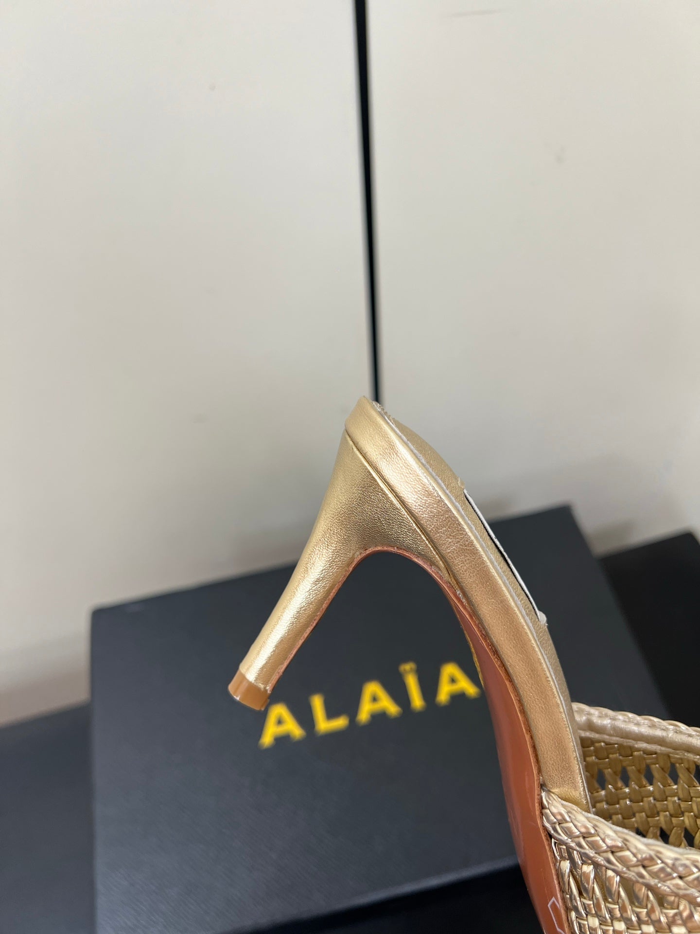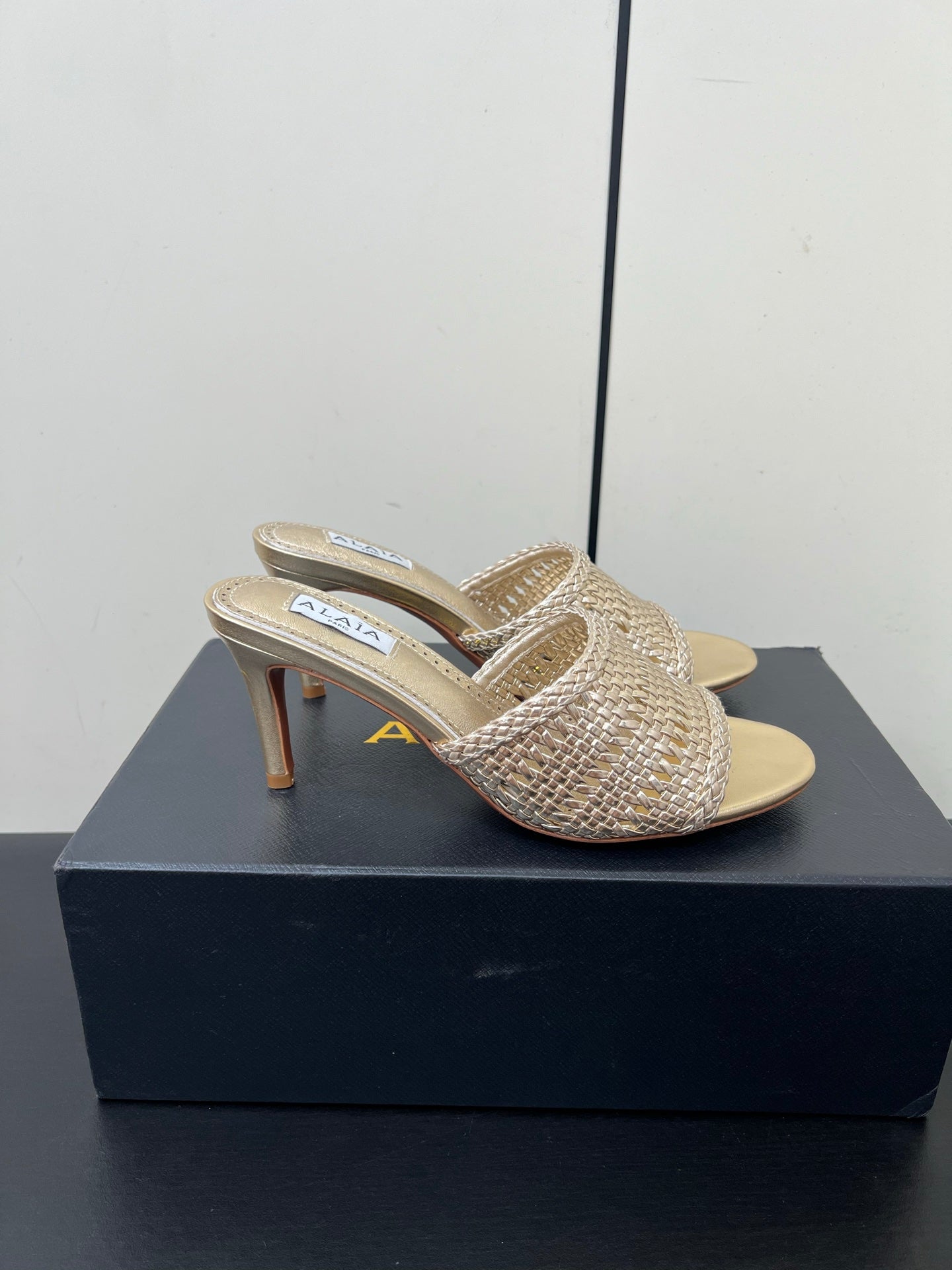 ALAIA HIGH HEEL 25S 70 MM IN GOLD LAMBSKIN WITH WOVEN PATTERN