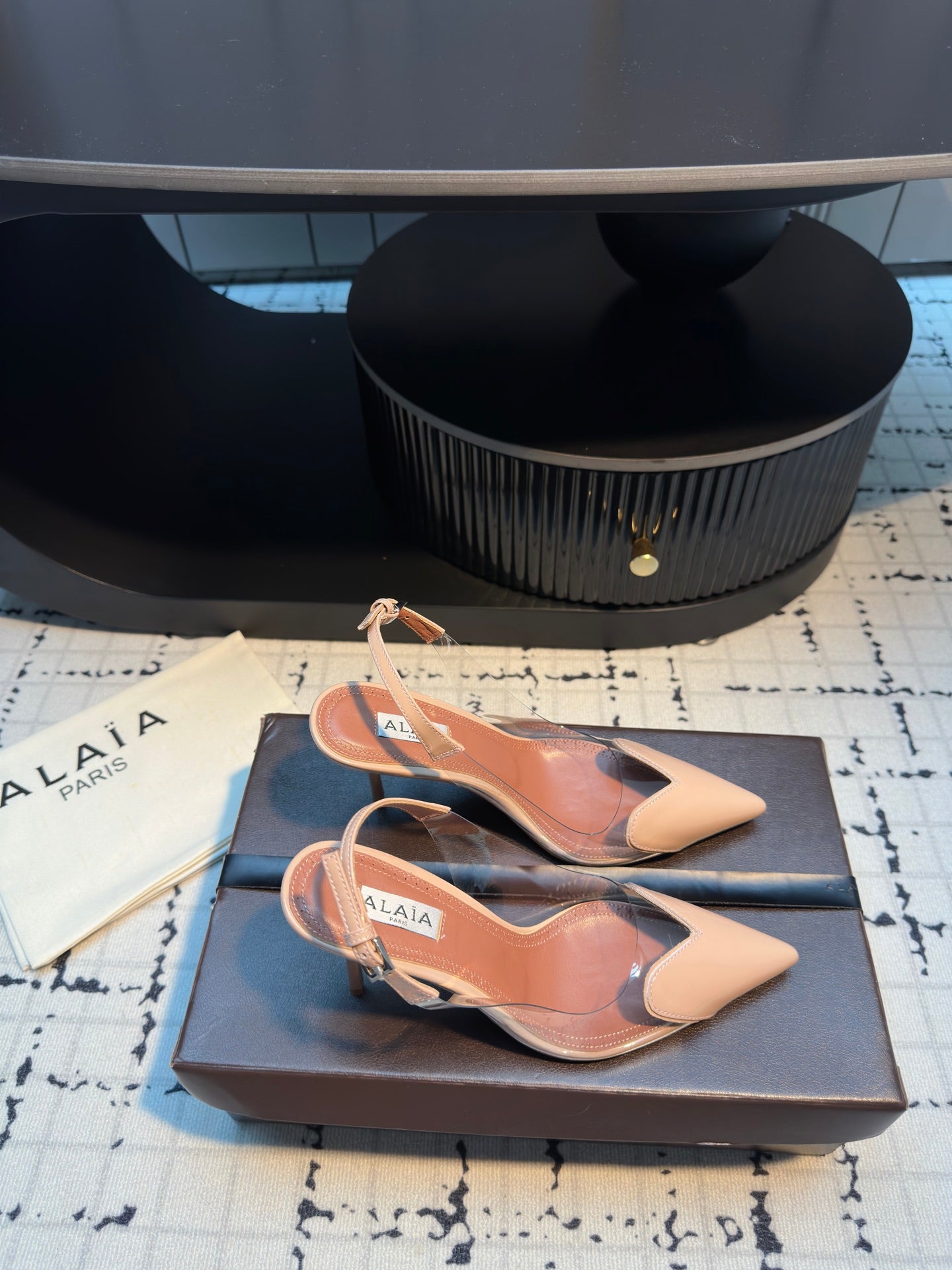 ALAIA HIGH SLINGBACK 25S 90 MM IN BEIGE CALFSKIN