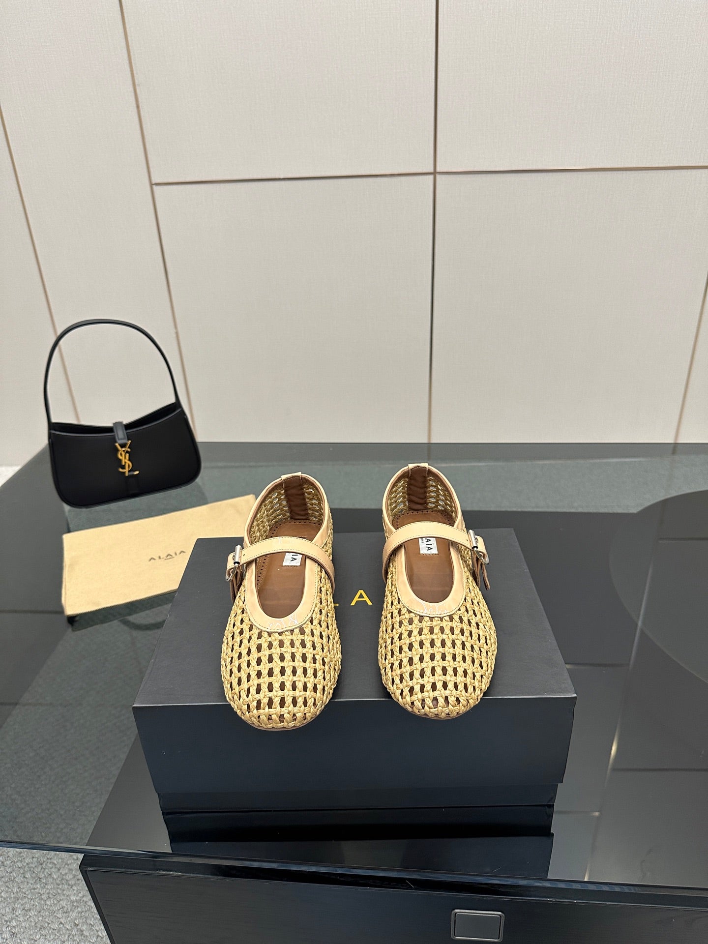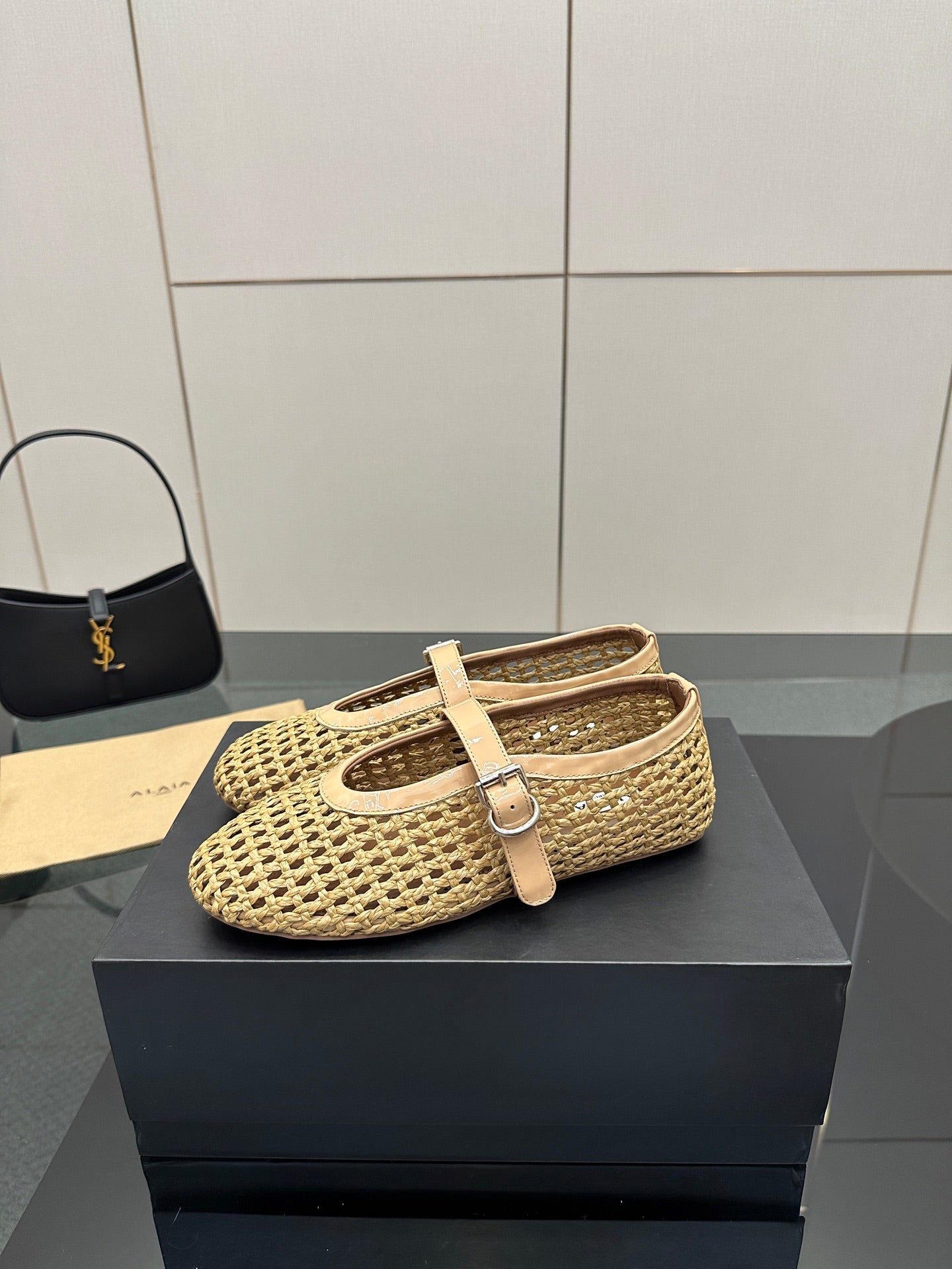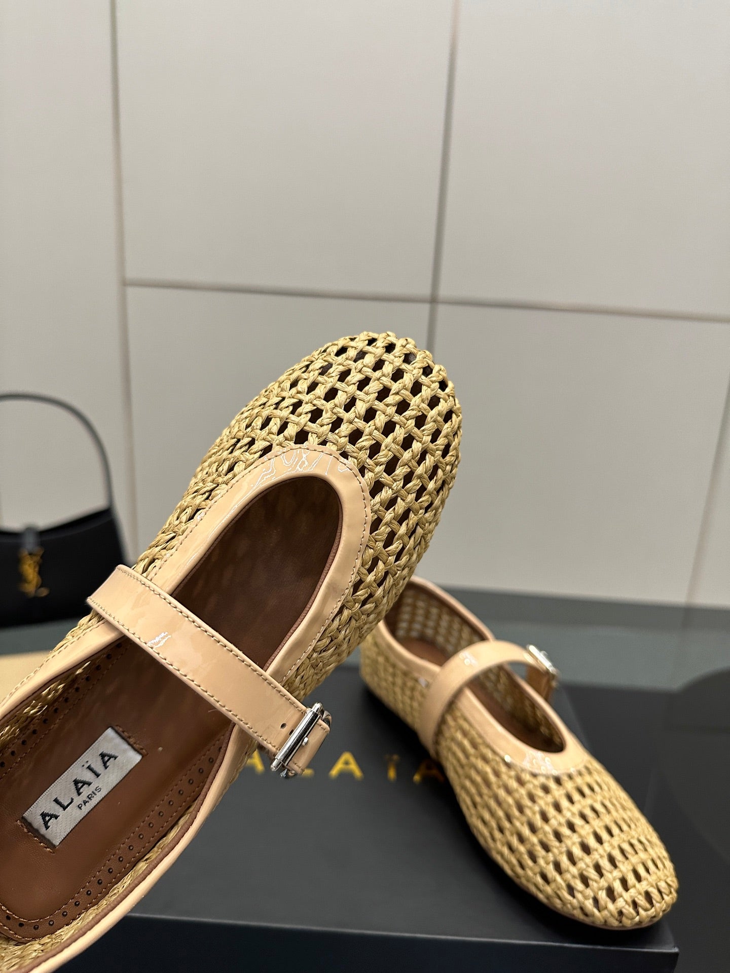 ALAIA MARY JANE FLAT 25S IN BEIGE WOVEN MESH