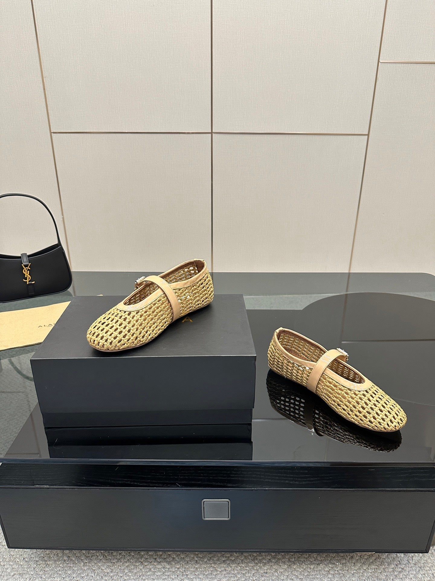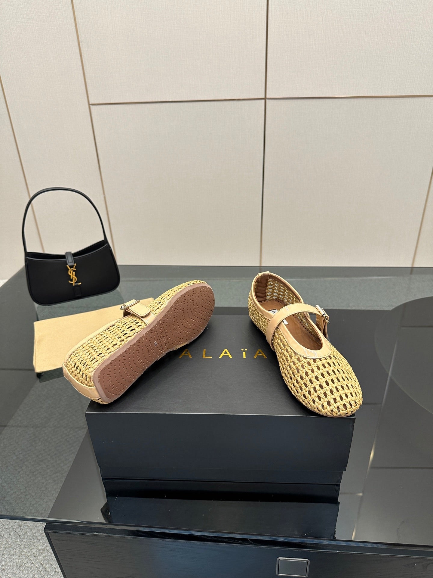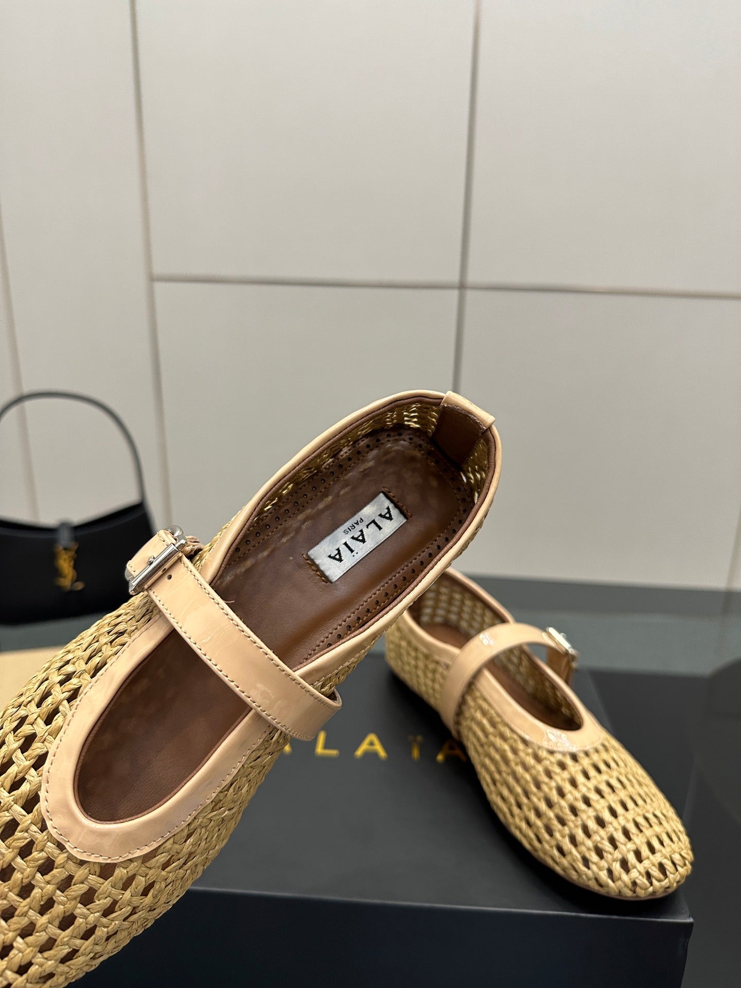 ALAIA MARY JANE FLAT 25S IN BEIGE WOVEN MESH