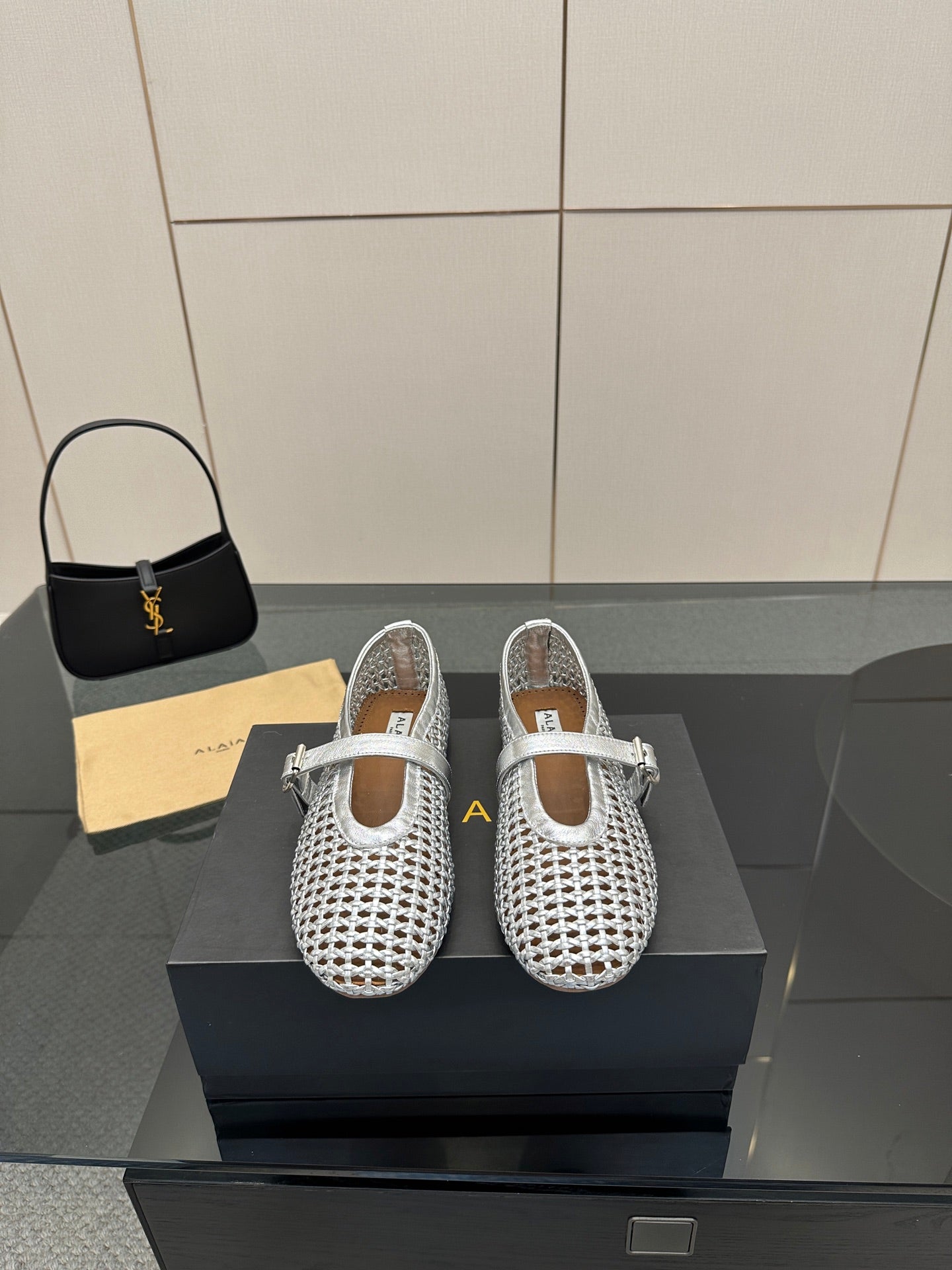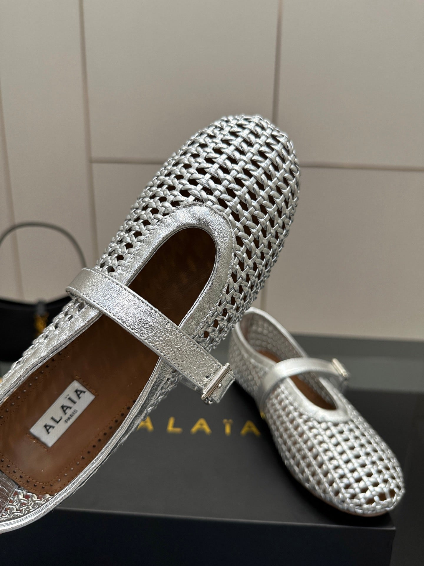 ALAIA MARY JANE FLAT 25S IN SILVER WOVEN MESH