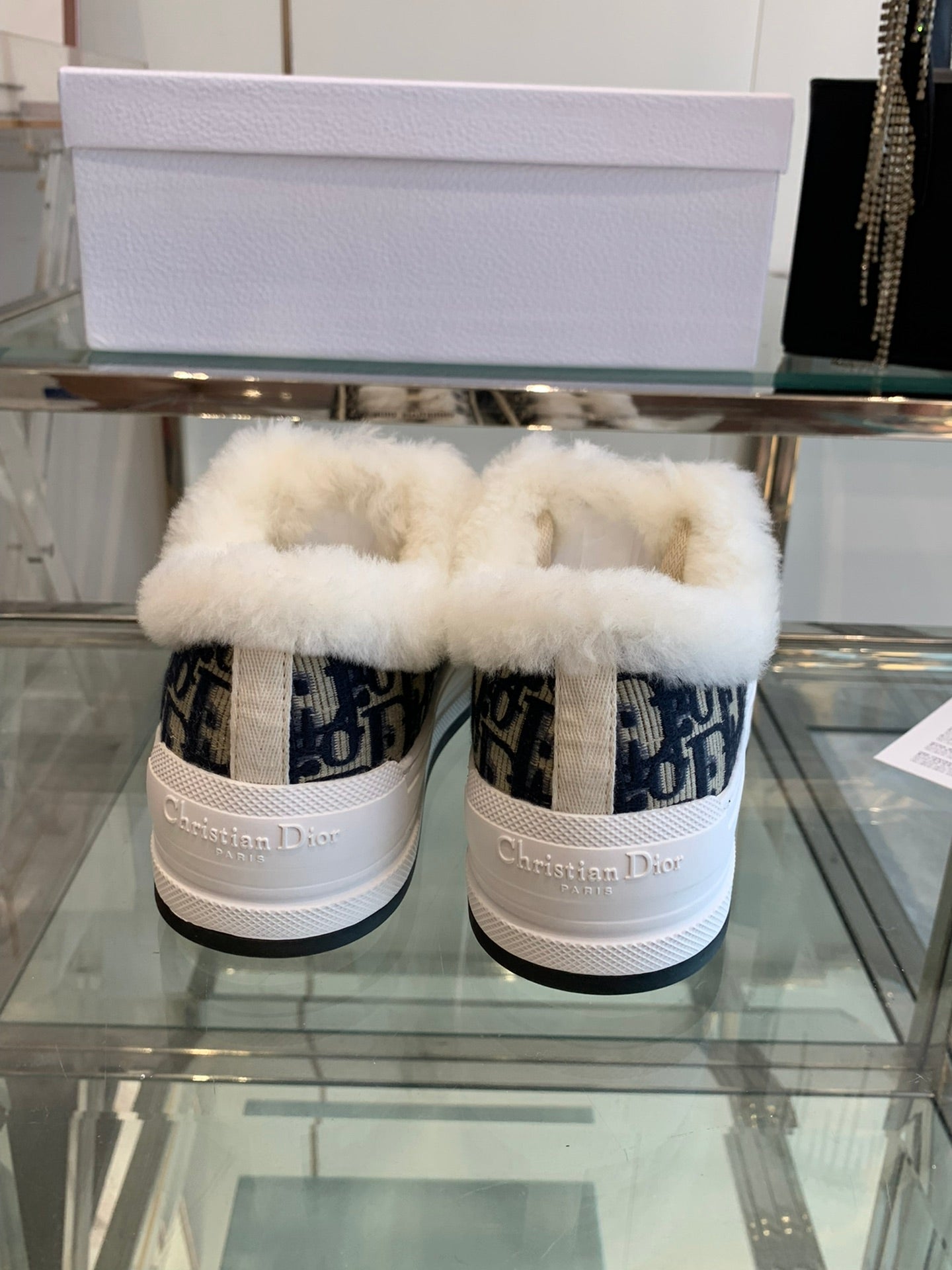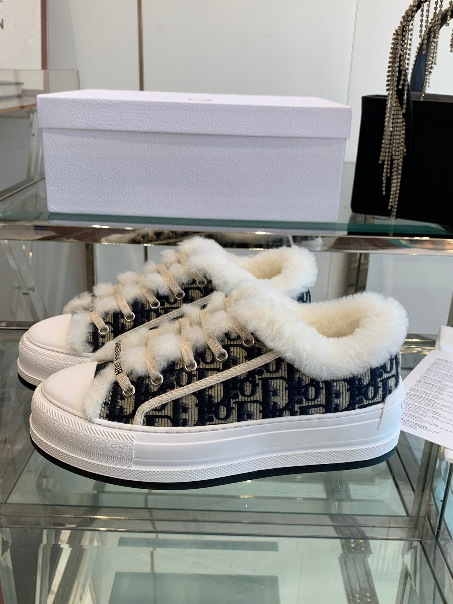ALK'N PLATFORM SNEAKER CAMEL BROWN COTTON EMBROIDERED WITH OBLIQUE MOTIF AND WHITE SHEARLING