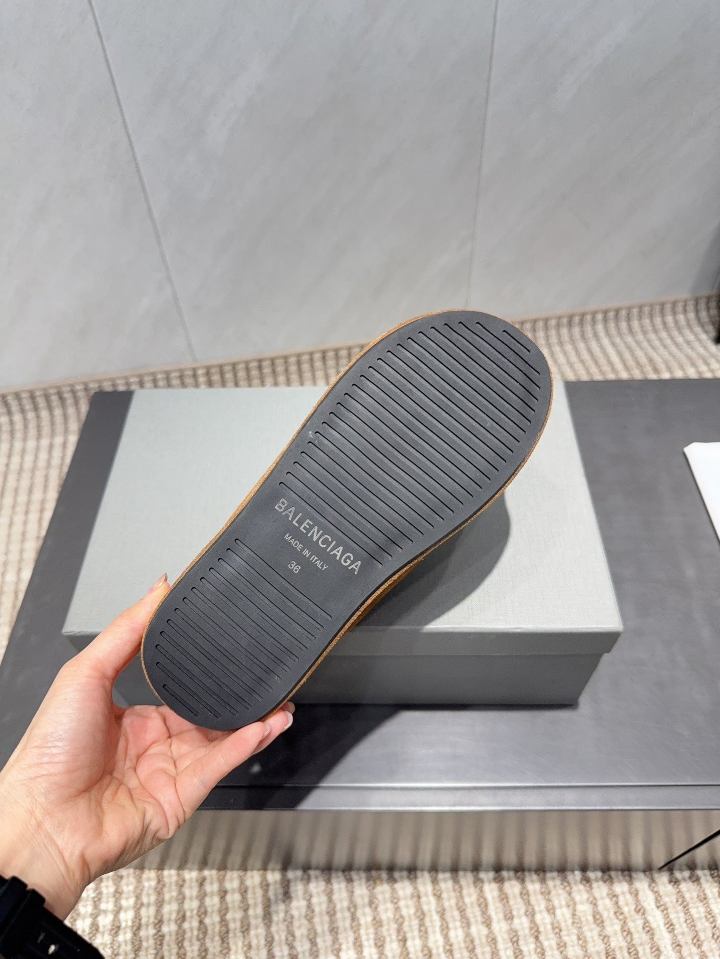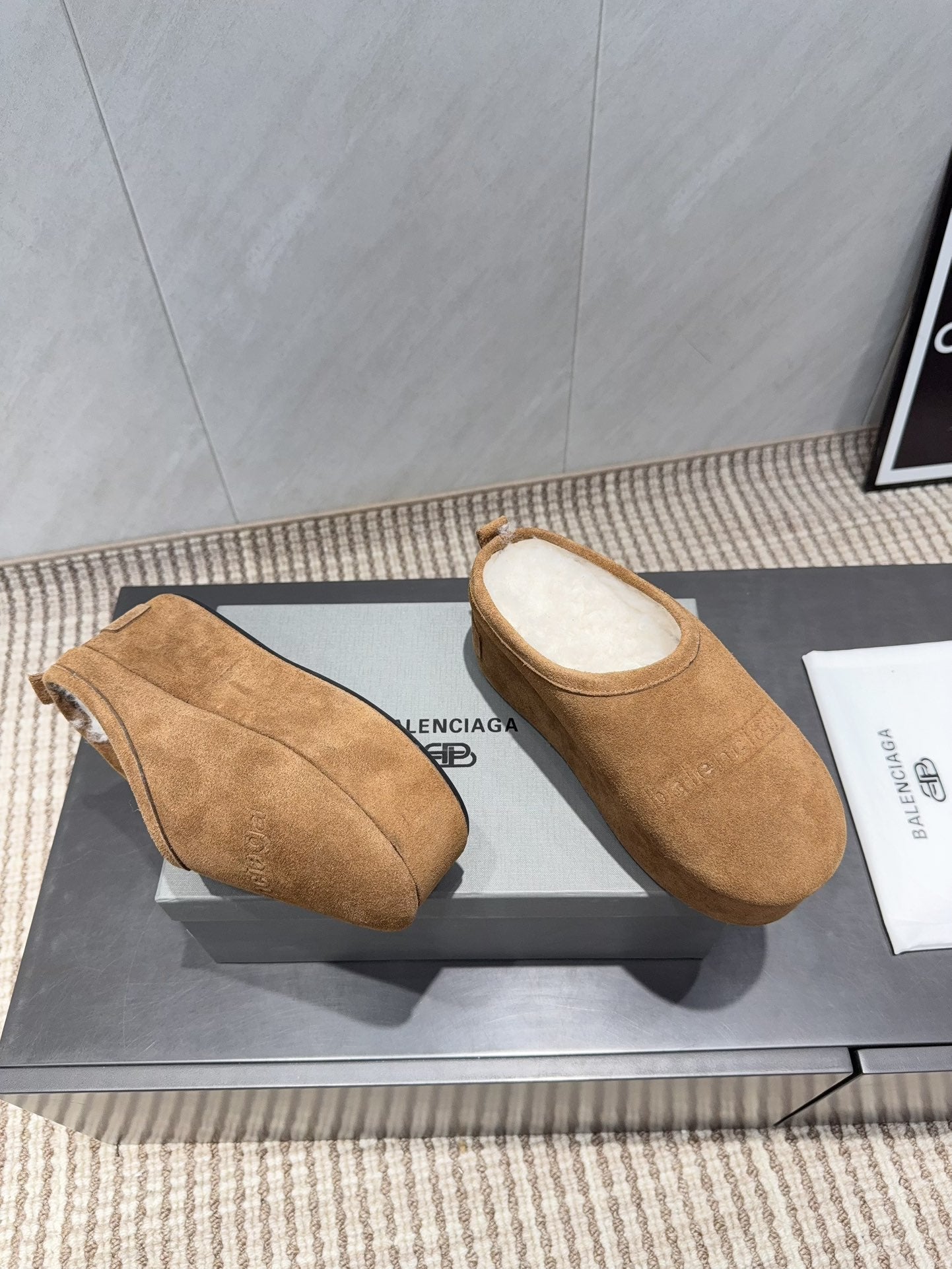 BALENCIAGA 25S AURALEE SLIP-ON 50 MM IN LIGHT BROWN SUEDE STYLE 1