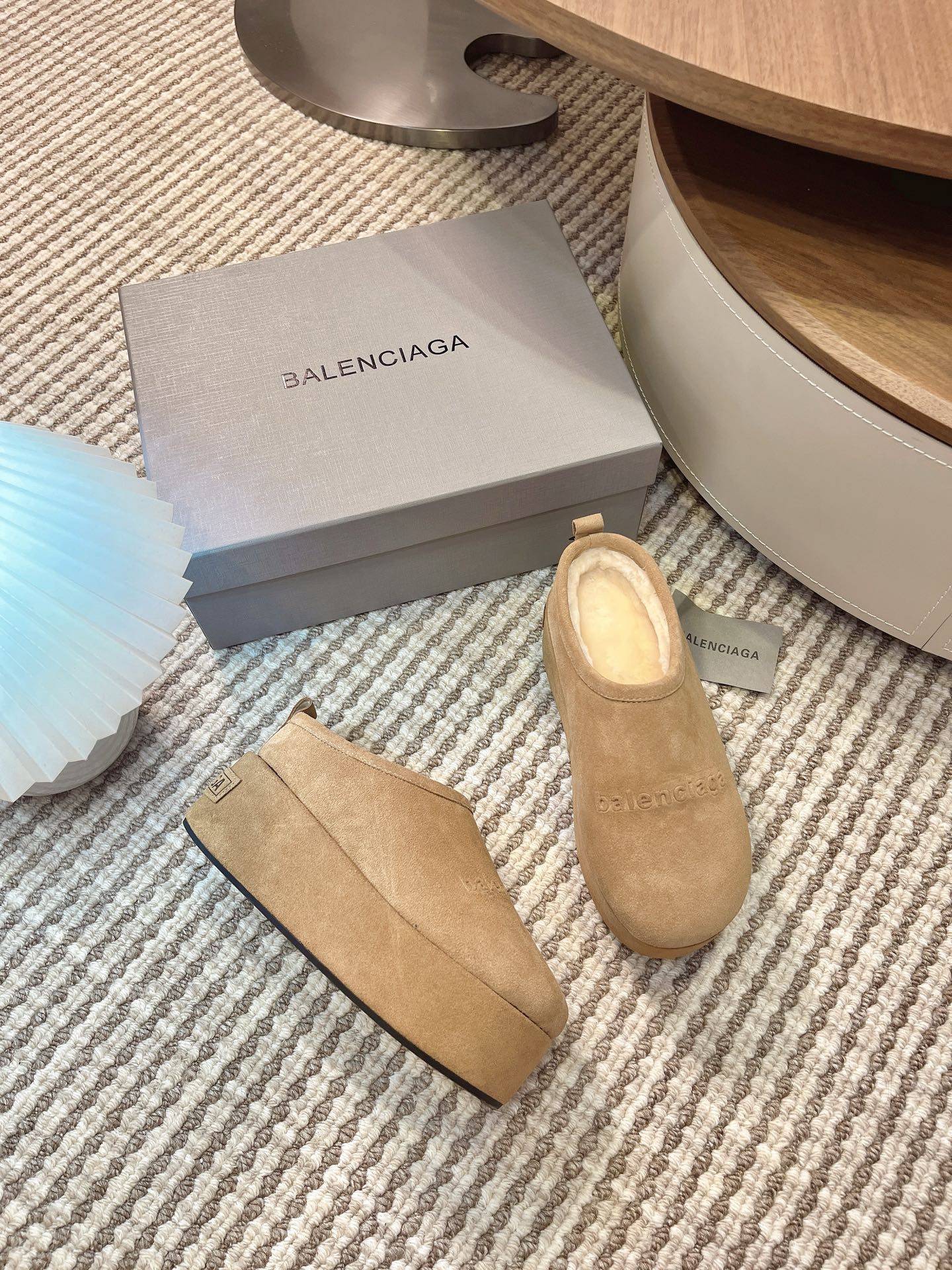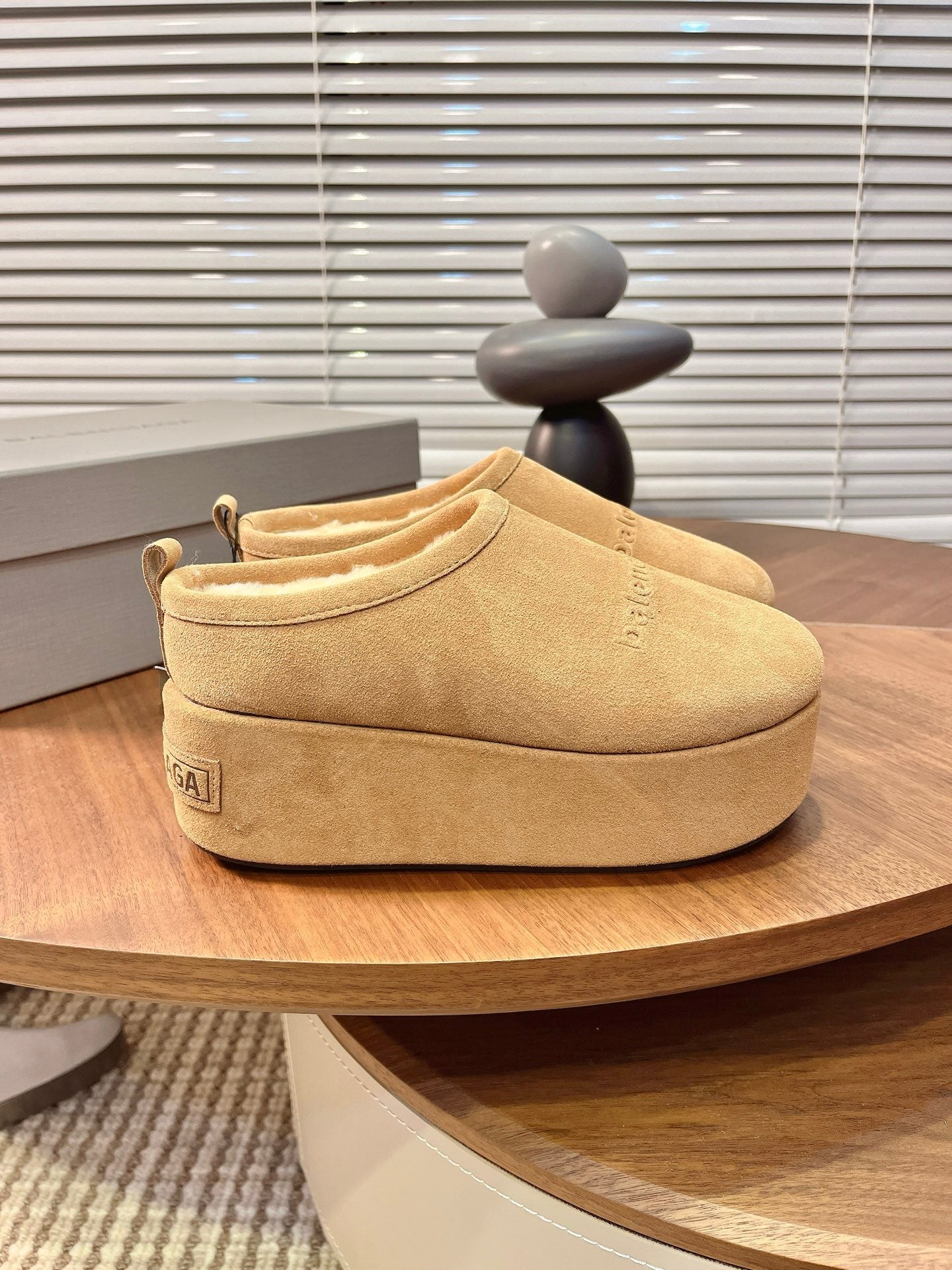 BALENCIAGA 25S AURALEE SLIP-ON 50 MM IN WARM BEIGE BROWN SUEDE