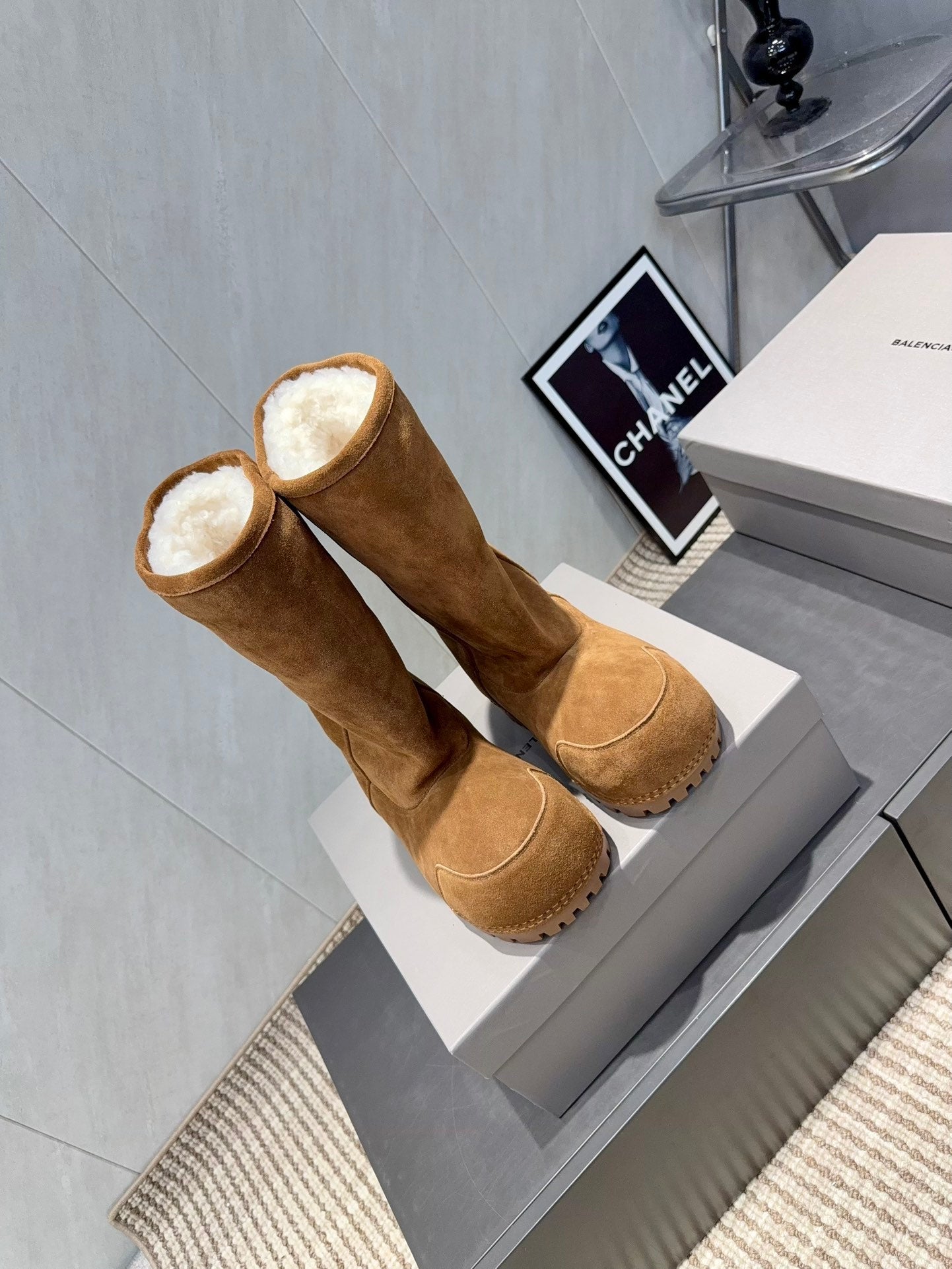 BALENCIAGA 25S BOOTS PLATFORM HEEL IN BROWN SUEDE STYLE 4