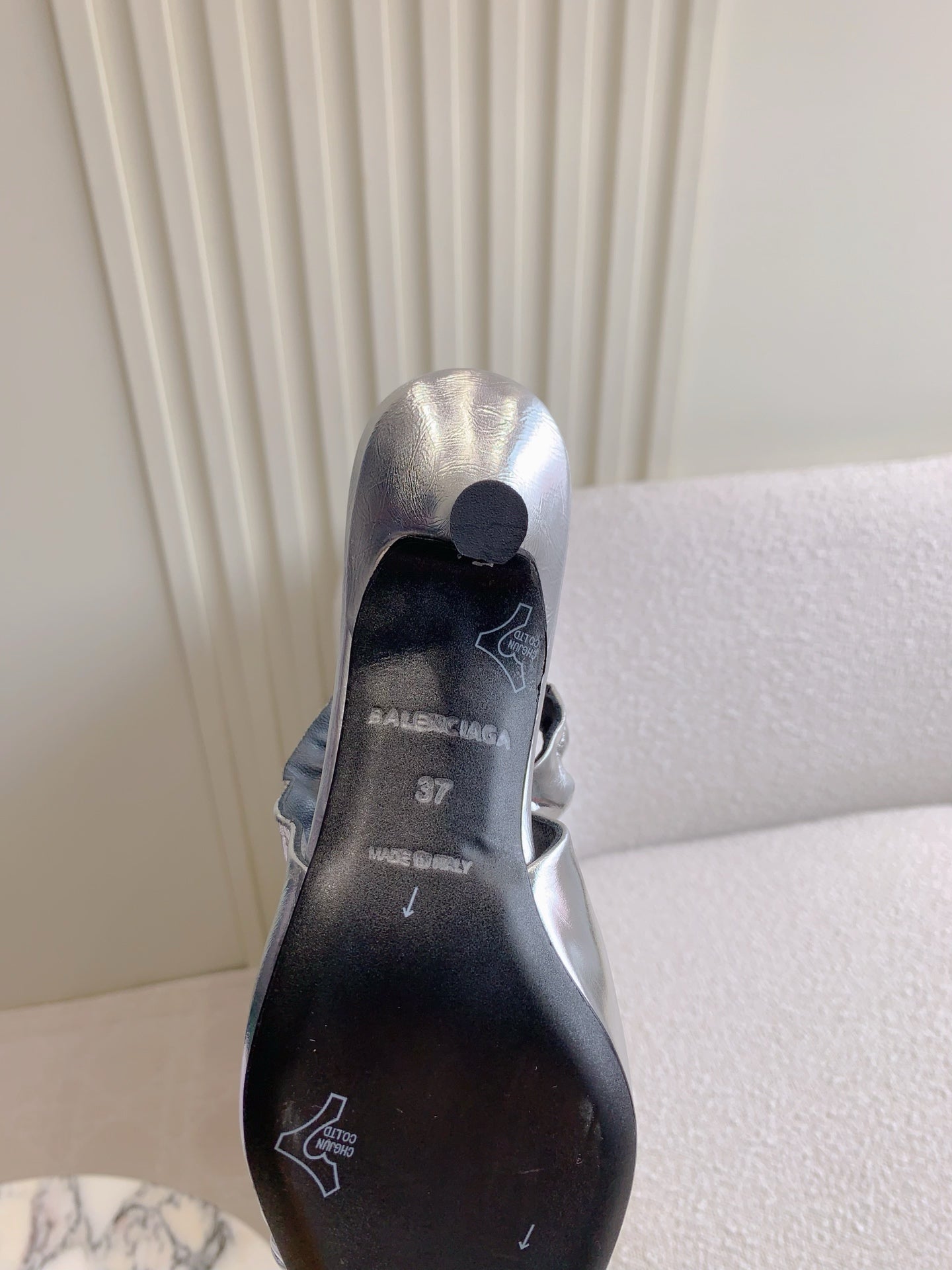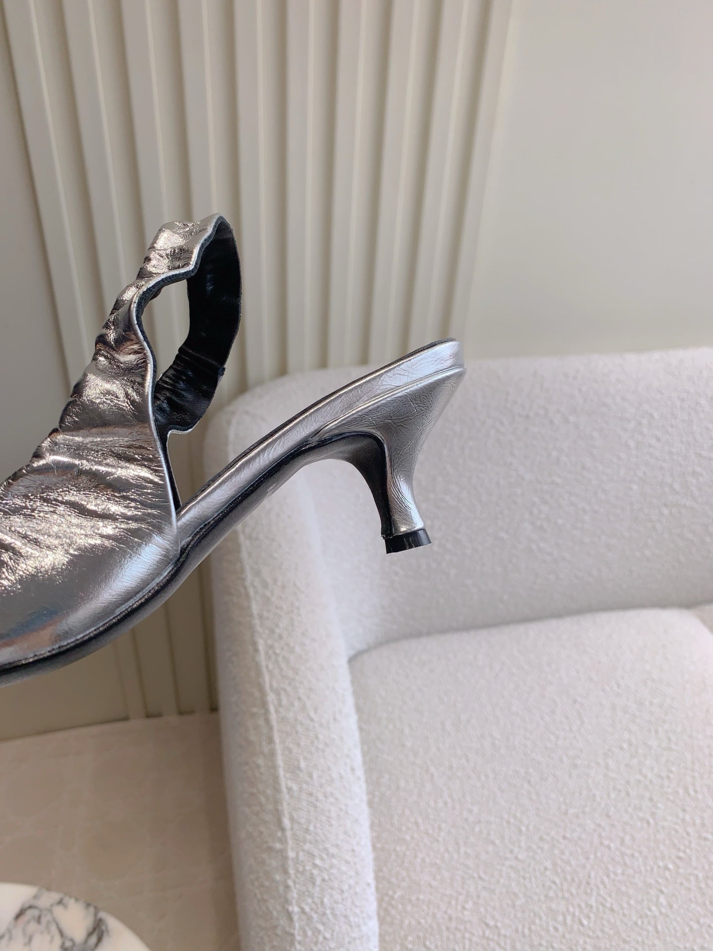 BALENCIAGA 25S HIGH SLINGBACK 35 MM IN SILVER LAMBSKIN WITH GOLD HARDWARE