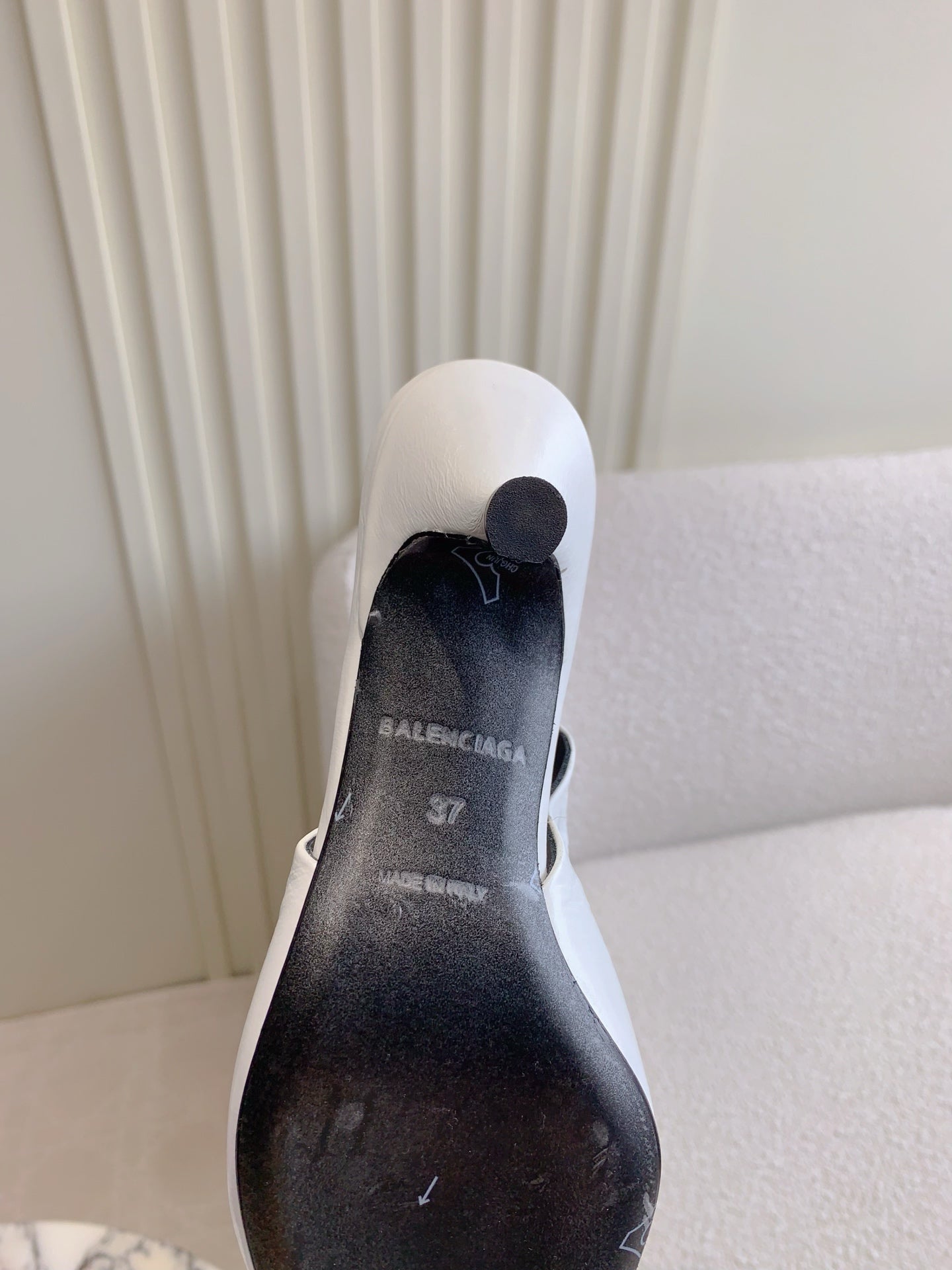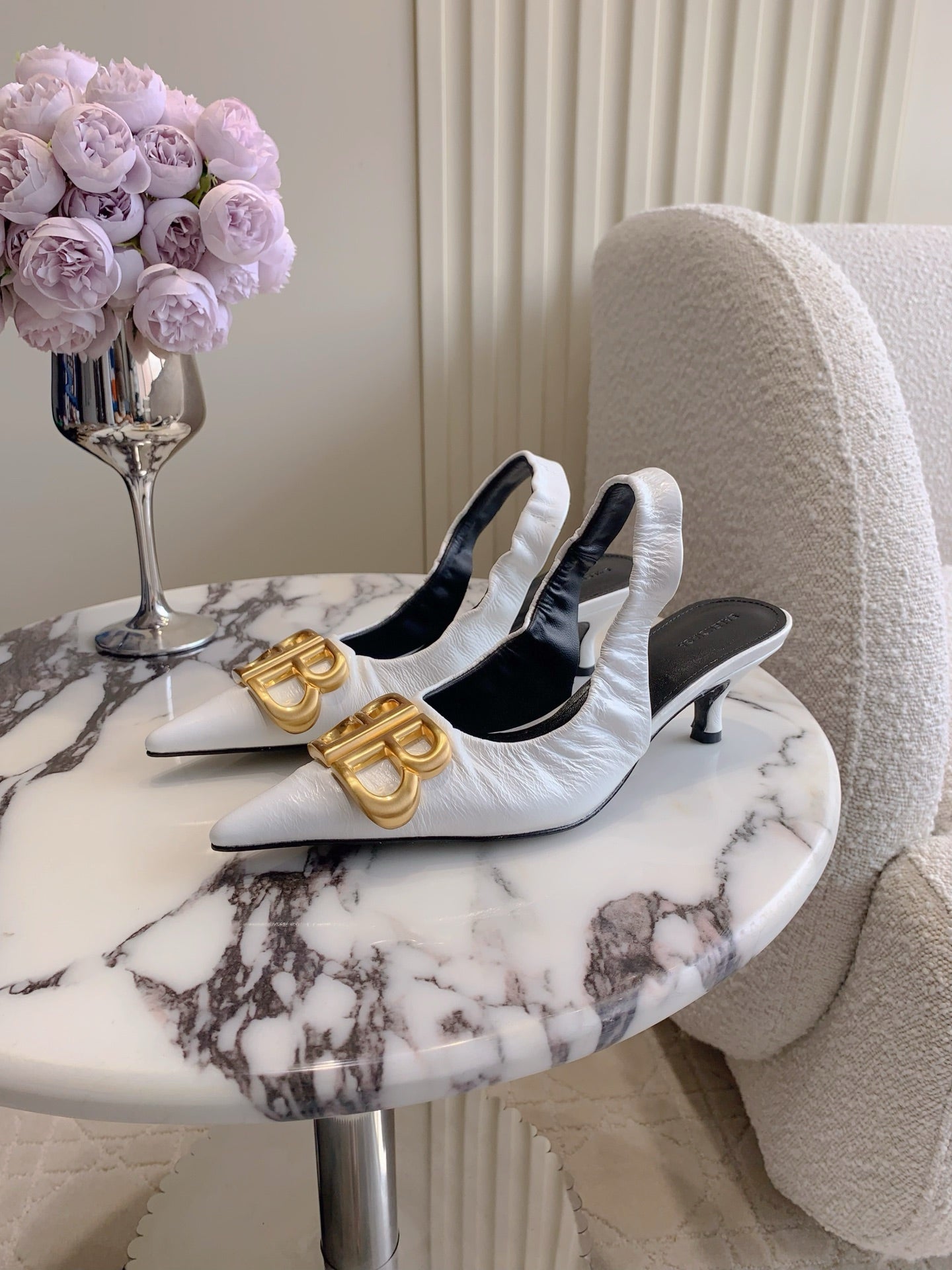 BALENCIAGA 25S HIGH SLINGBACK 35 MM IN WHITE LAMBSKIN WITH GOLD HARDWARE