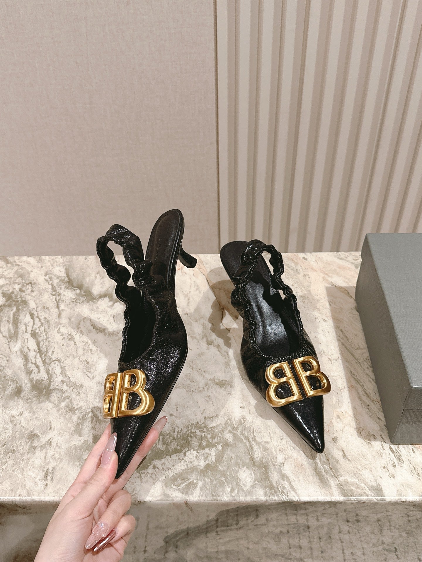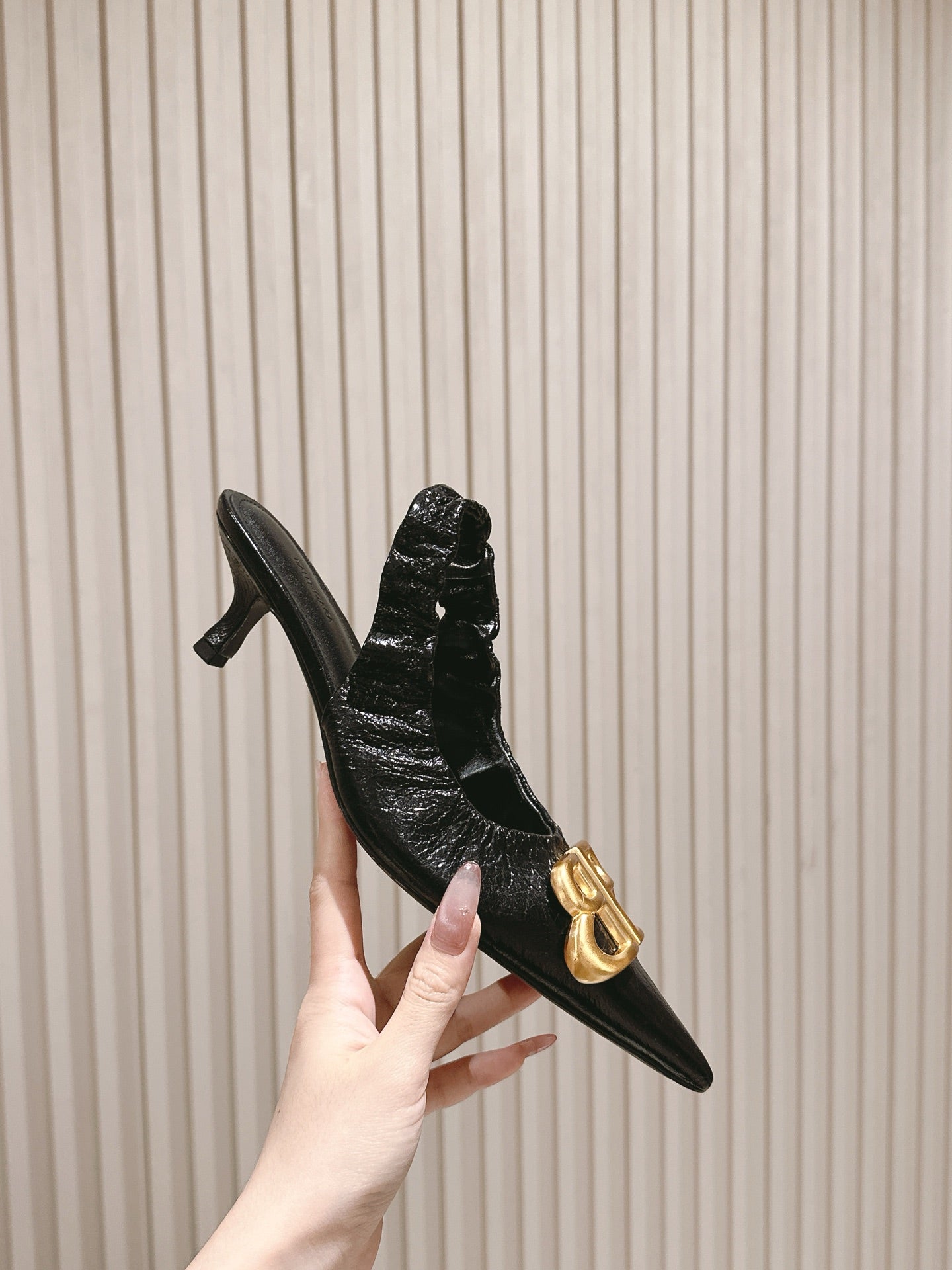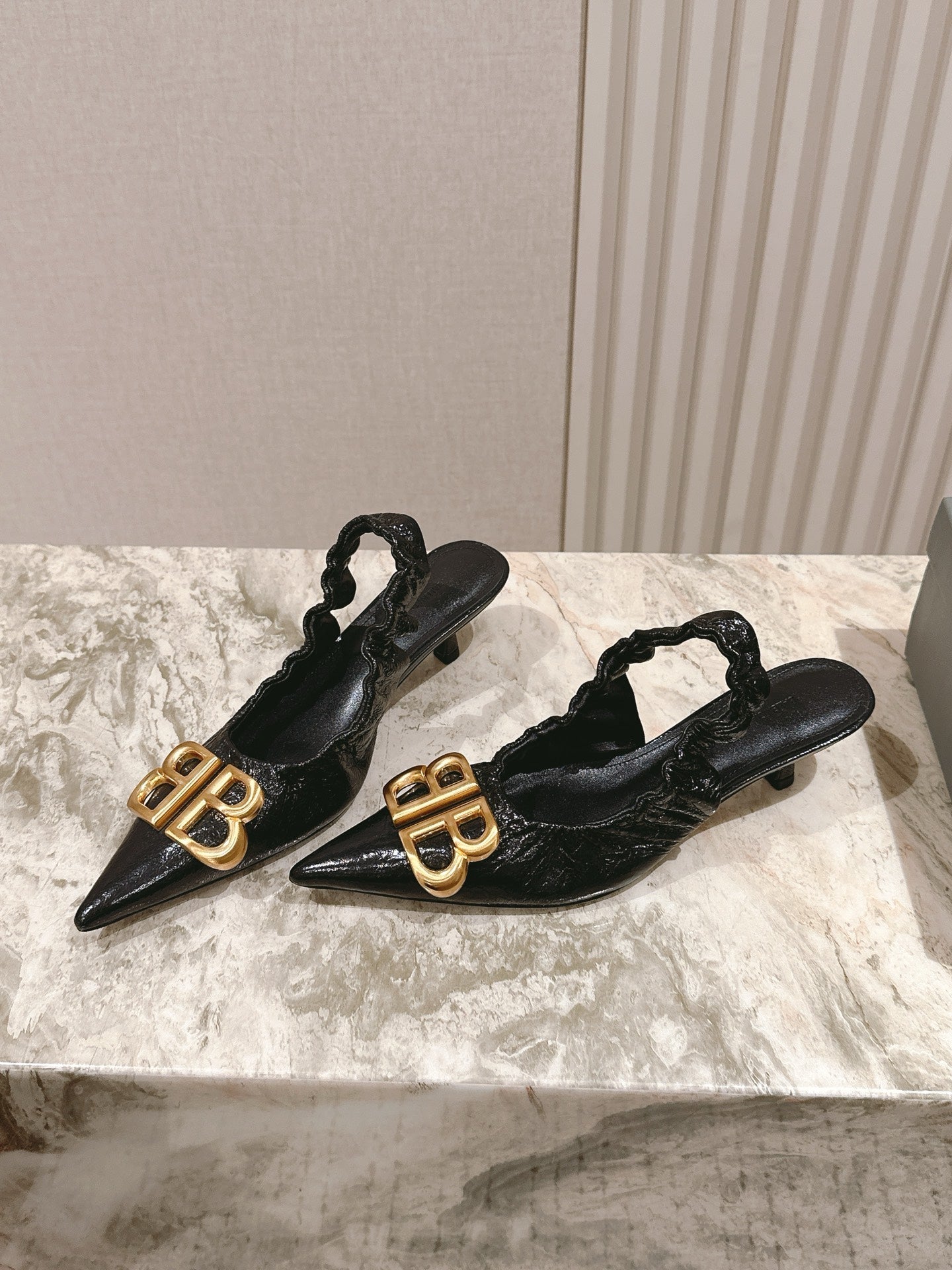 BALENCIAGA 25S HIGH SLINGBACK 45 MM IN BLACK LAMBSKIN WITH GOLD HARDWARE
