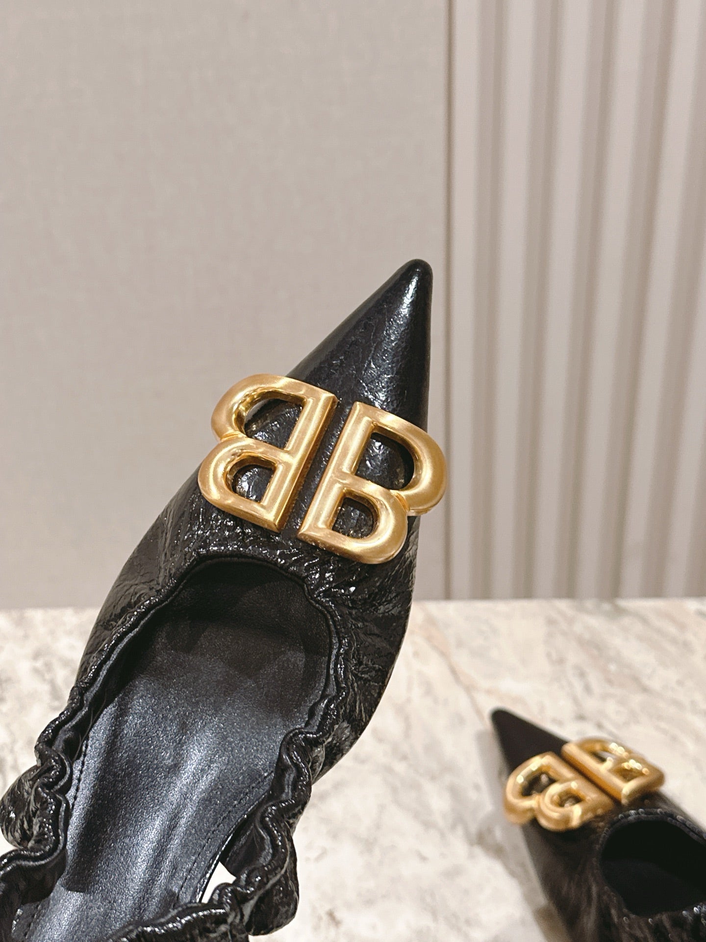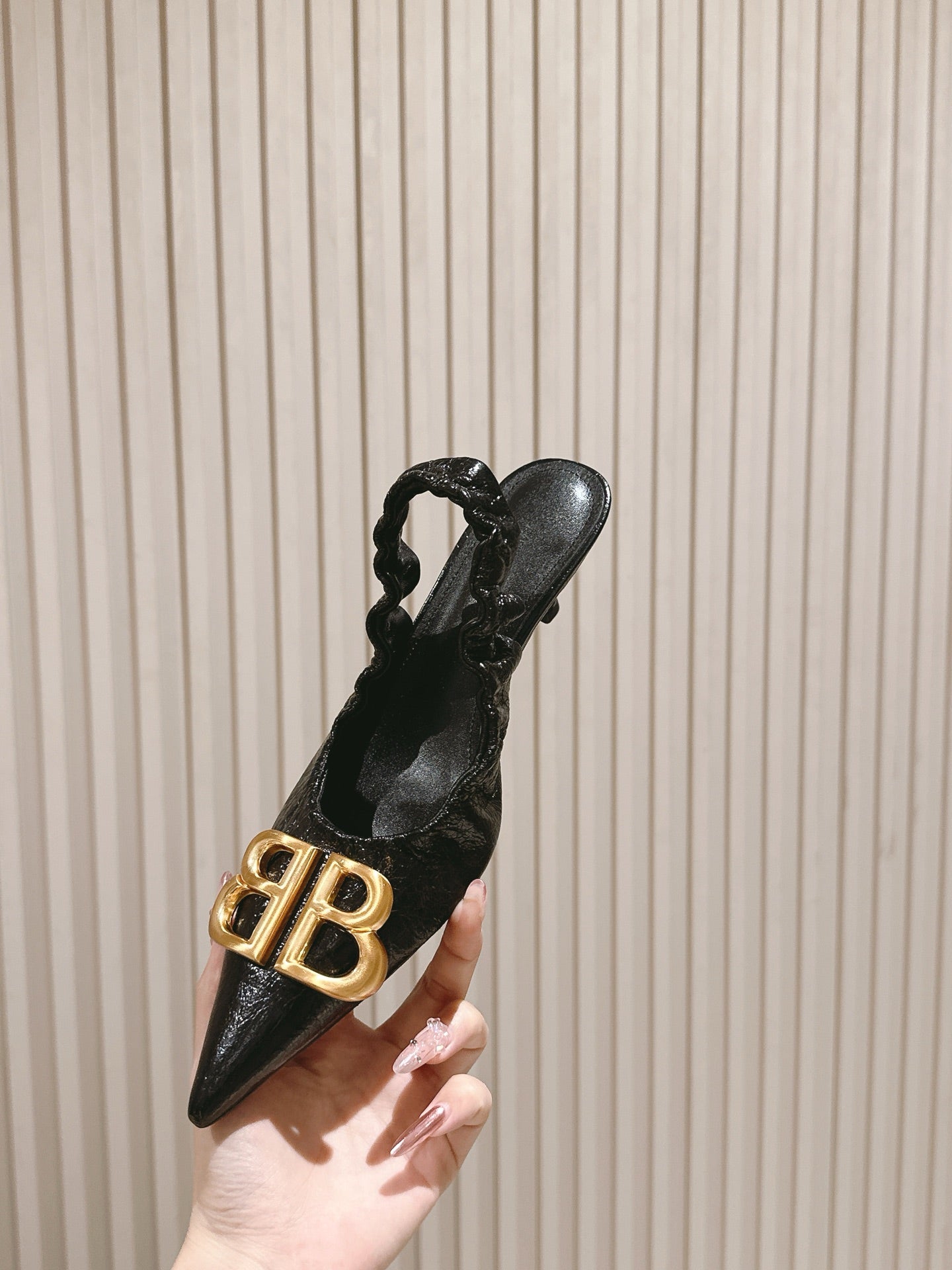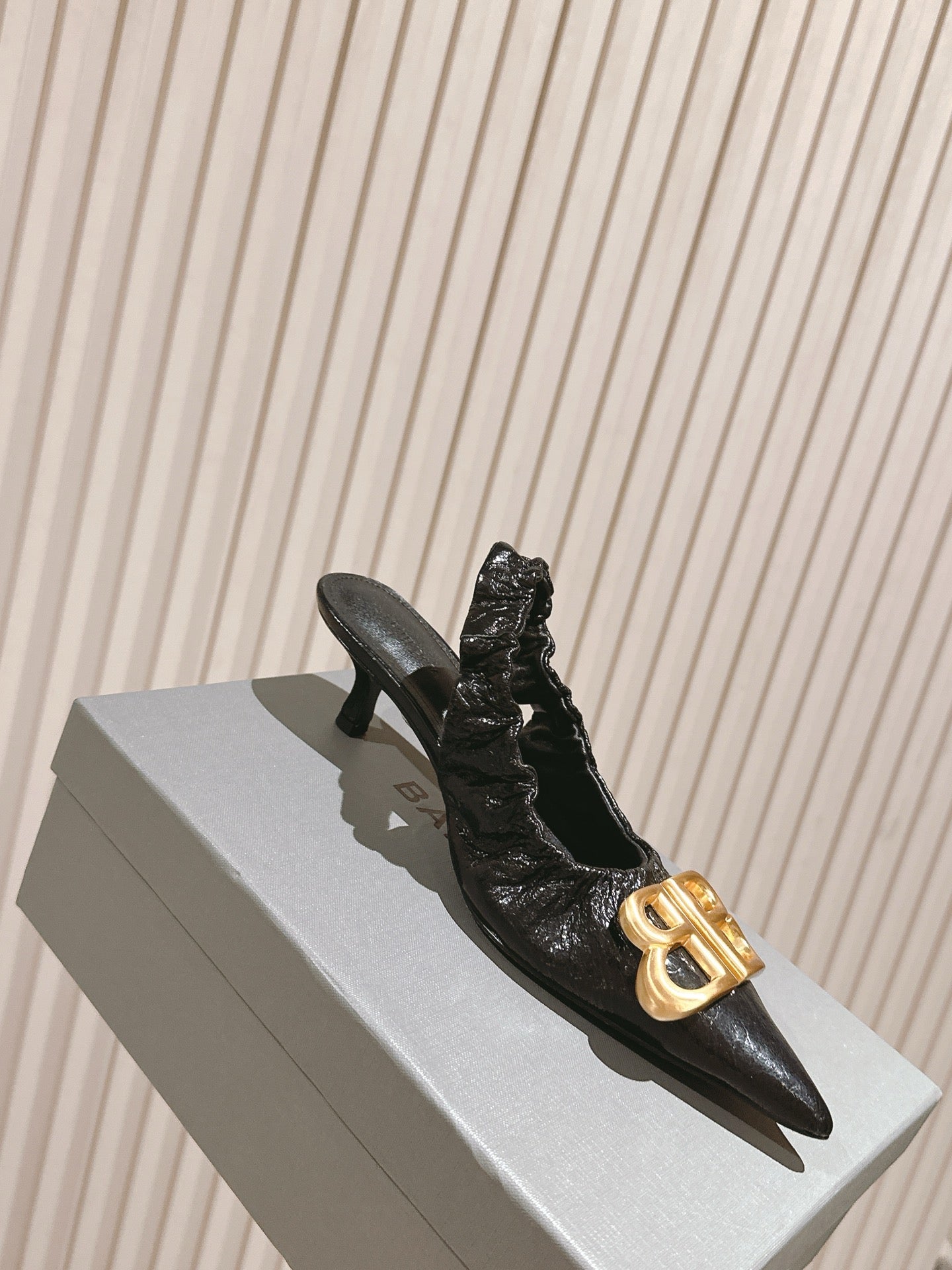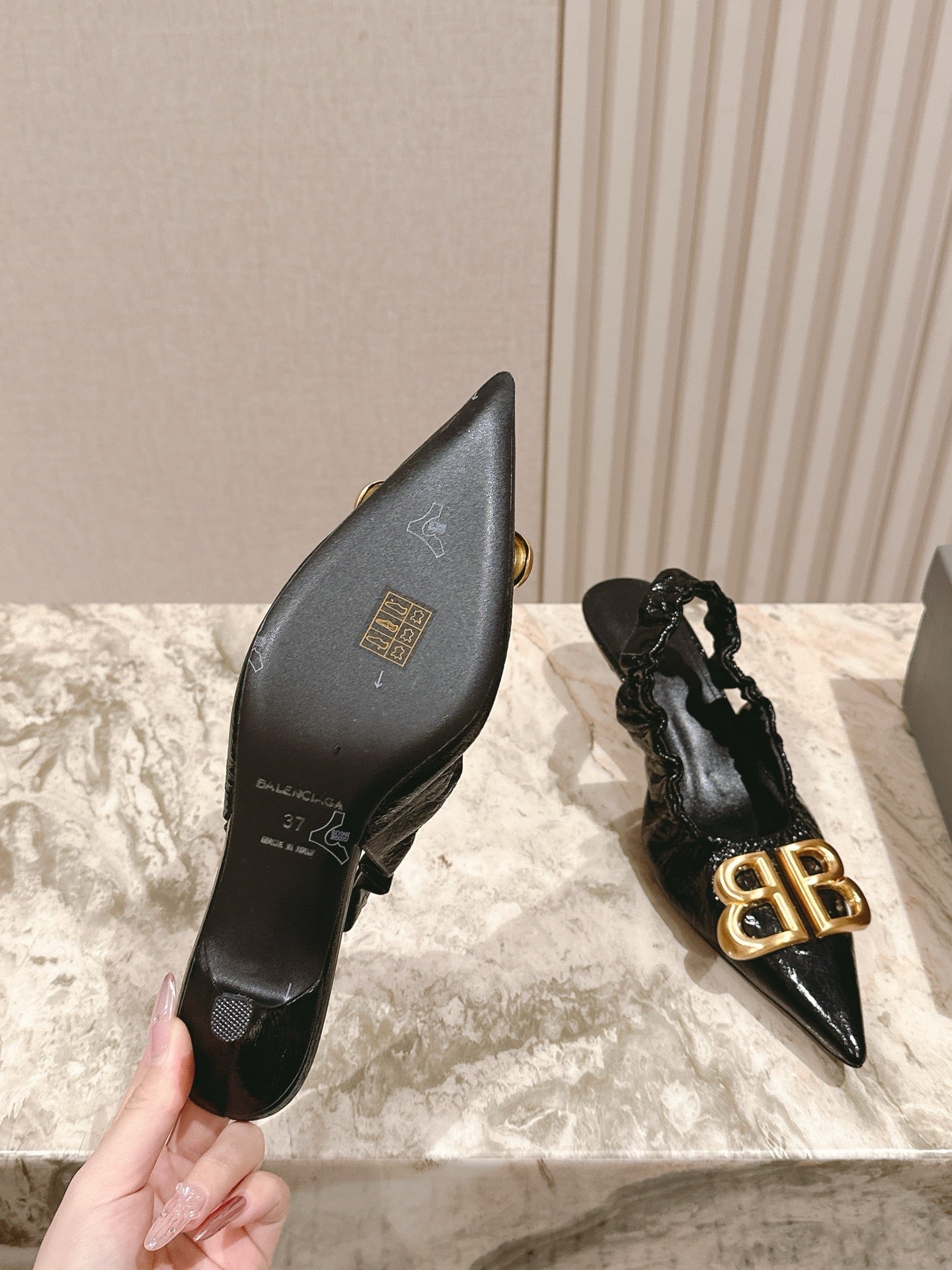 BALENCIAGA 25S HIGH SLINGBACK 45 MM IN BLACK LAMBSKIN WITH GOLD HARDWARE