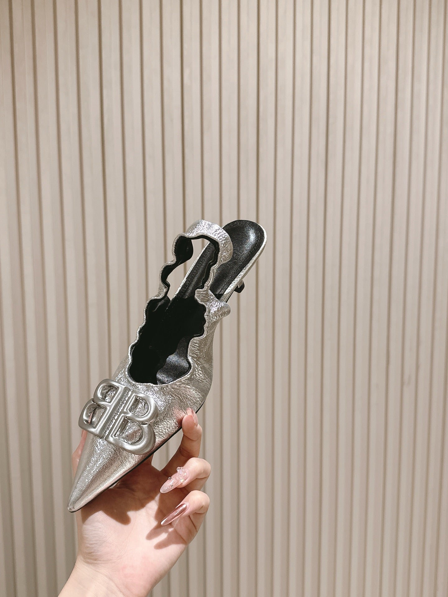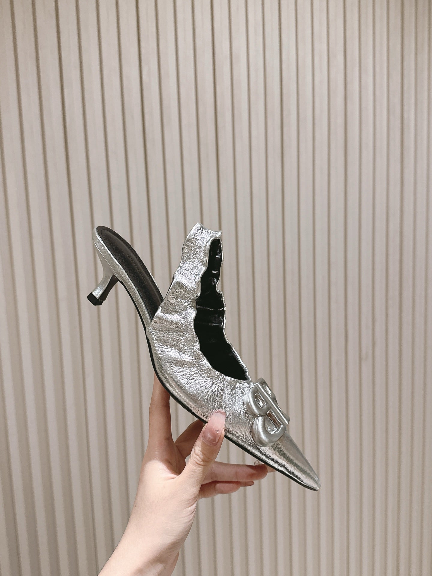 BALENCIAGA 25S HIGH SLINGBACK 45 MM IN SILVER LAMBSKIN WITH SILVER HARDWARE