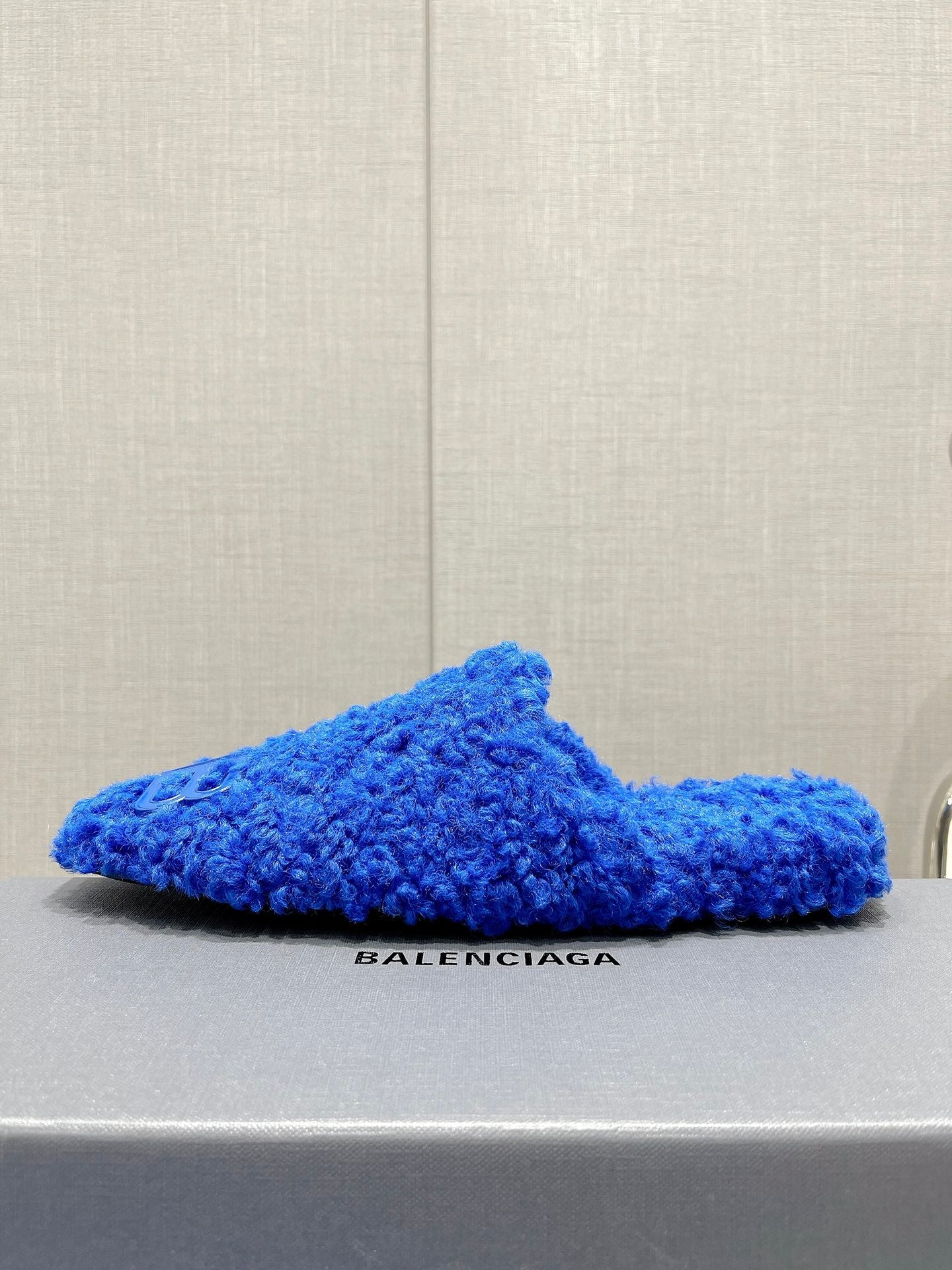 BALENCIAGA 25S MULES IN BLUE WOOL WITH LOGO
