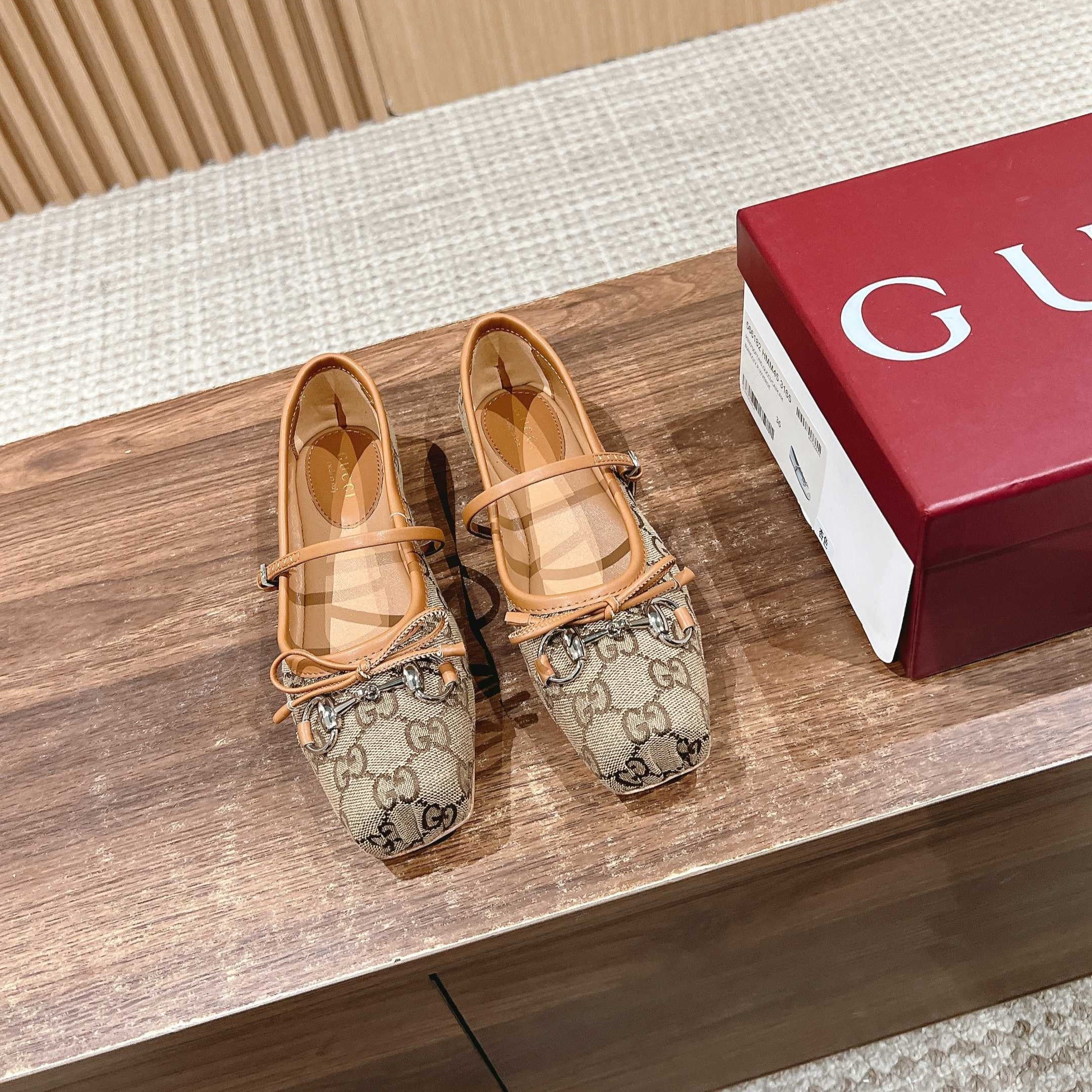 BALLET FLATS HORSEBIT IN BEIGE AND DARK BROWN CANVAS