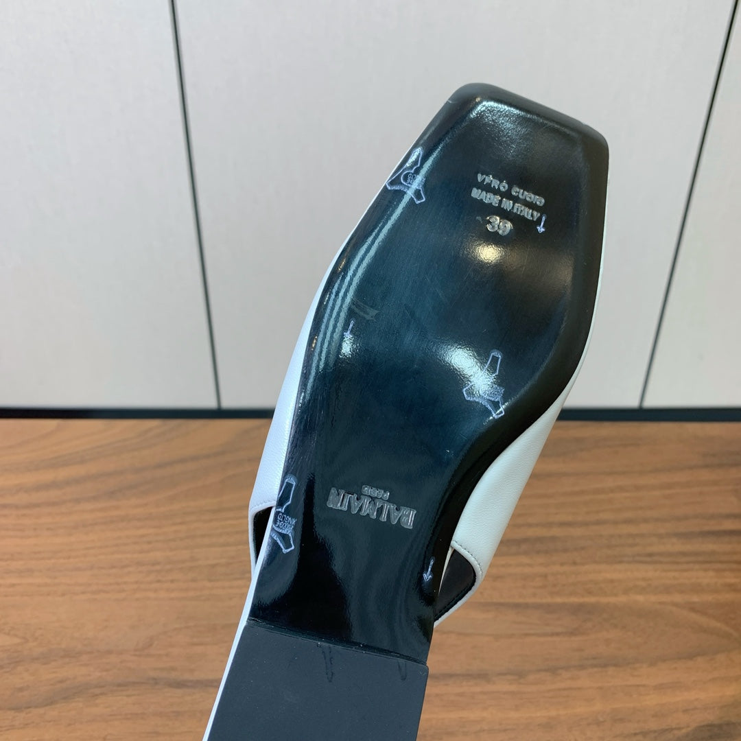 BALMAIN 25S FLAT EDEN SLINGBACKS IN WHITE CALFSKIN