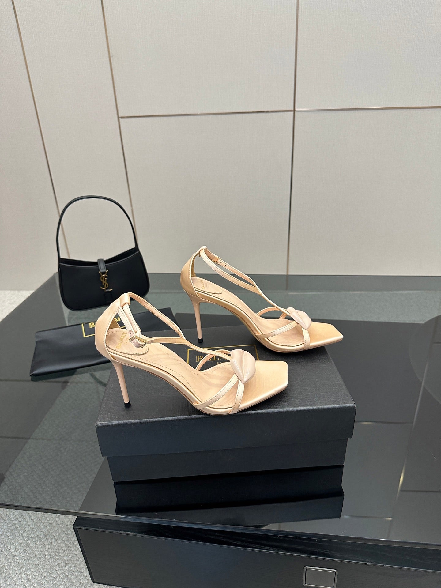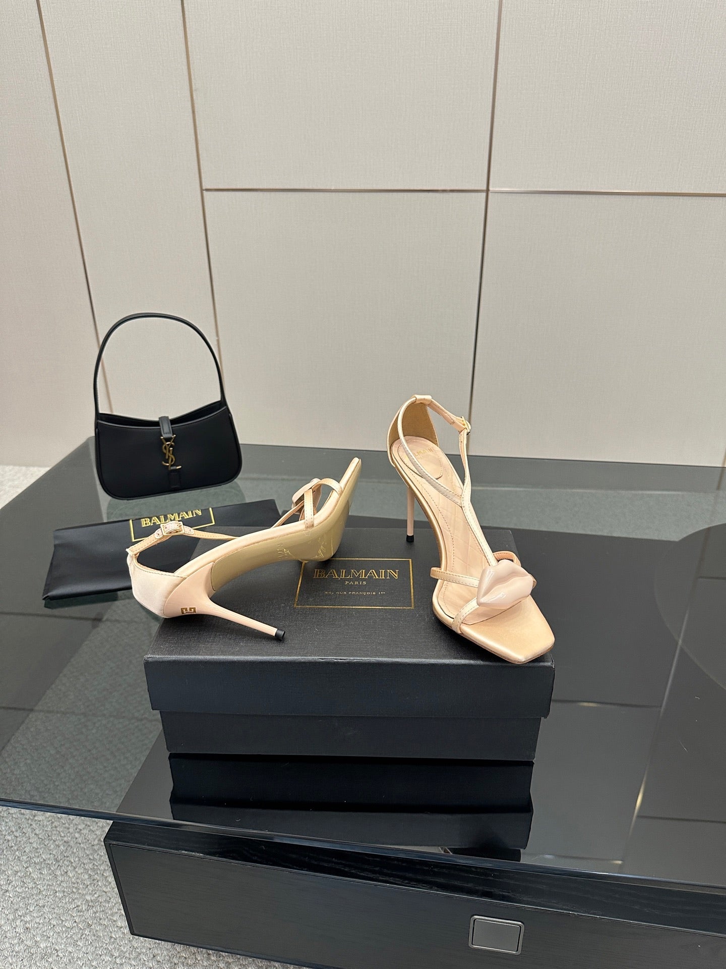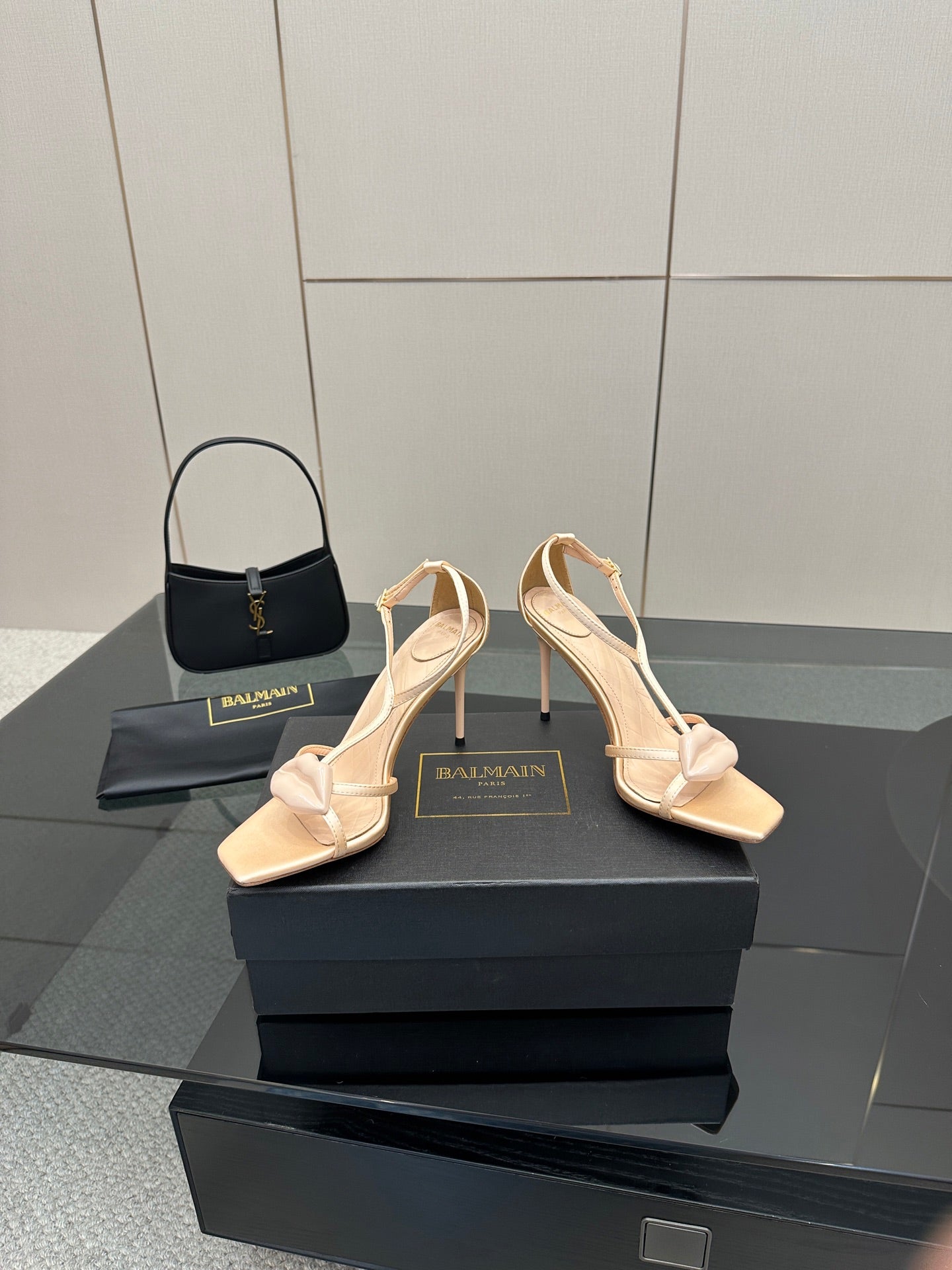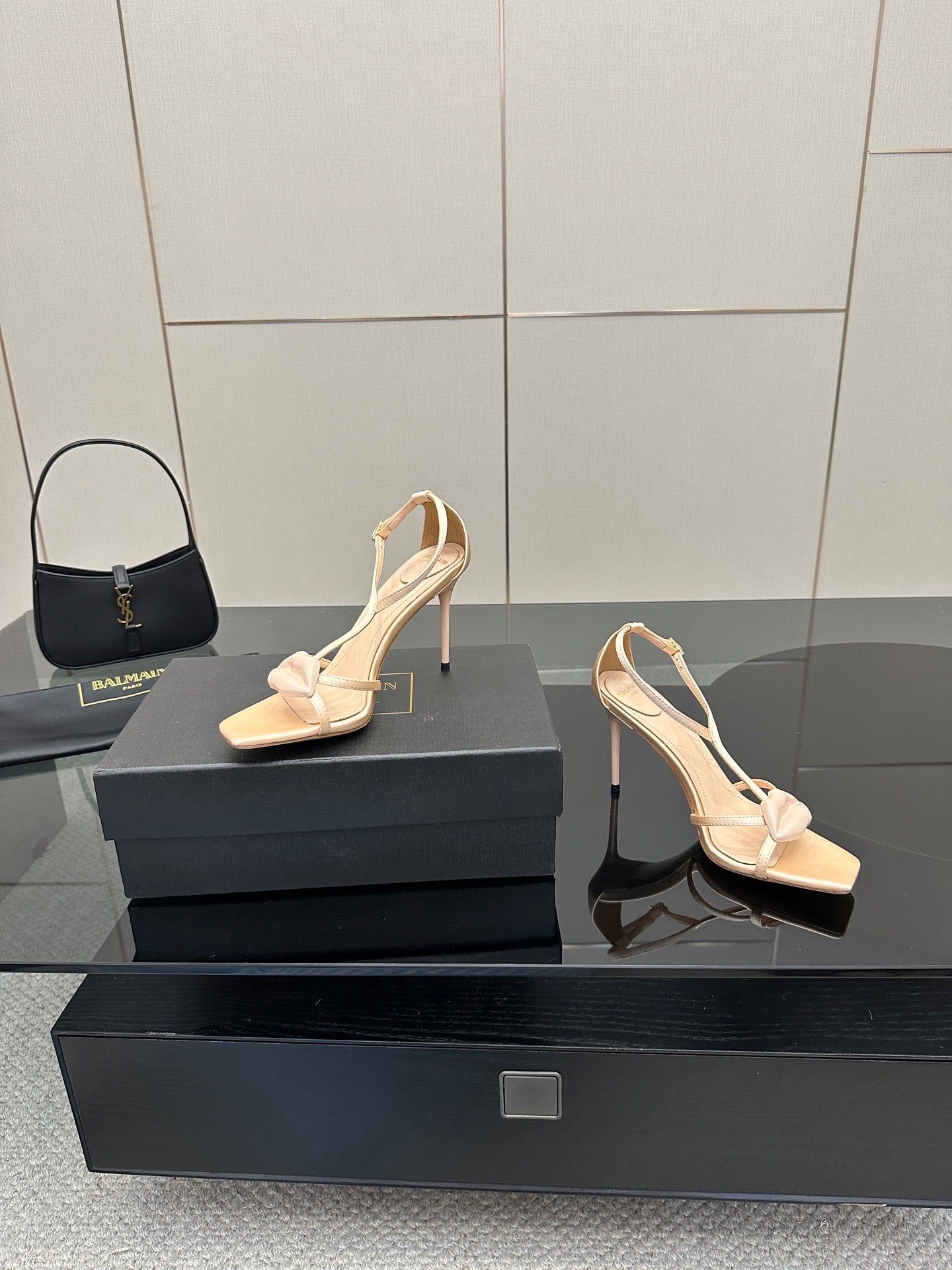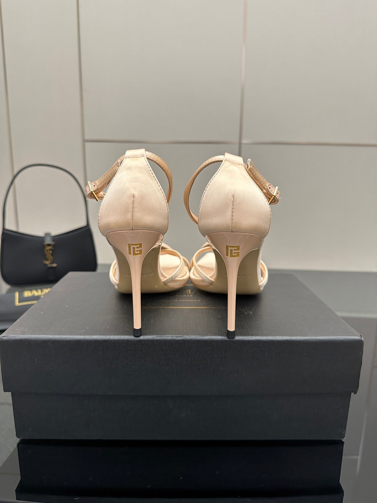 BALMAIN 25S LIPS SANDALS 10 IN BLUSH BEIGE SATIN
