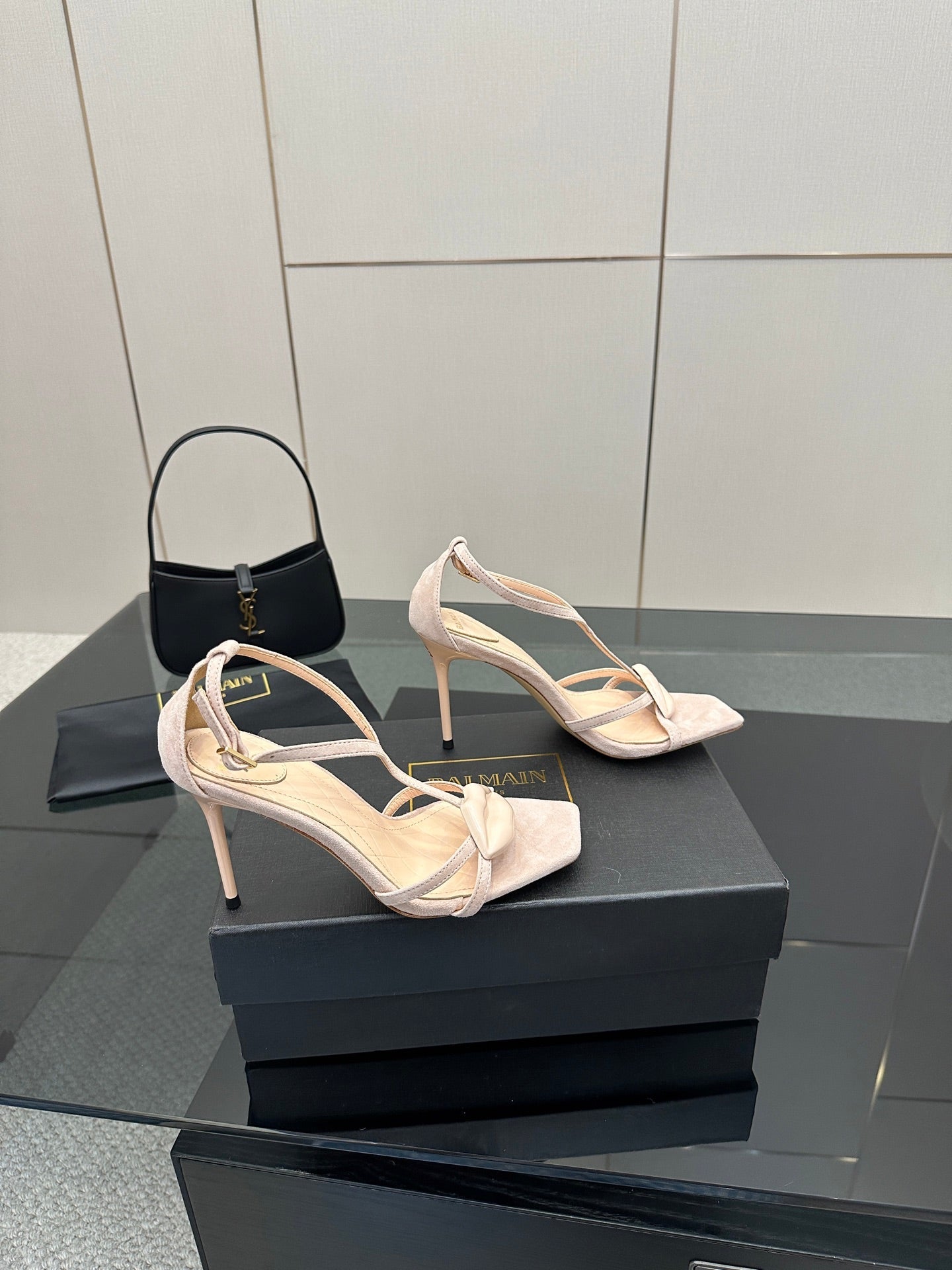BALMAIN 25S LIPS SANDALS 10 IN BLUSH BEIGE SUEDE