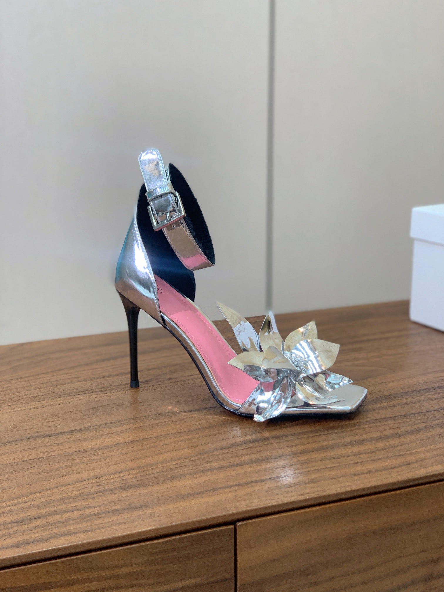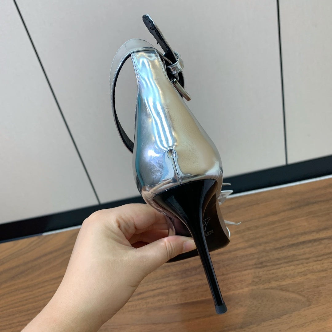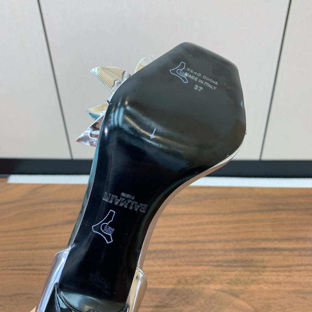 BALMAIN 25S RUBY SILVER HEELED SANDALS 95MM IN PATENT CALFSKIN