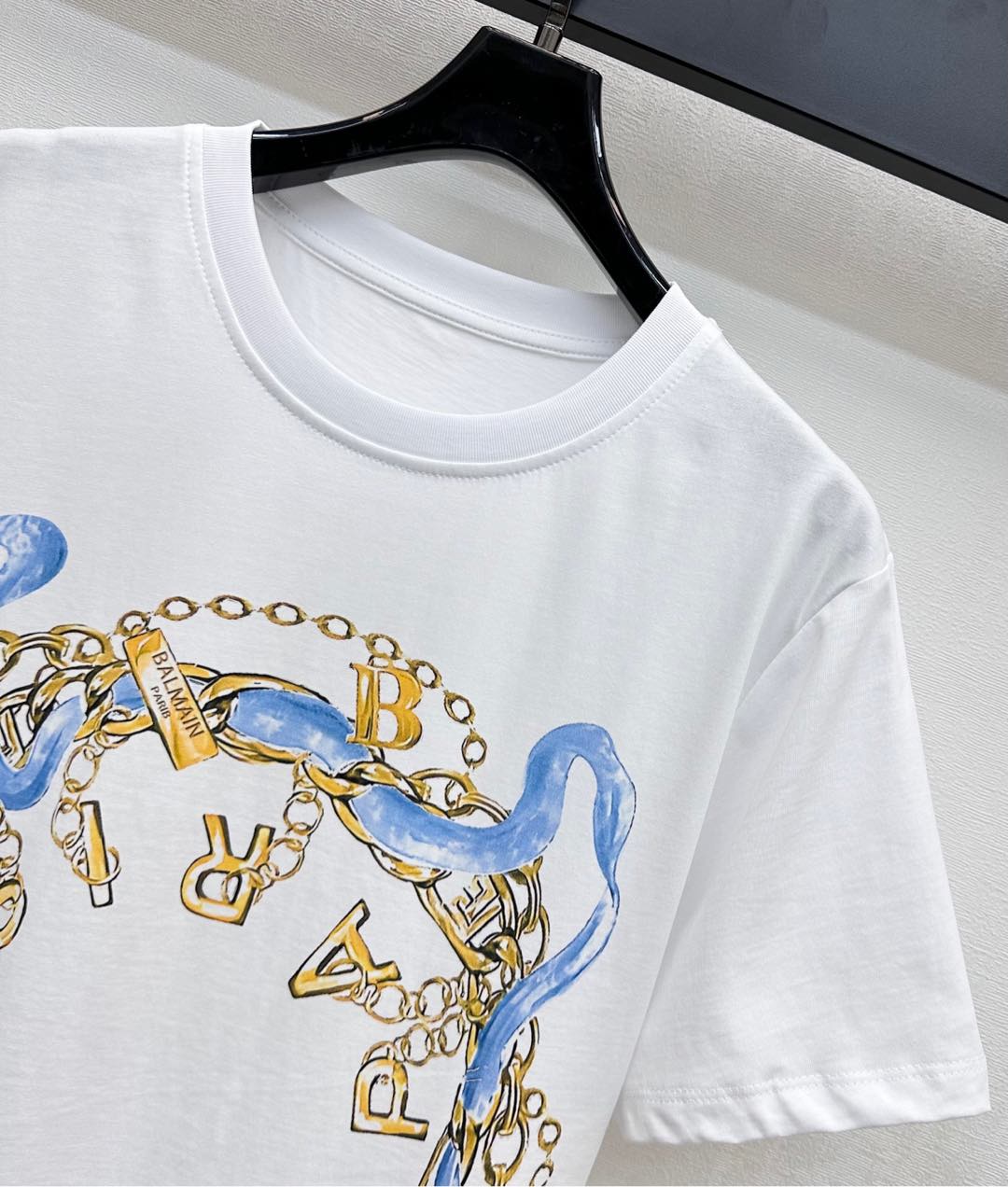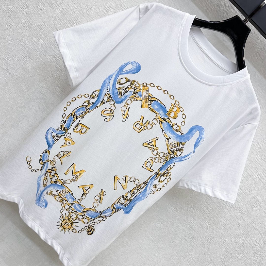 BALMAIN WHITE COTTON T-SHIRT 263722