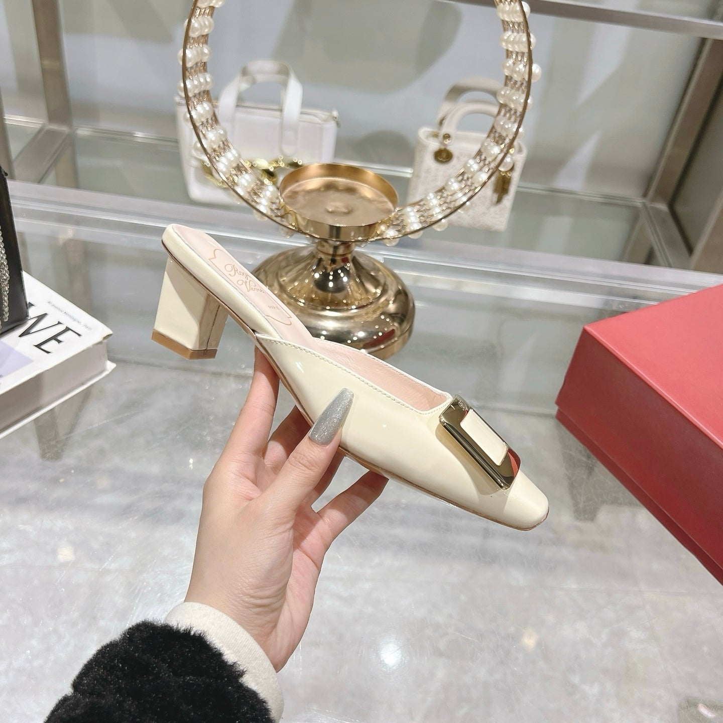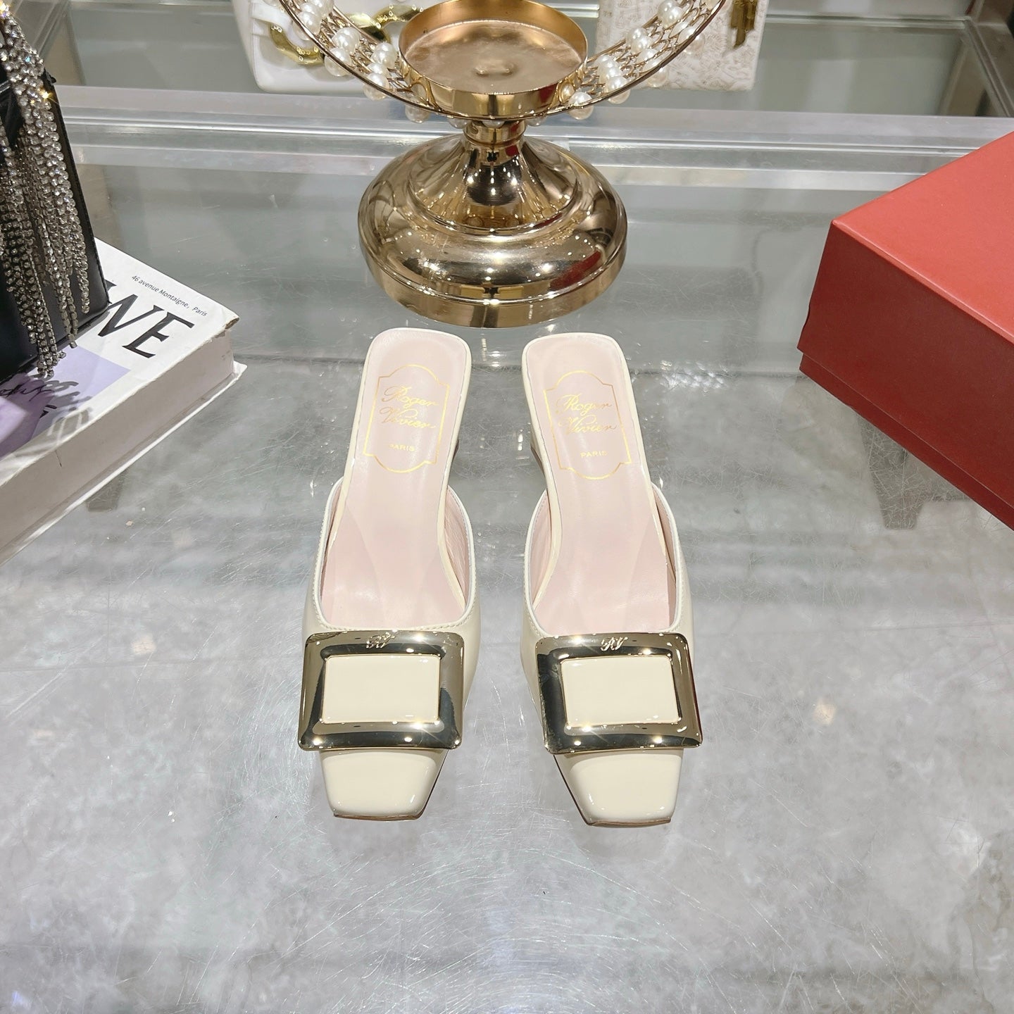 BELLE VIVIER MULES IN IVORY WHITE PATENT CALFSKIN