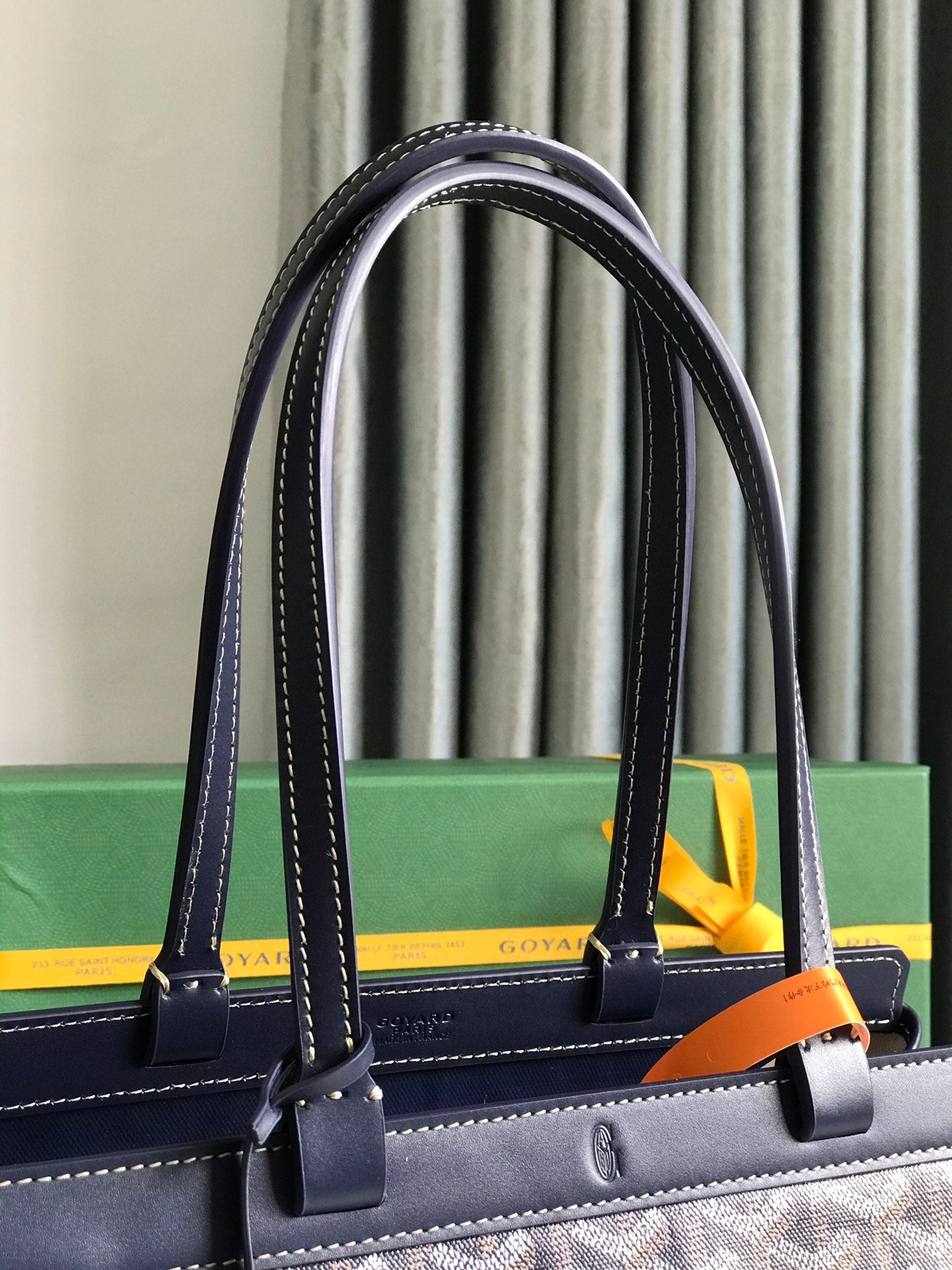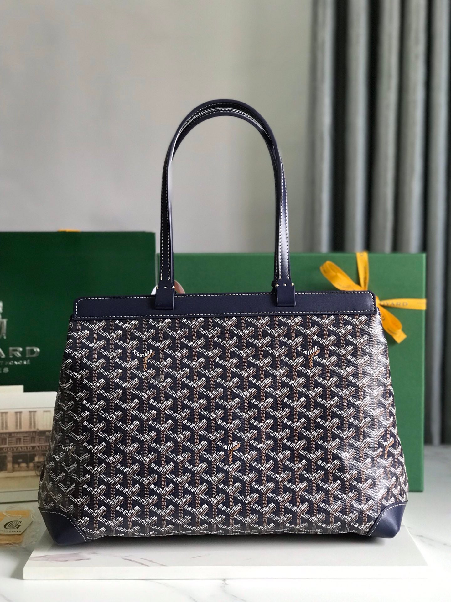 BELLECHASSE BIAUDE PM BAG 36 IN NAVY BLUE GOYARDINE CANVAS AND CALFSKIN TRIM