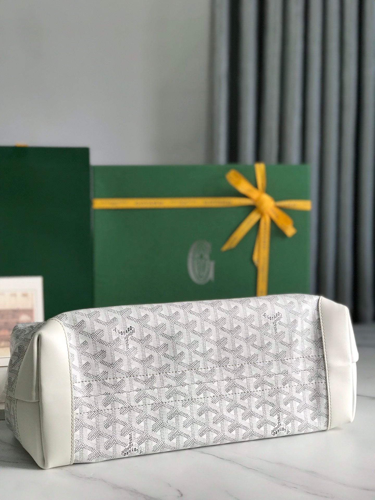 BELLECHASSE BIAUDE PM BAG 36 IN WHITE GOYARDINE CANVAS AND CALFSKIN TRIM