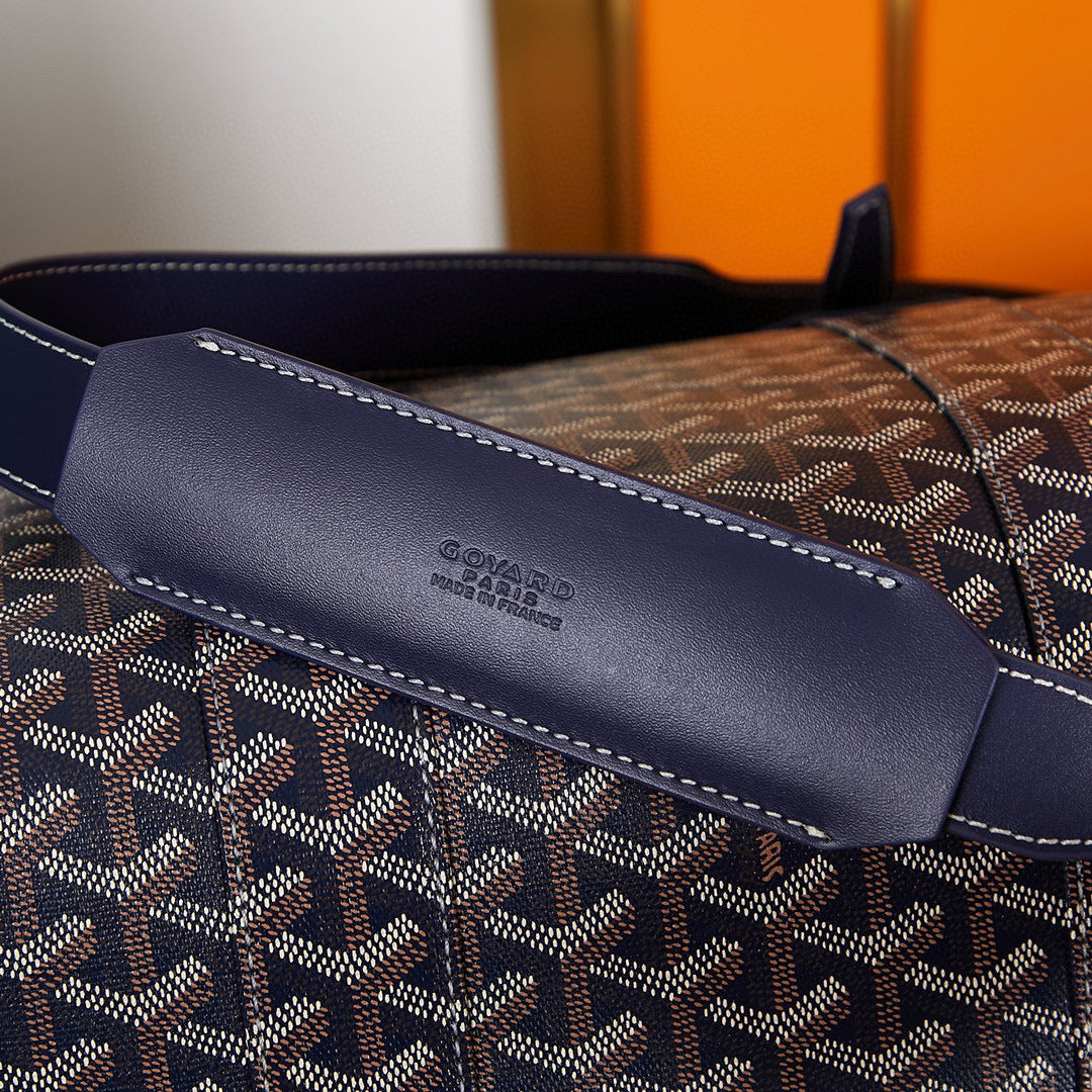 BOSTON 45 BAG IN NAVY BLUE GOYARDINE CANVAS AND CALFSKIN TRIM