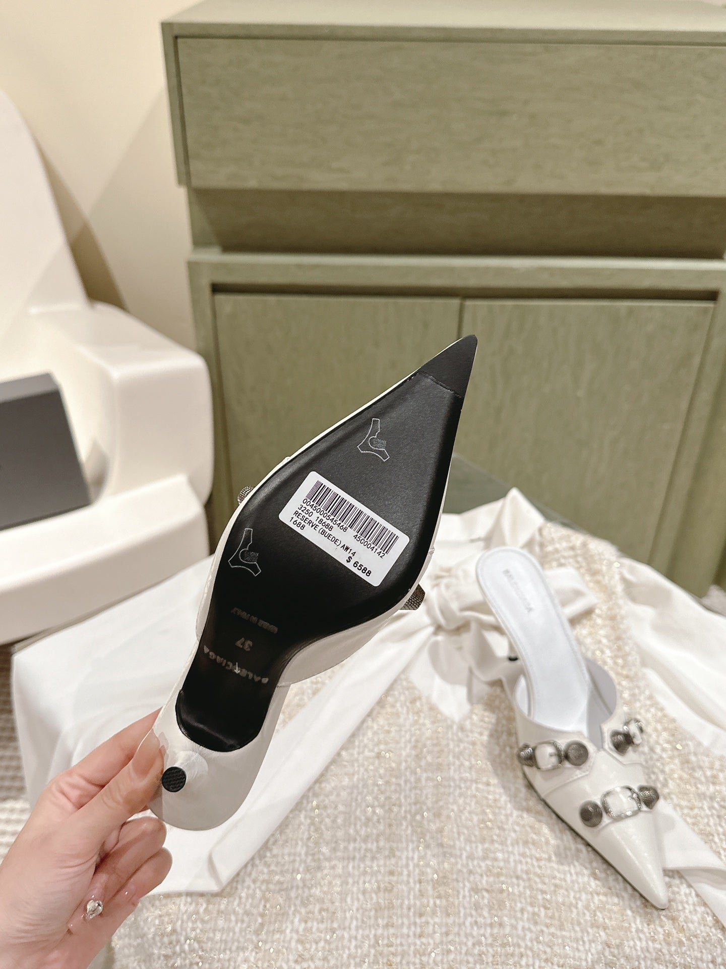CAGOLE POINTED HIGH MULES IN WHITE SHINY CALFSKIN