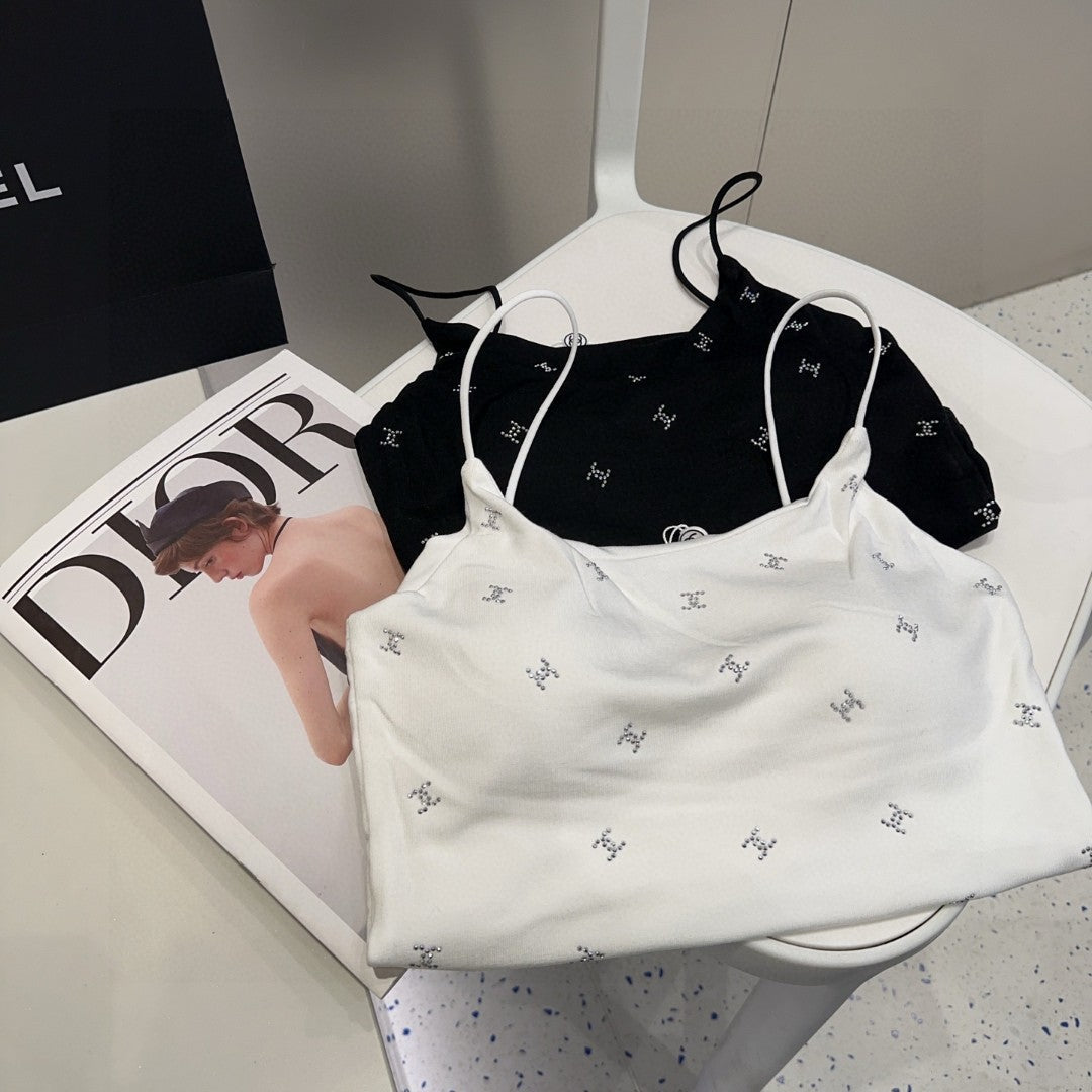 CAMI TOP 639175 IN BLACK COTTON RIBBED KNIT