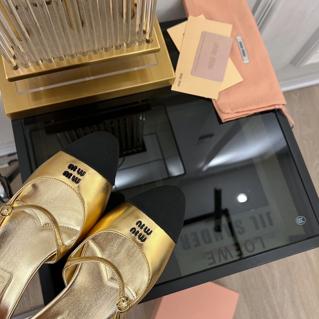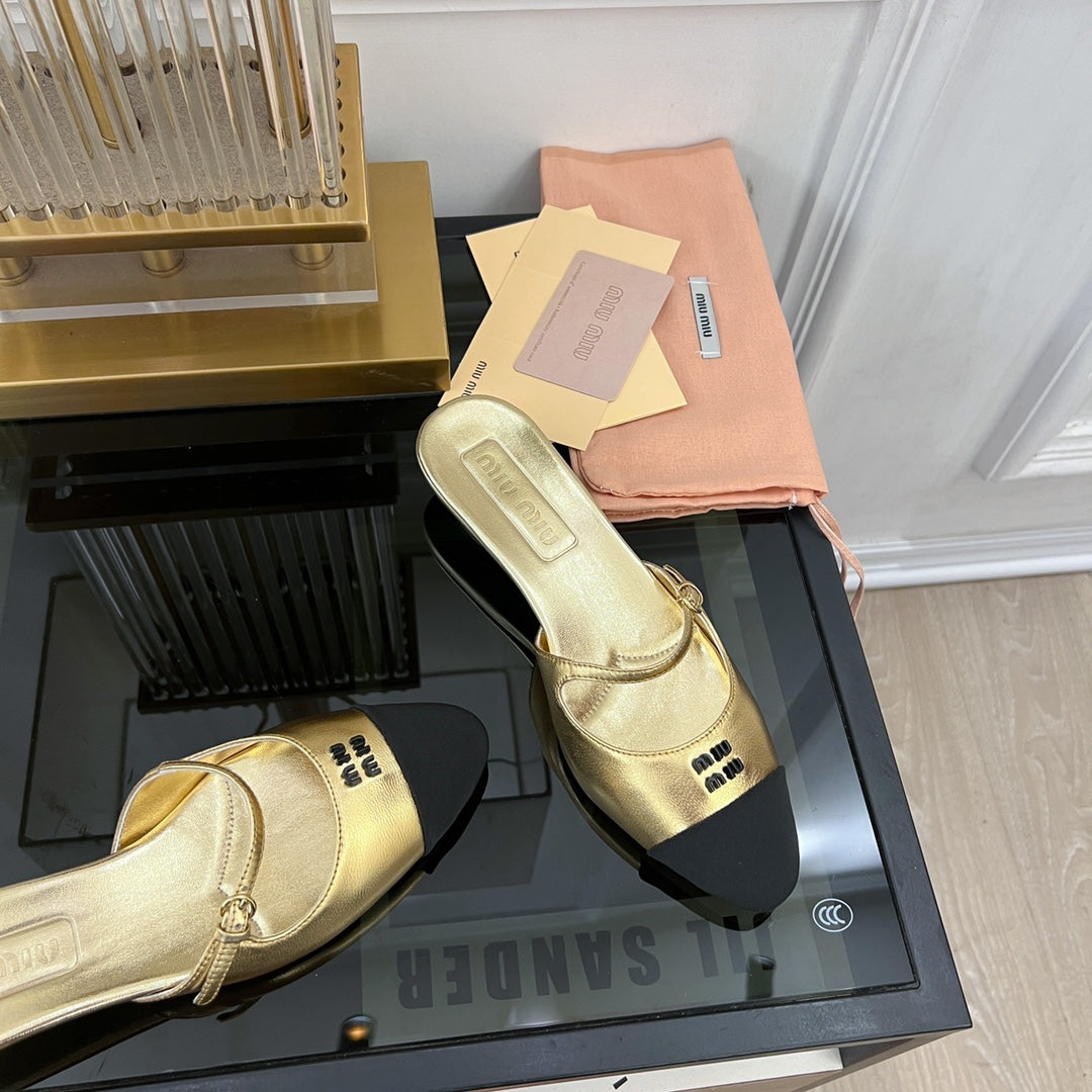 Cap Toe Mules Metallic Gold Color Sheepskin