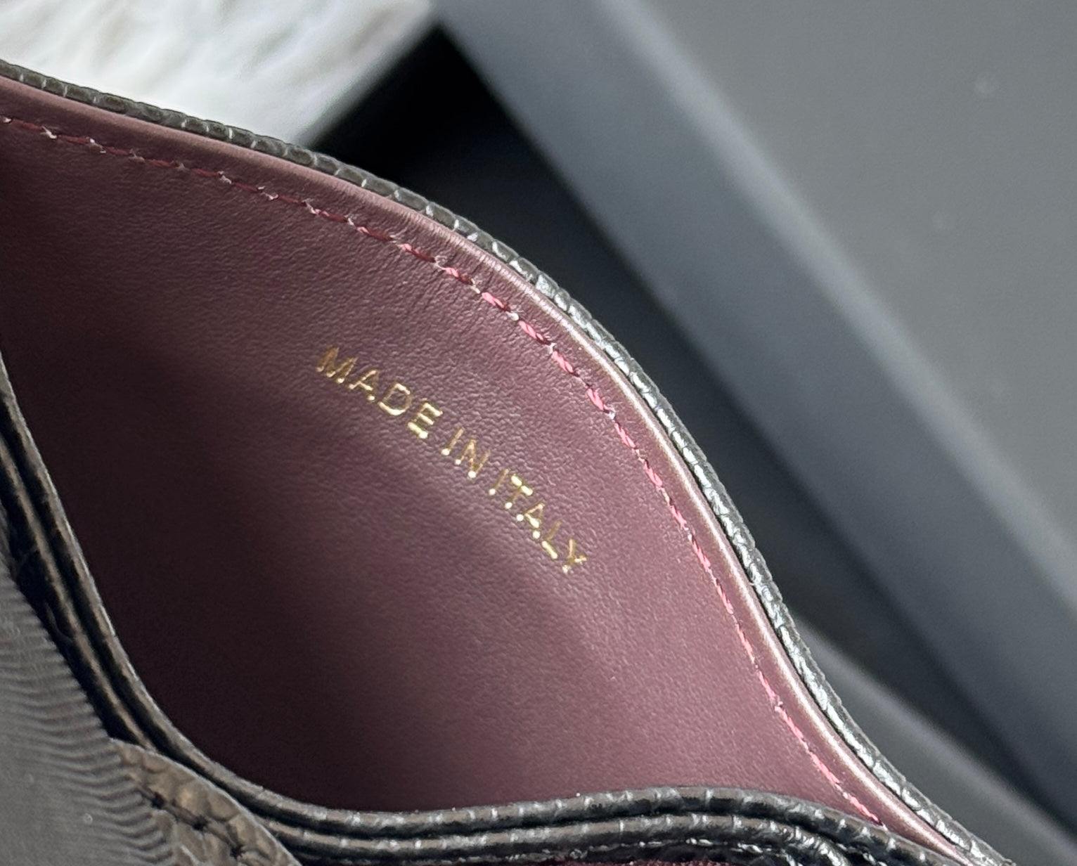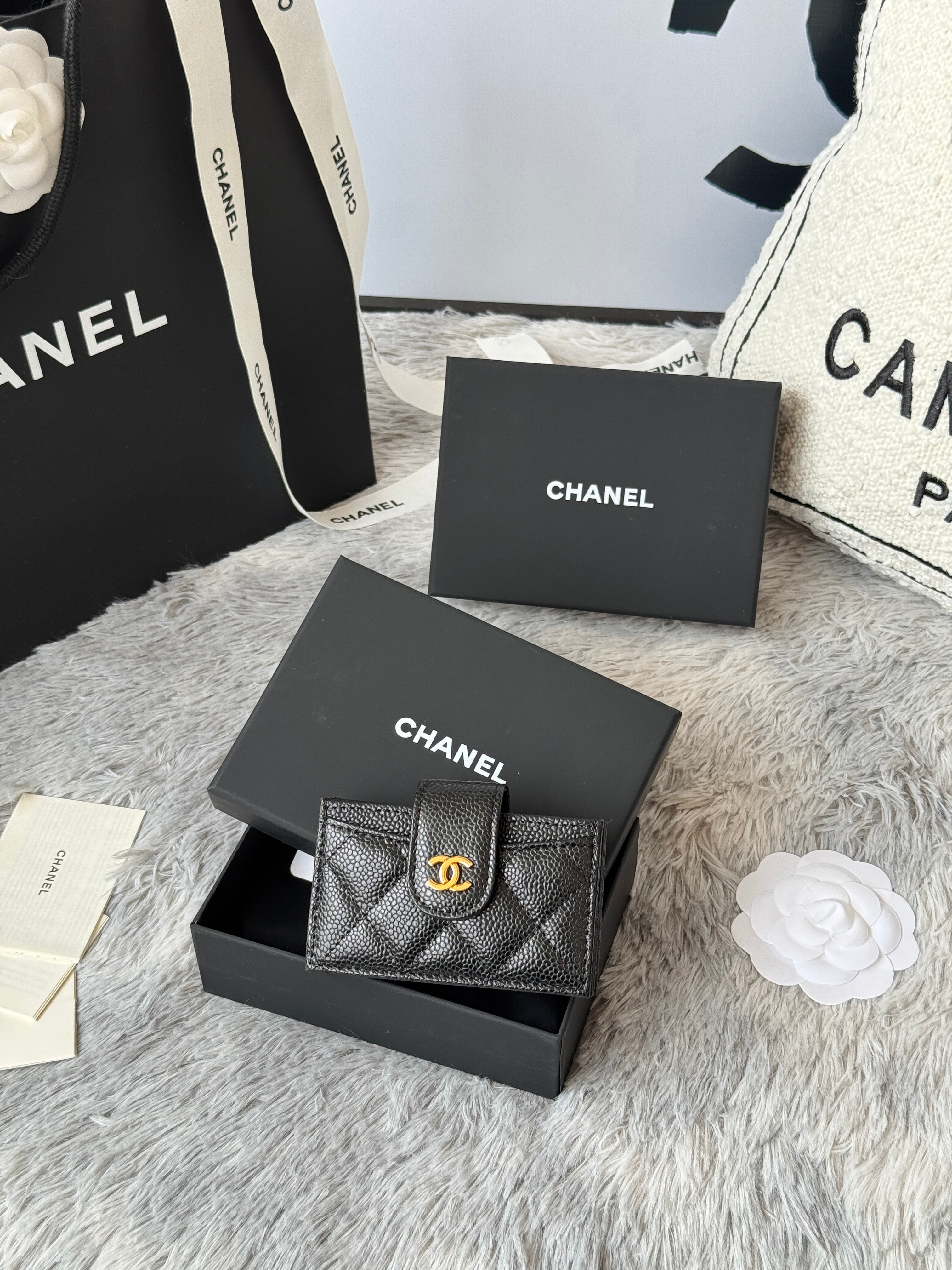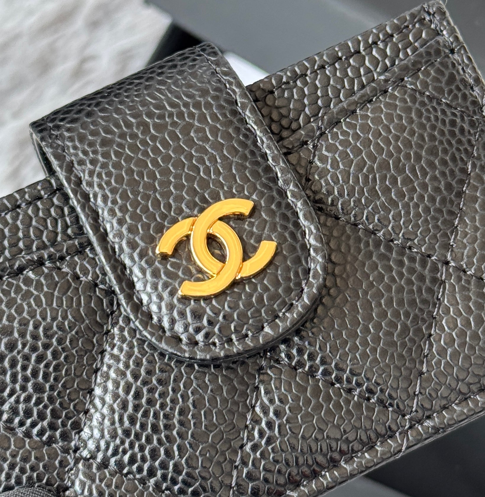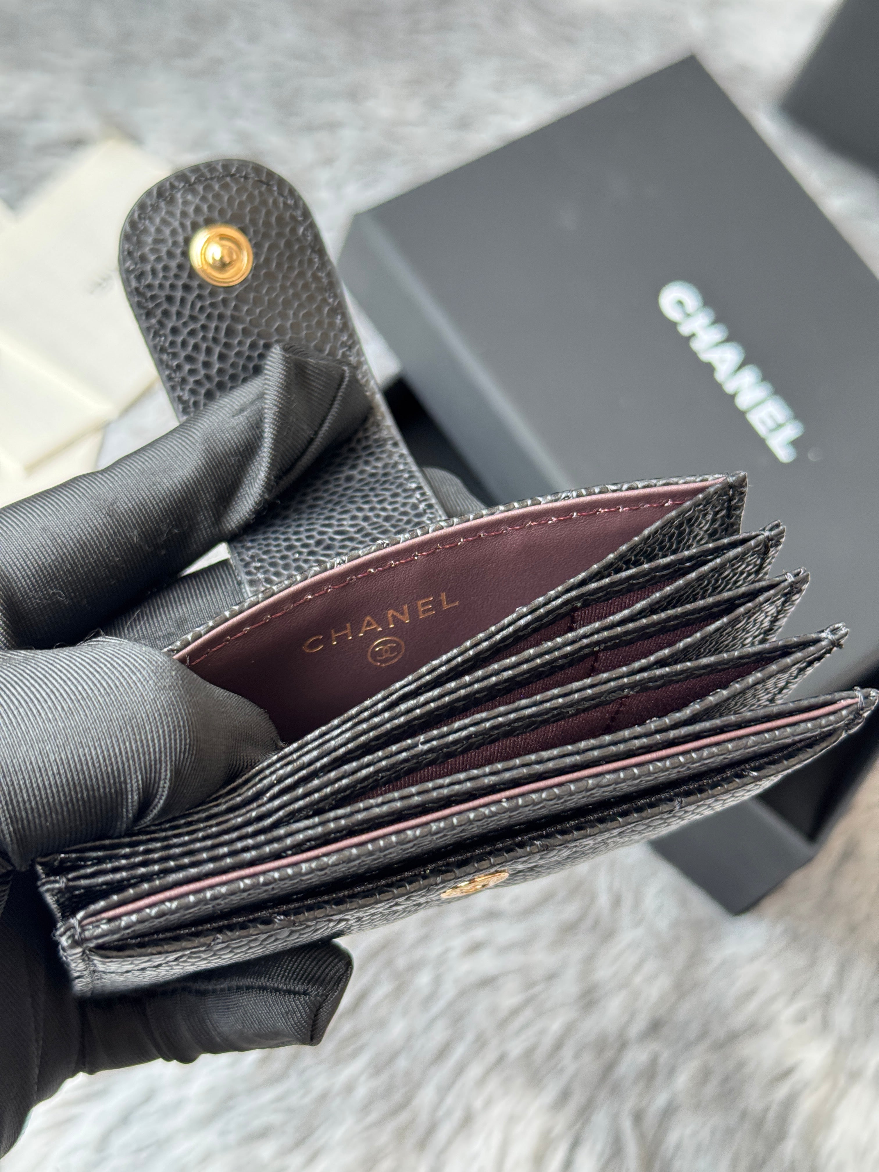 CARD HOLDER 10 CIRCLE CLASP IN BLACK CAVIAR LEATHER GOLD-TONE METALLIC