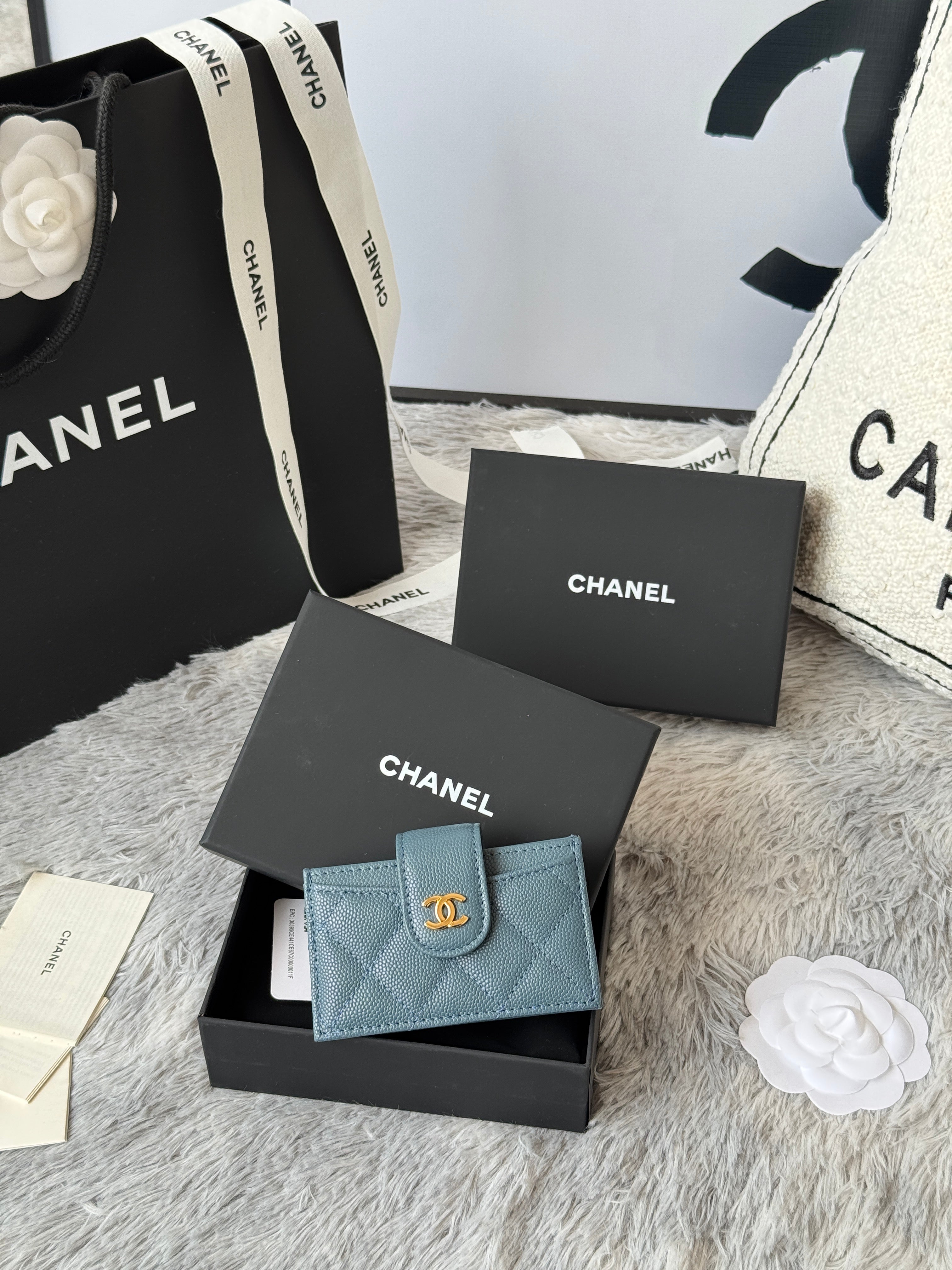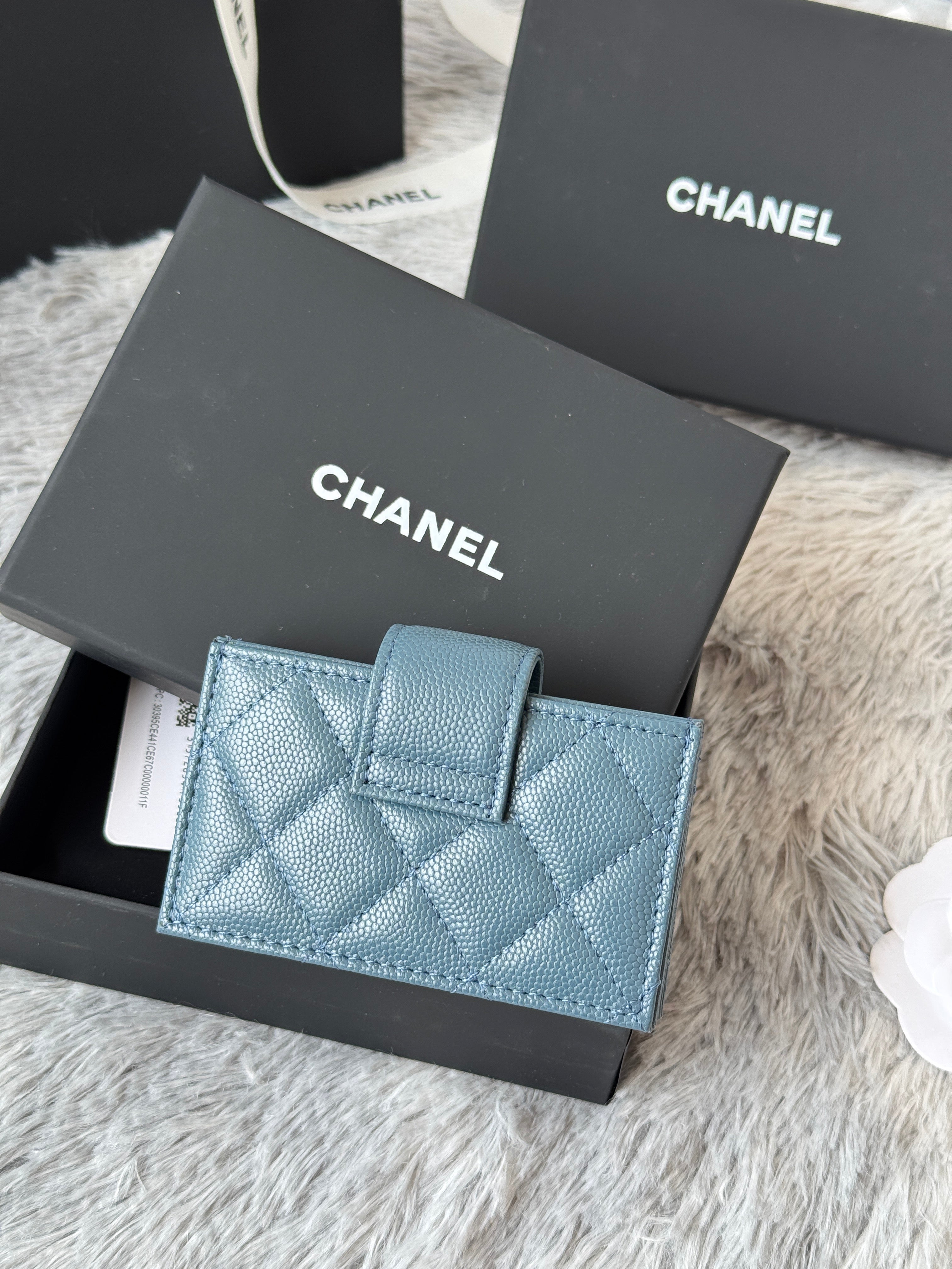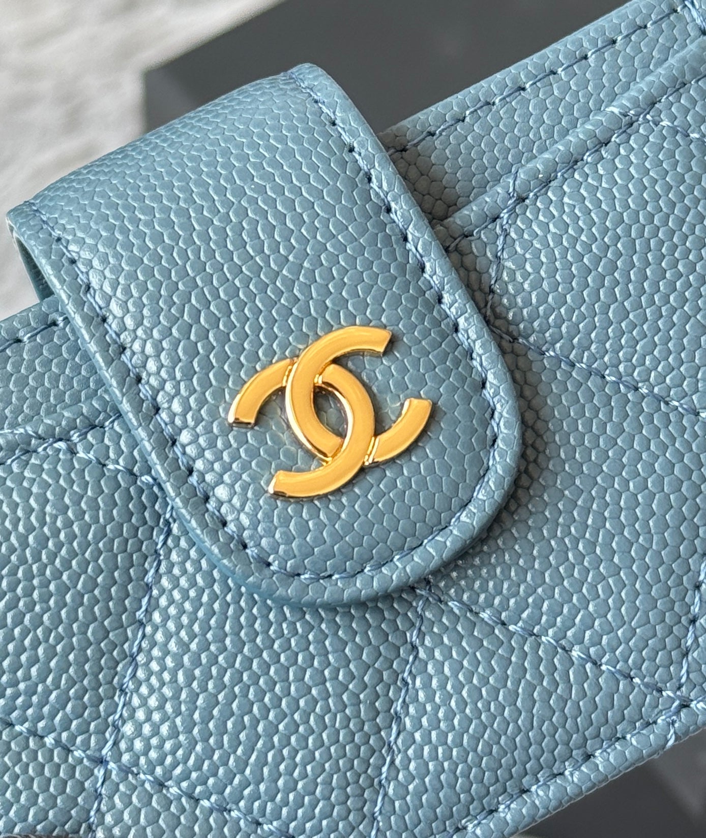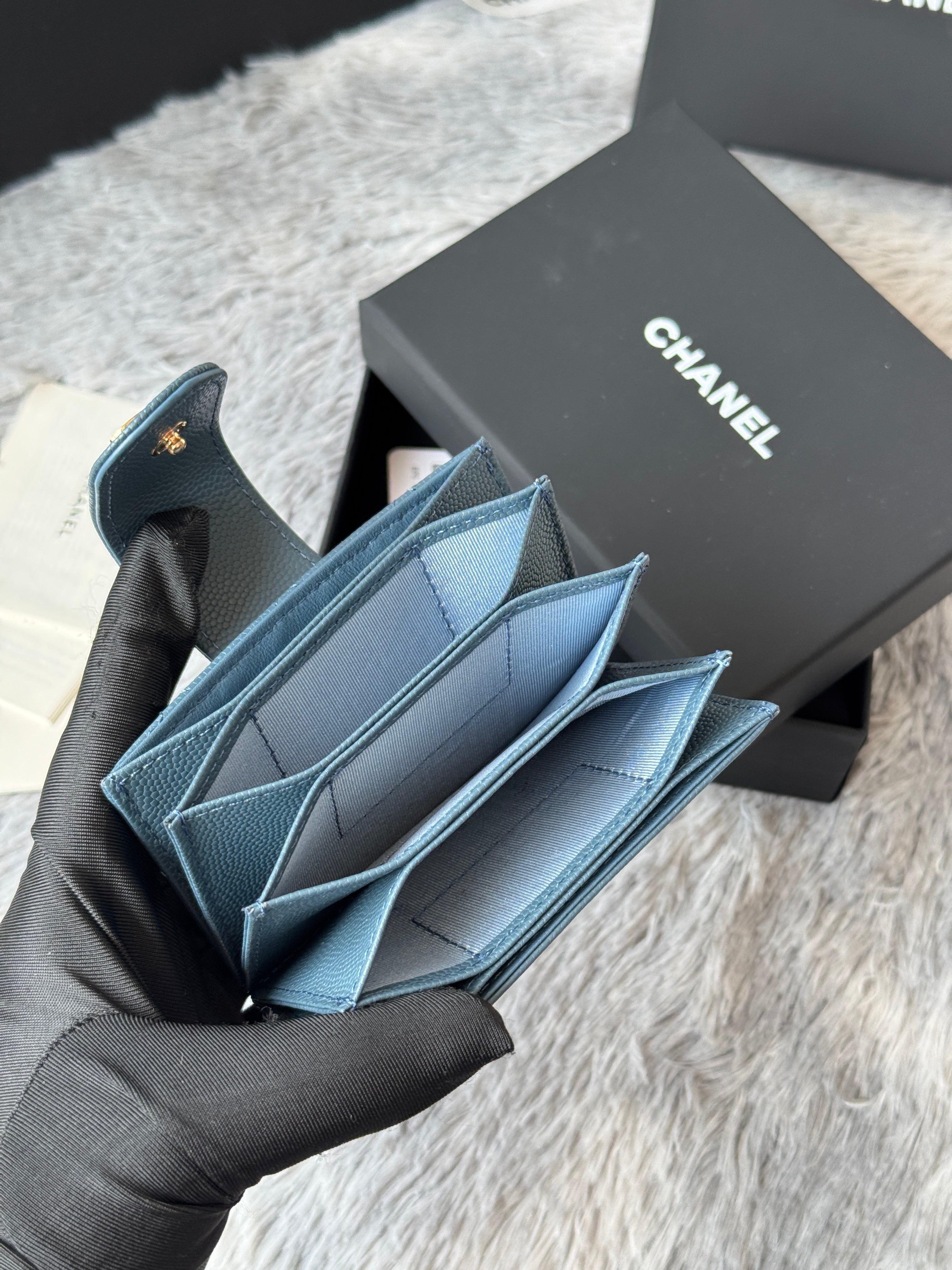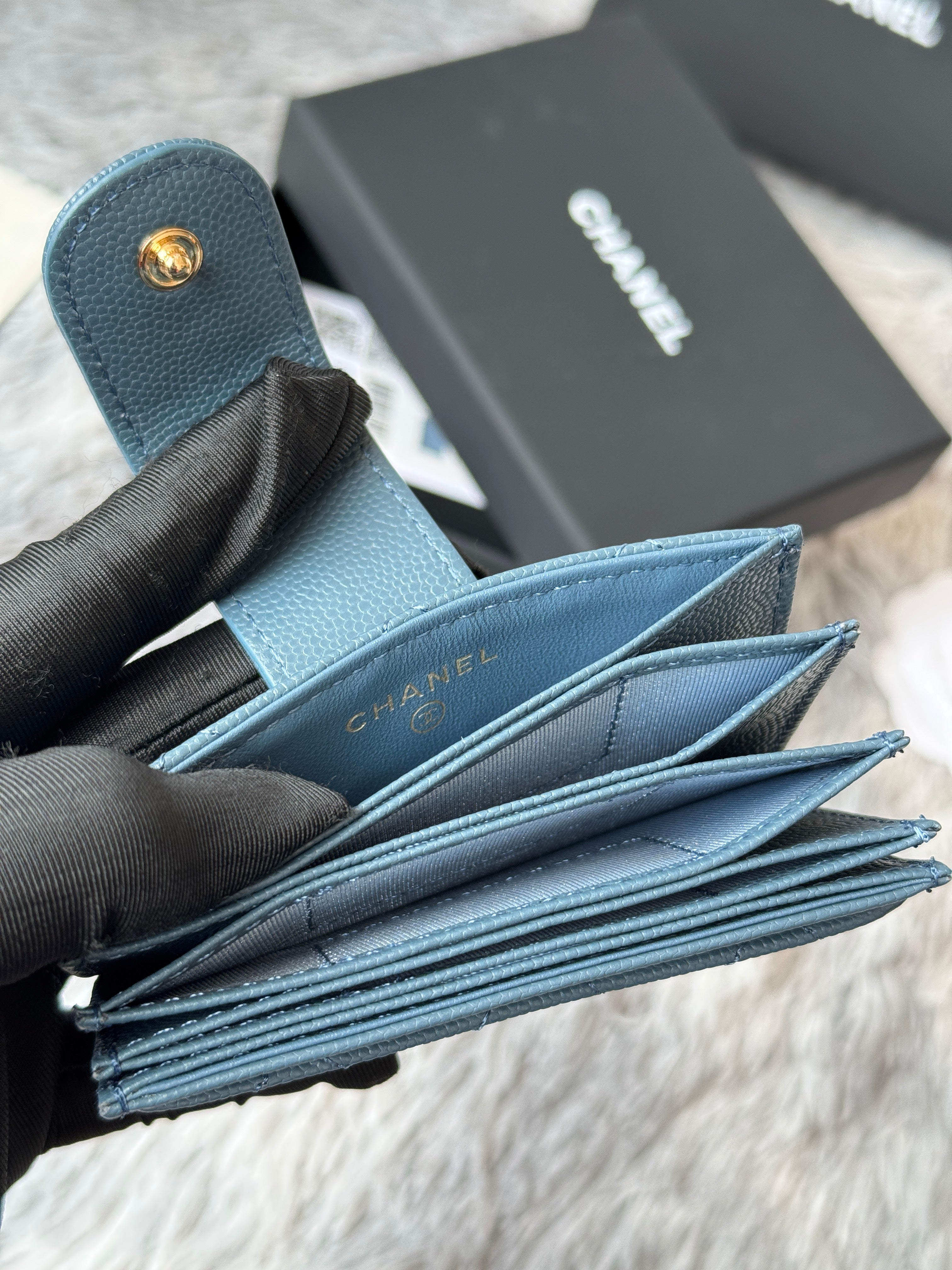 CARD HOLDER 10 CIRCLE CLASP IN NEPAL BLUE CAVIAR LEATHER GOLD-TONE METALLIC