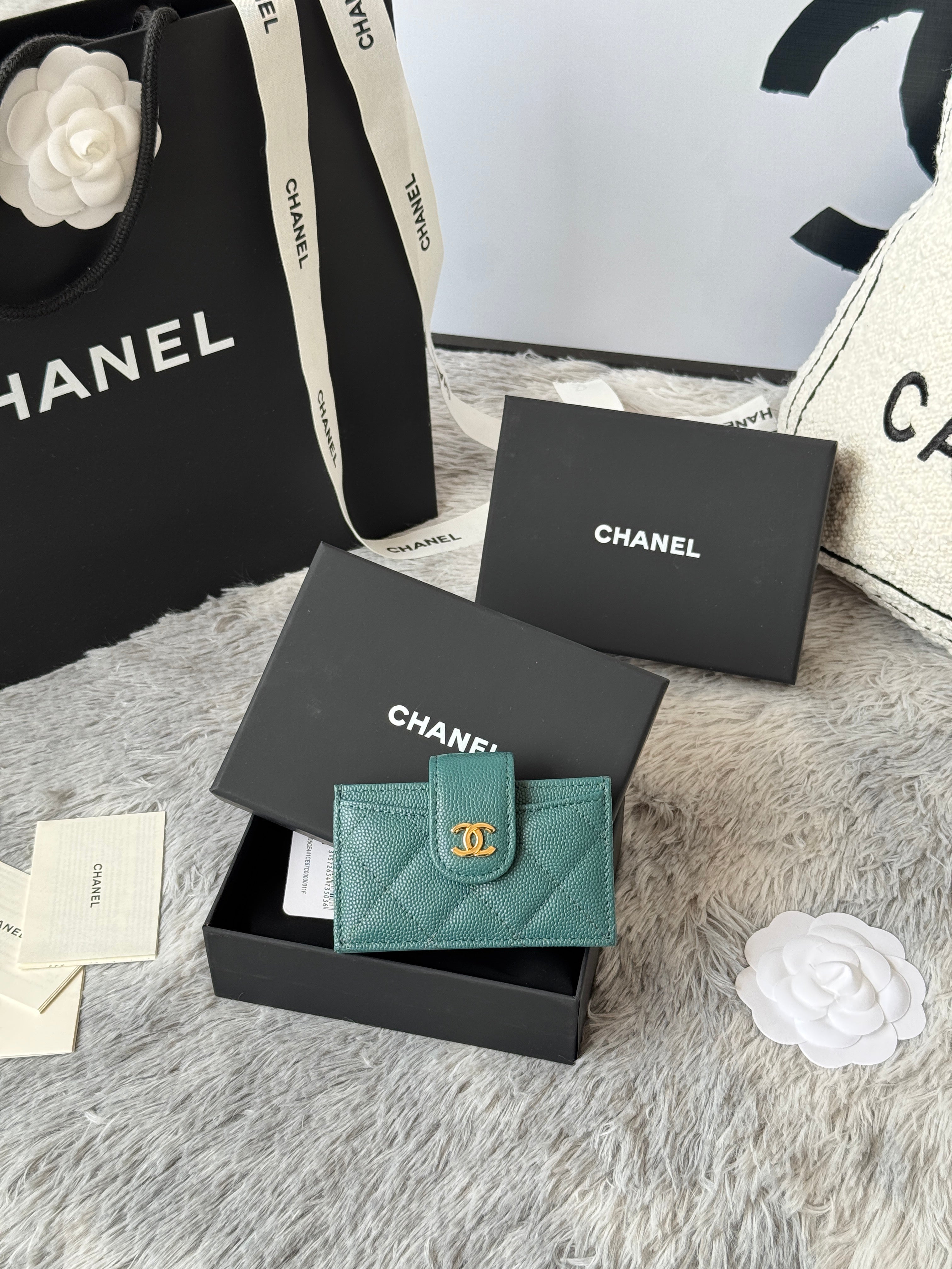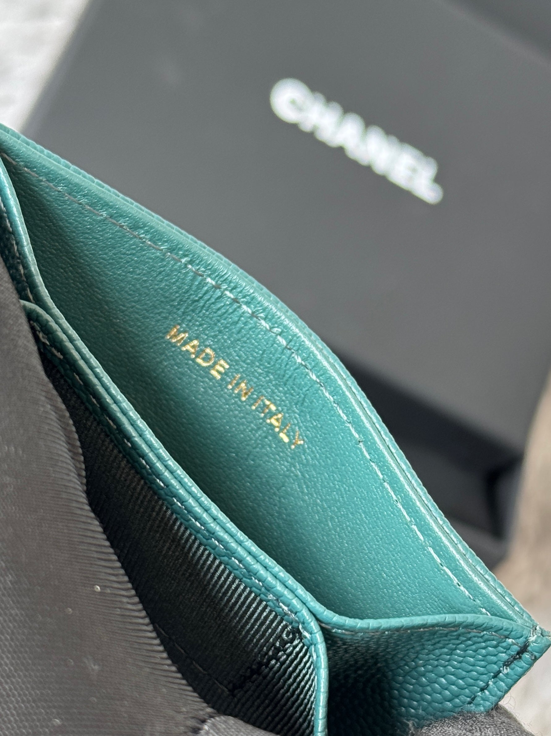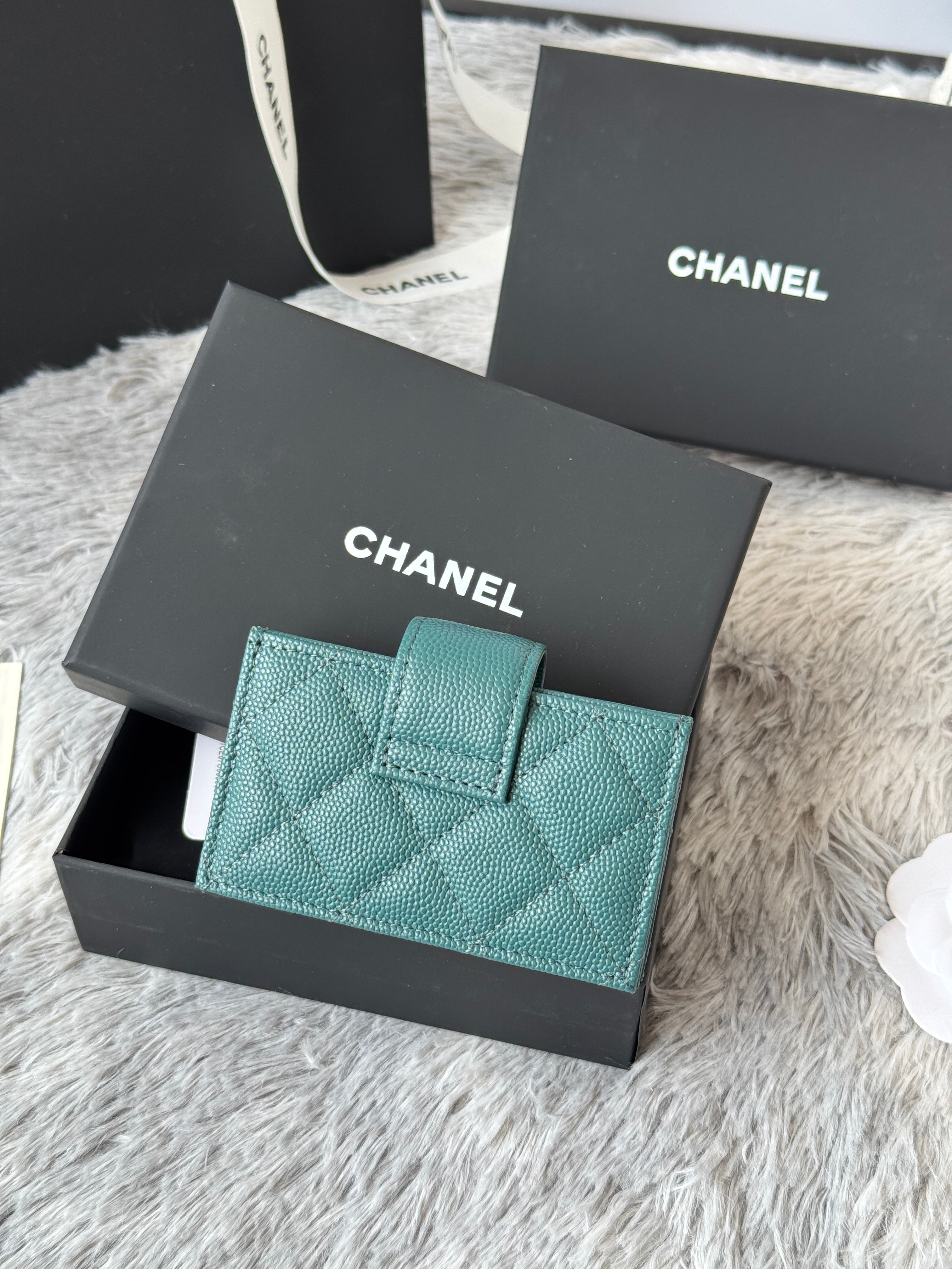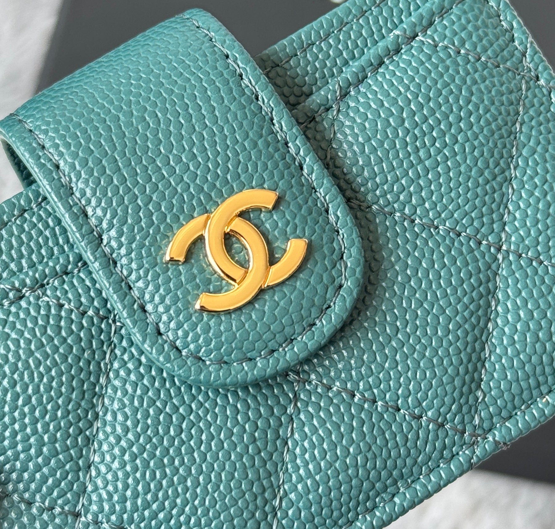 CARD HOLDER 10 CIRCLE CLASP IN NEPTUNE GREEN CAVIAR LEATHER GOLD-TONE METALLIC