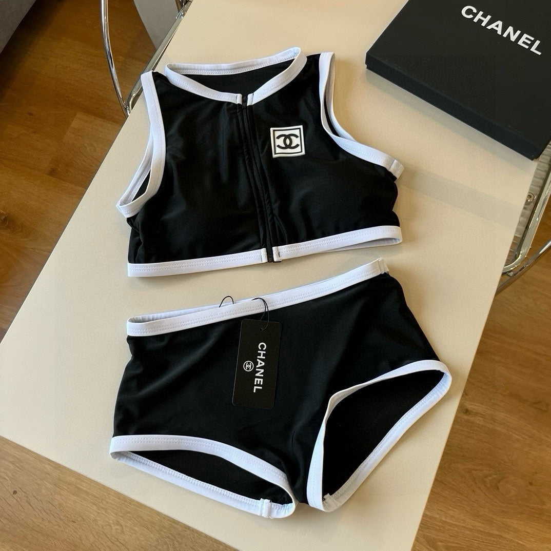 CC BIKINI SWIMSUIT SET IN BLACK AND WHITE TRIM 596500