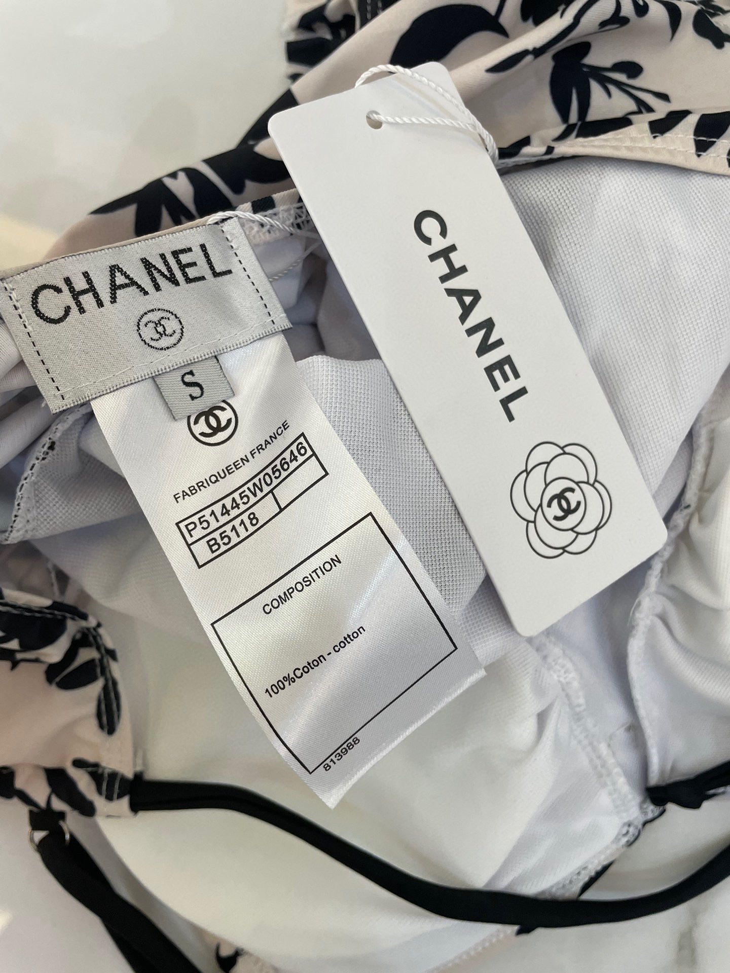 CC BIKINI SWIMSUIT SET IN IVORY WITH BLACK VELVET FLORAL EMBROIDERY 581303