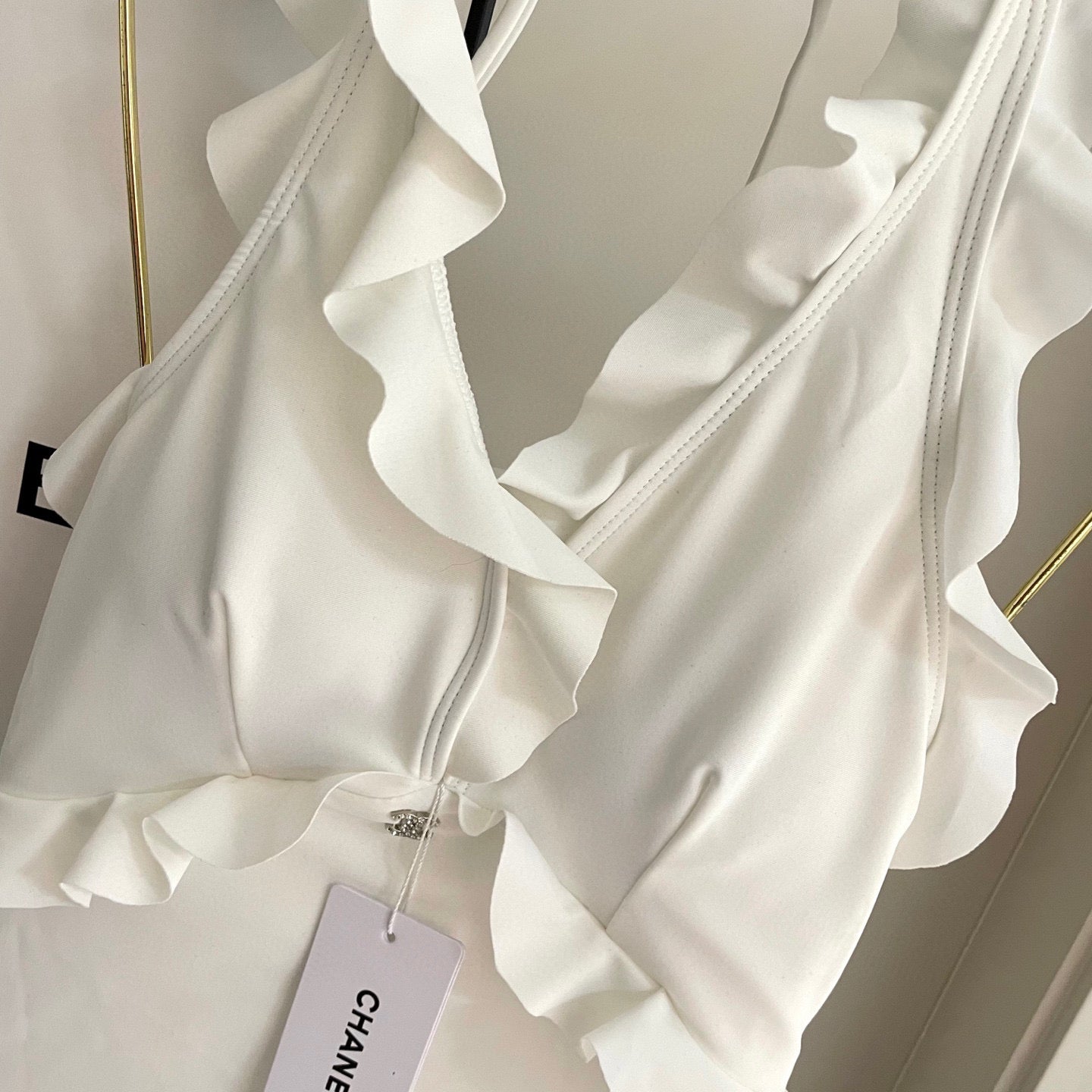 CC BIKINI SWIMSUIT SET WHITE AND RUFFLED TRIM 622179