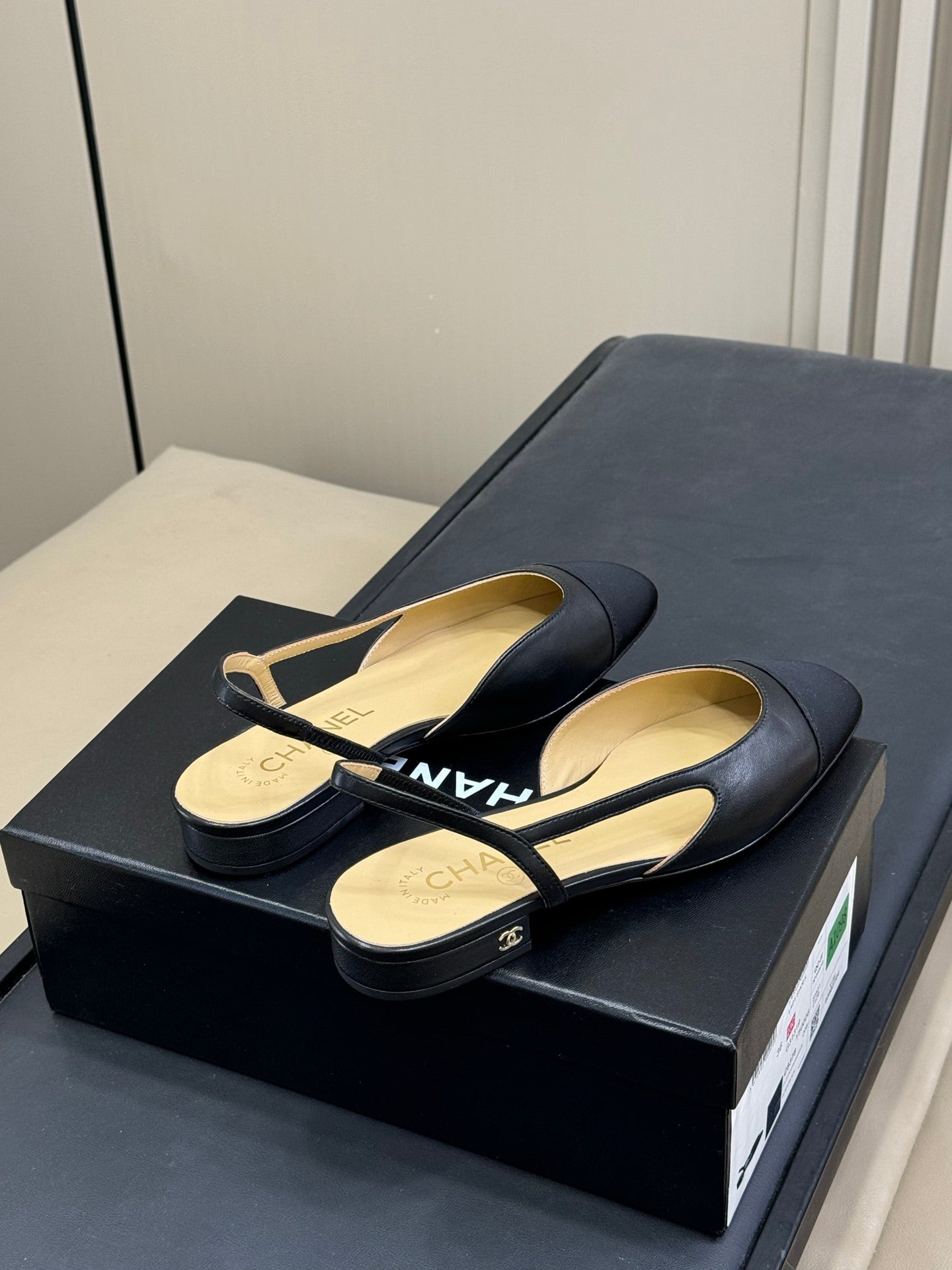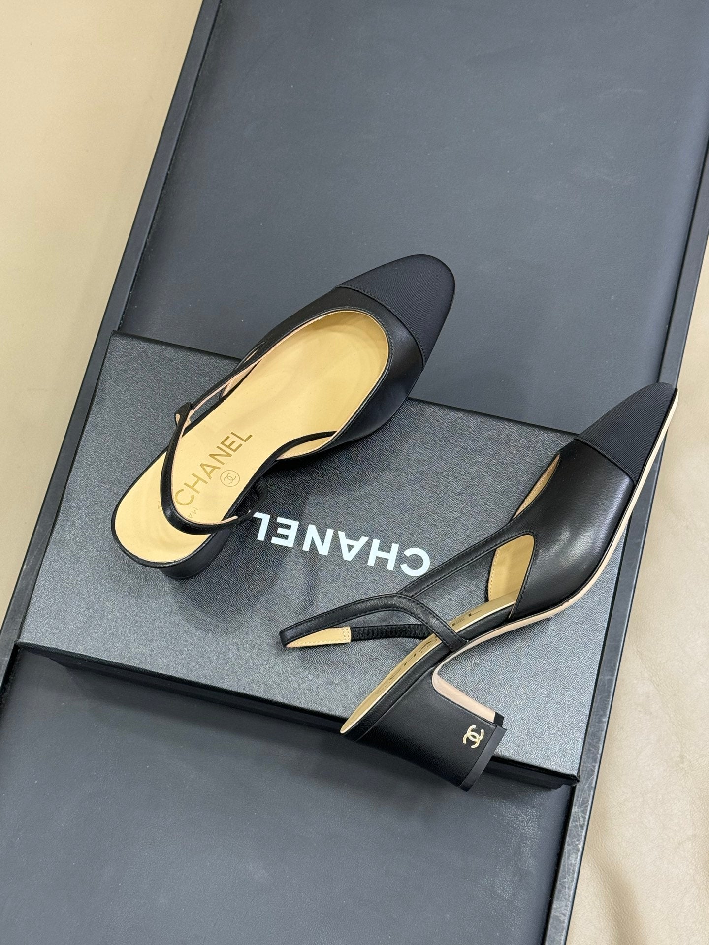 CC CLASSIC SLINGBACK BLACK BEIGE GOATSKIN BLACK GROSGRAIN