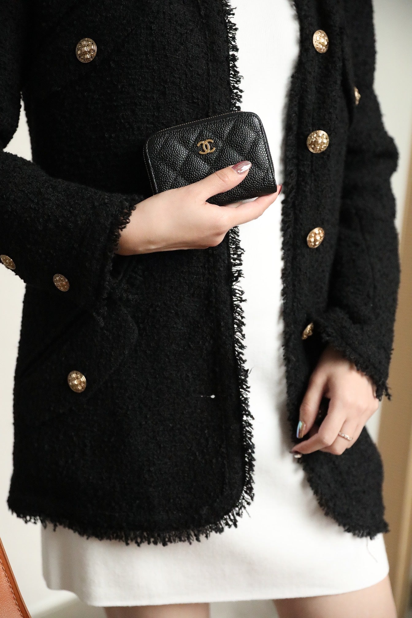 CC ZIPPED COIN BASIC PURSE 11 BLACK CALFSKIN WITH GOLD ICON