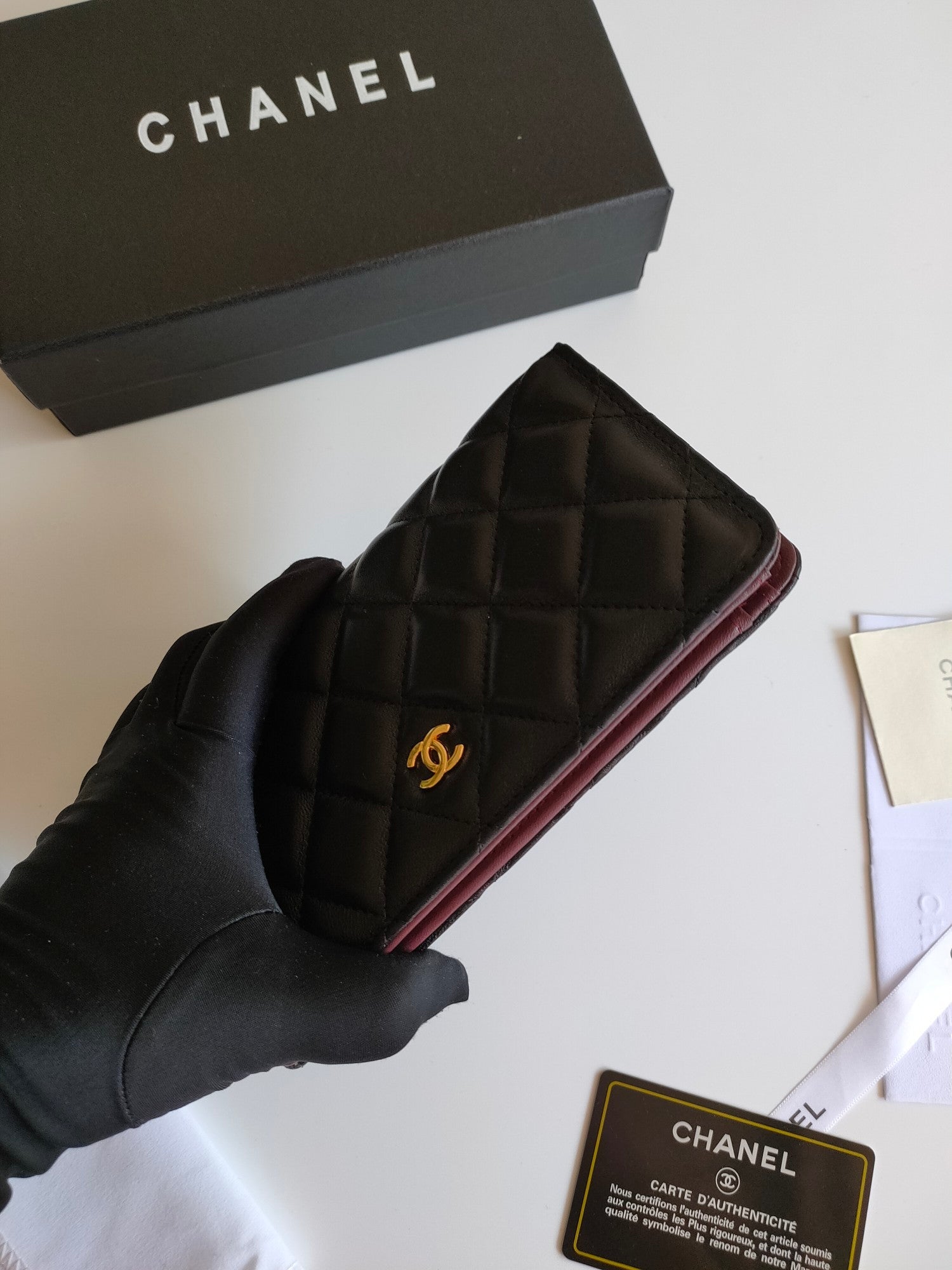 CC ZIPPED LONG PURSE 19 BLACK CALFSKIN GOLD ICON
