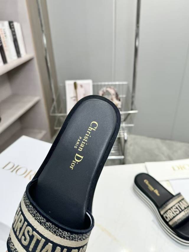 CD DWAY PLATFORM SLIDE IN BLACK AND WHITE COTTON STRIPED SOLE