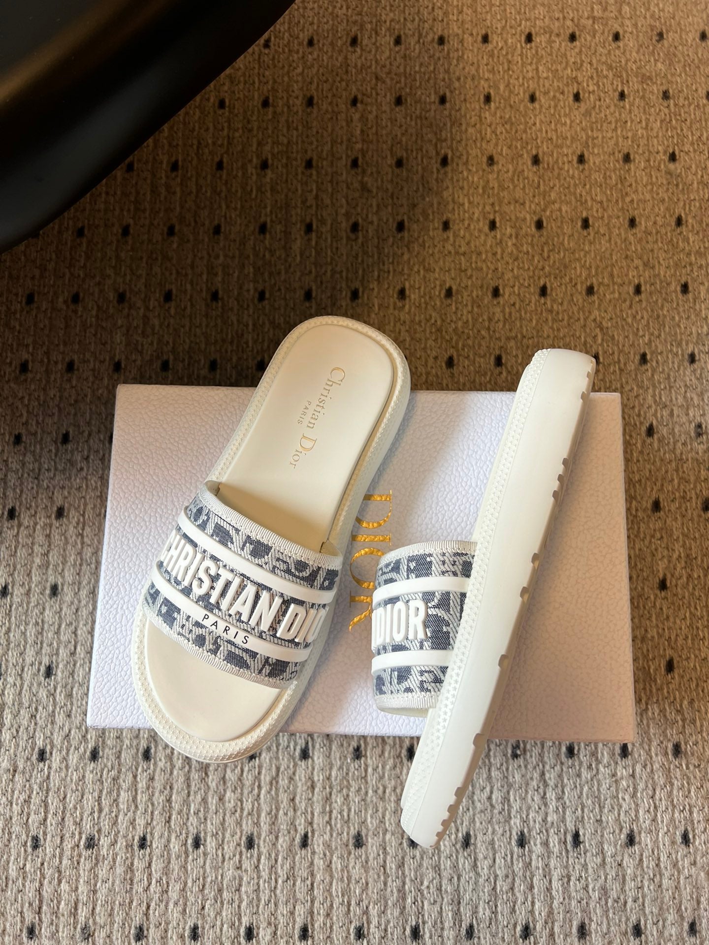 CD DWAY SLIDES WHITE RUBBER TOILE DE JOUY EMBROIDERY