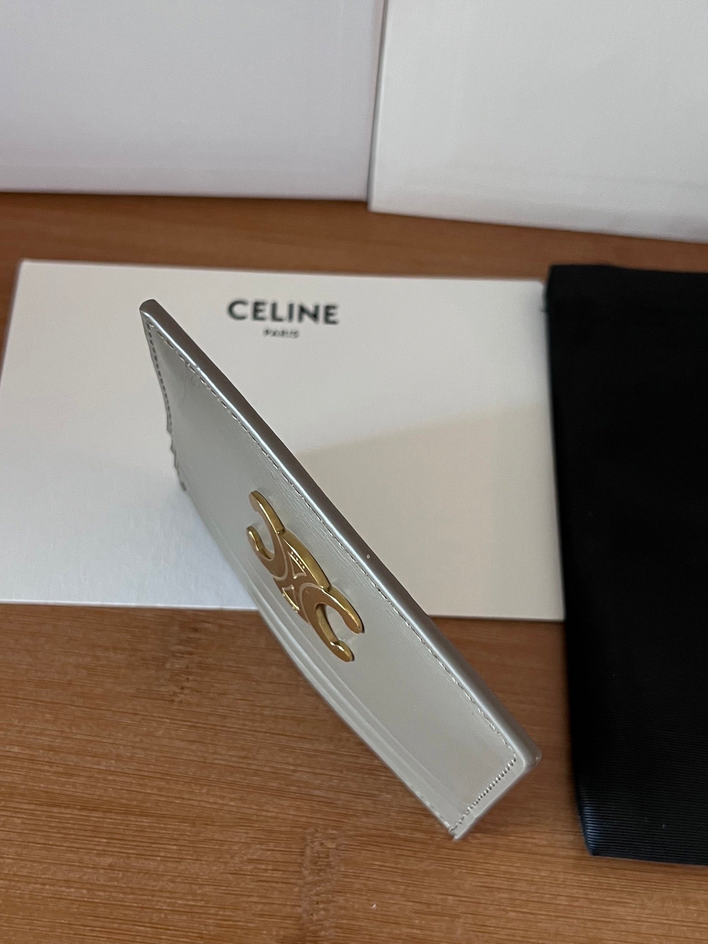 CELINE 25S CARD HOLDER WITH TRIOMPHE LOGO 11 IN GRAY CALFSKIN