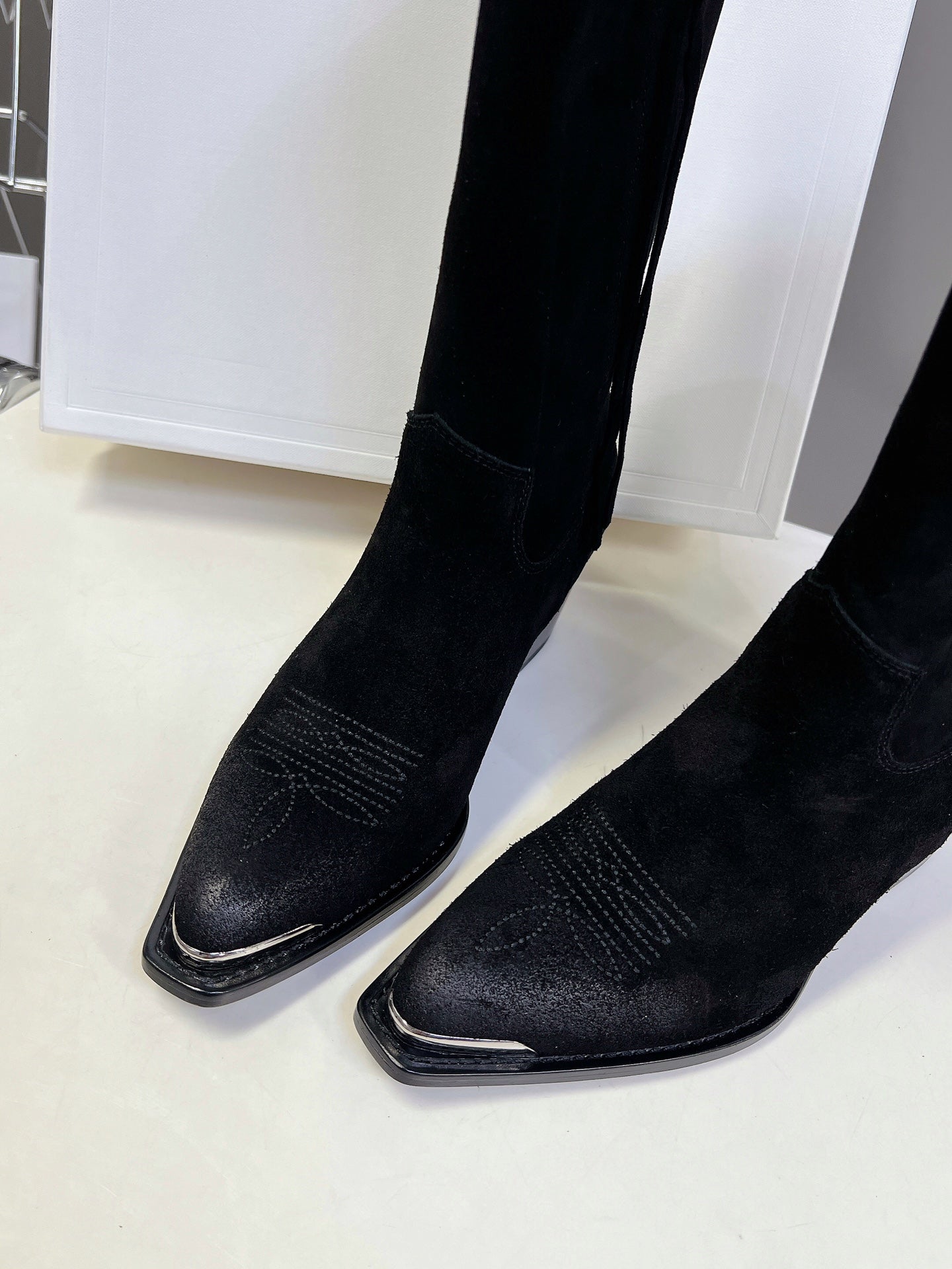 CELINE 25S HIGH CUT CHELSEA BOOTS 45MM IN BLACK SUEDE