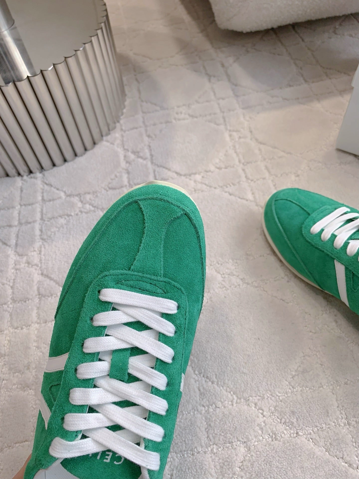 CELINE 25S JOGGER LOW LACE UP SNEAKER IN DEEP TEAL CALFSKIN AND SUEDE