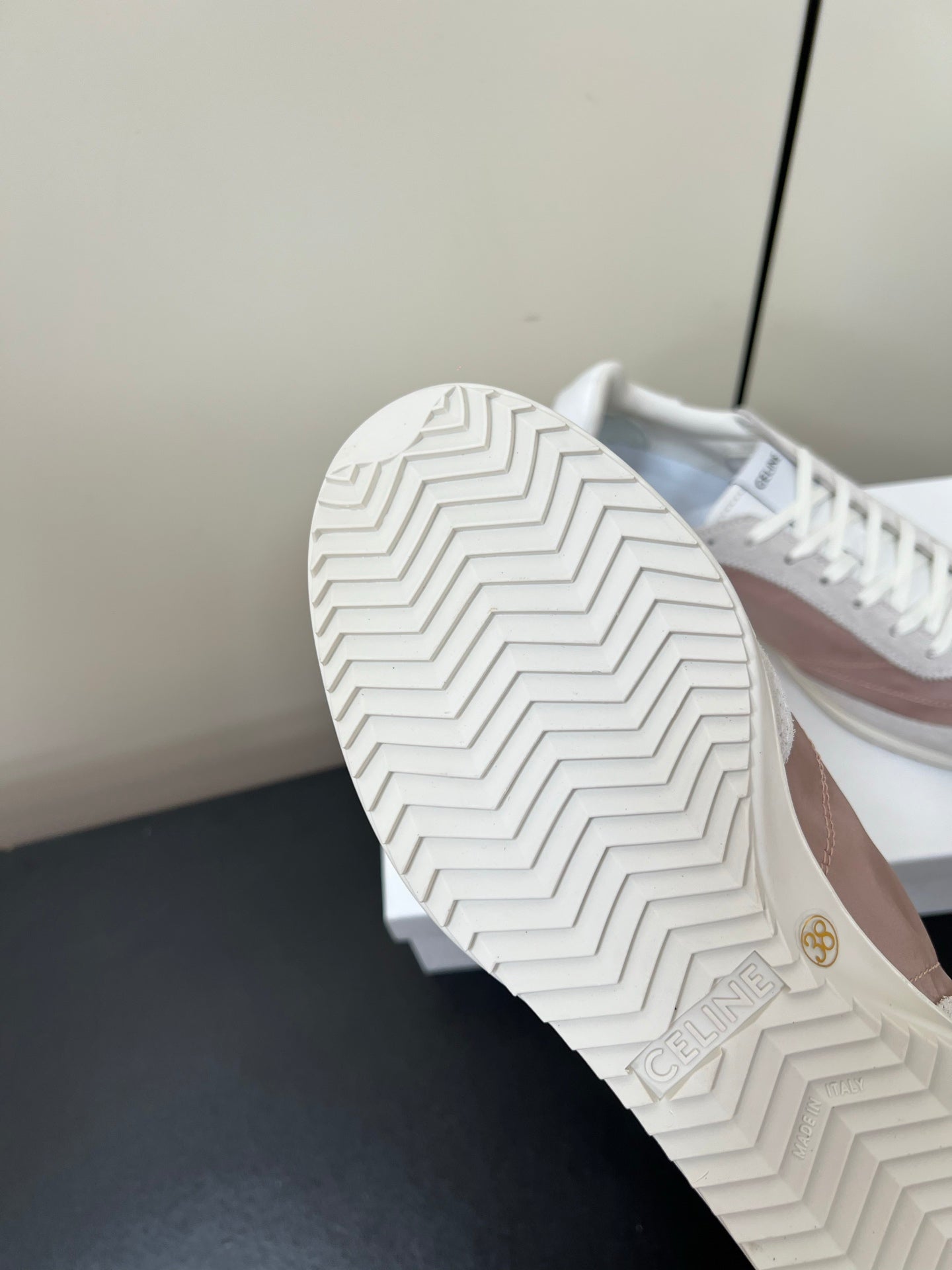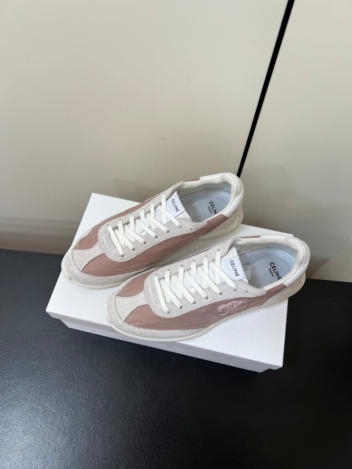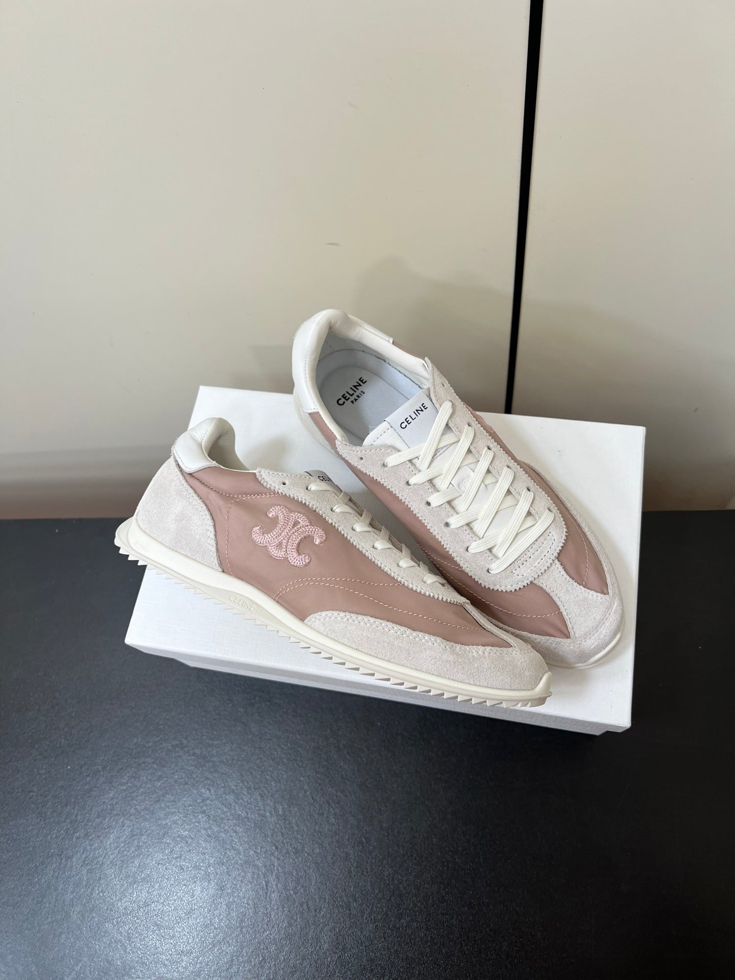 CELINE 25S RACER FORREST GUMP SNEAKERS IN PINK AND GRAY MERCERIZED CALFSKIN