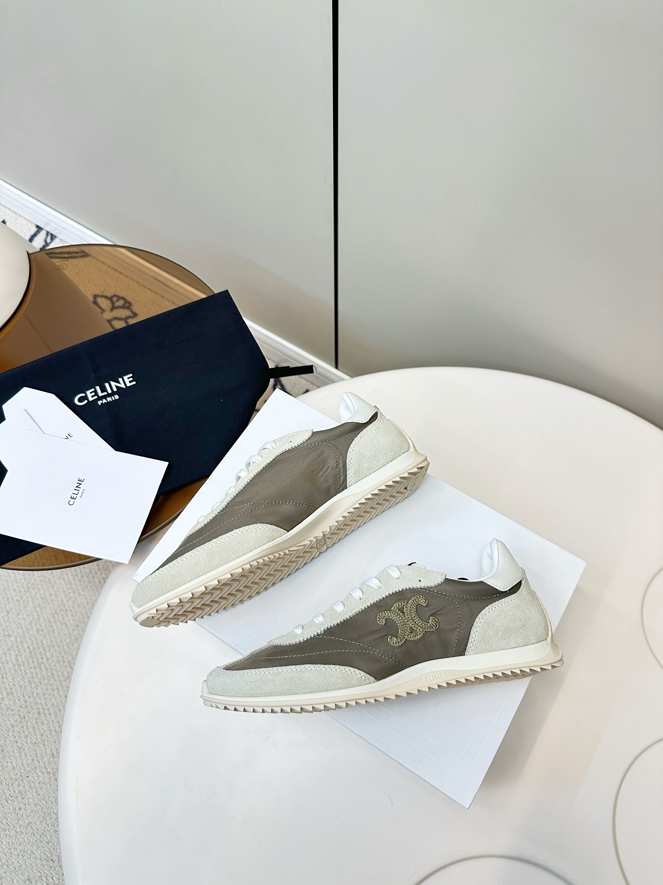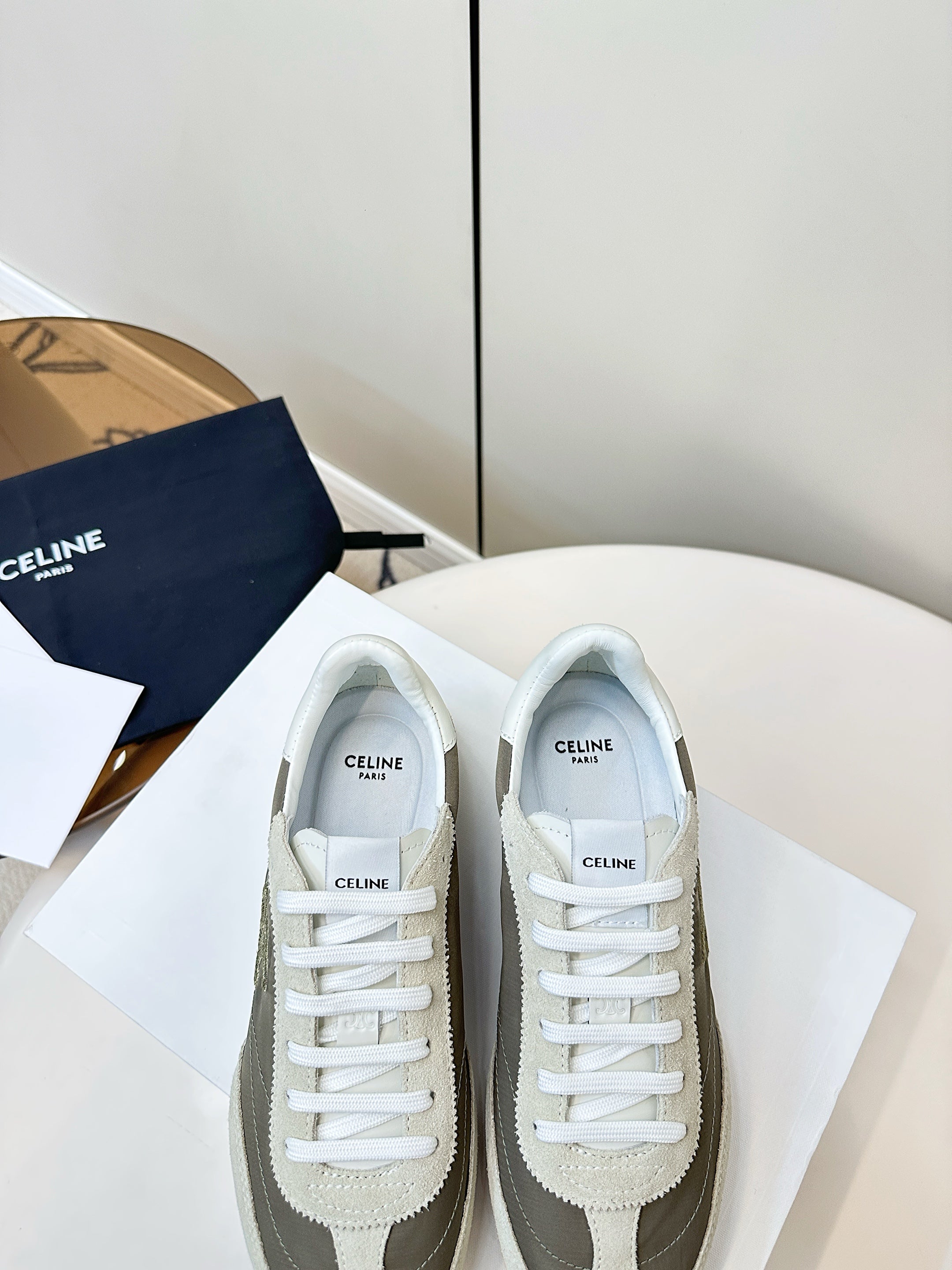 CELINE 25S RACER LOW TOP SNEAKER IN CREAM AND TAUPE GRAY NYLON AND SUEDE