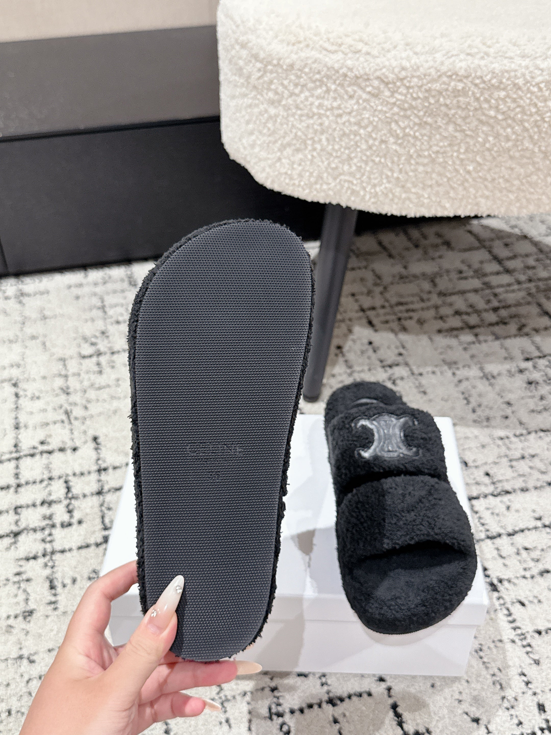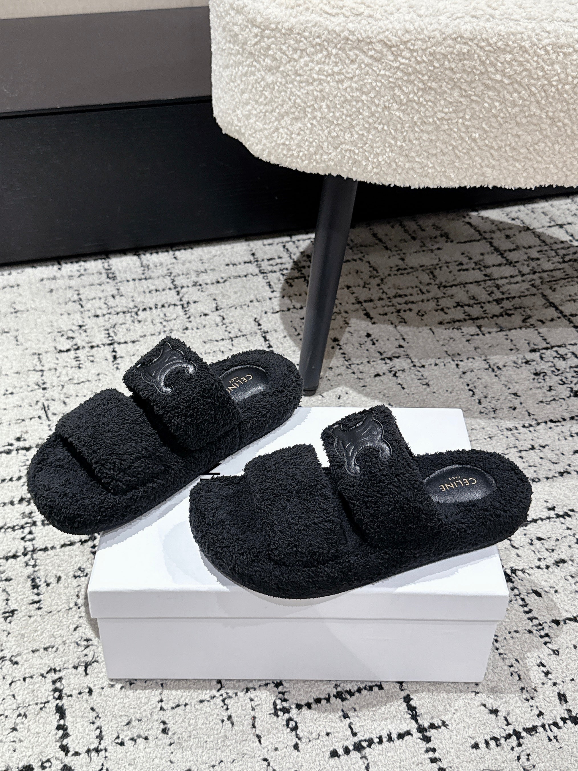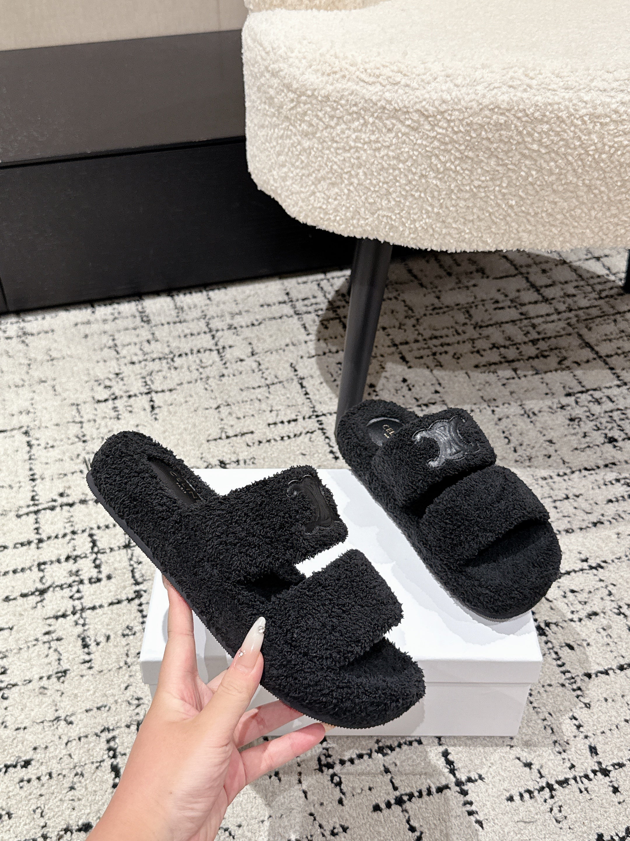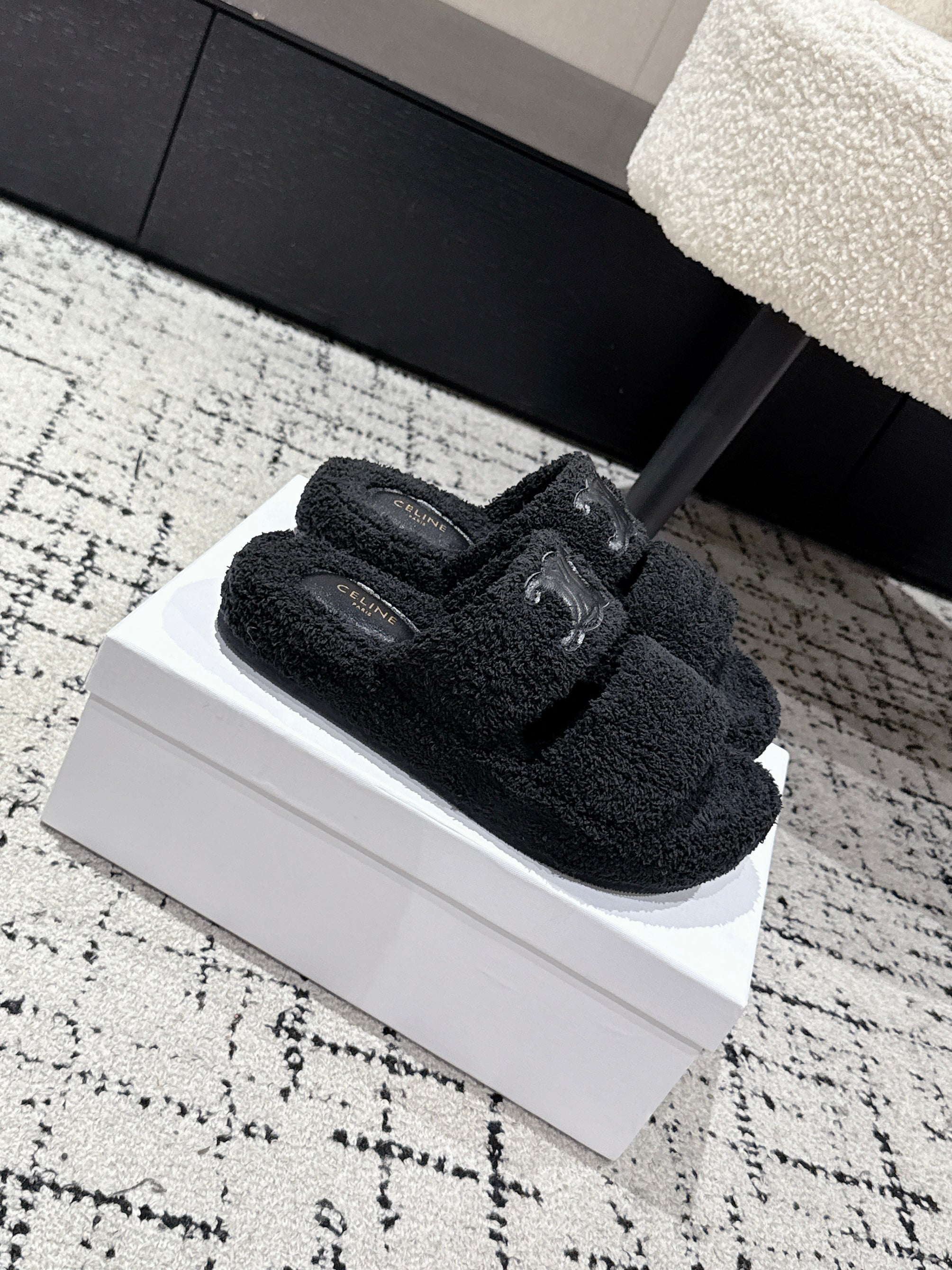 CELINE 25S SLIDES TRIOMPHE IN BLACK SPONGE FABRIC